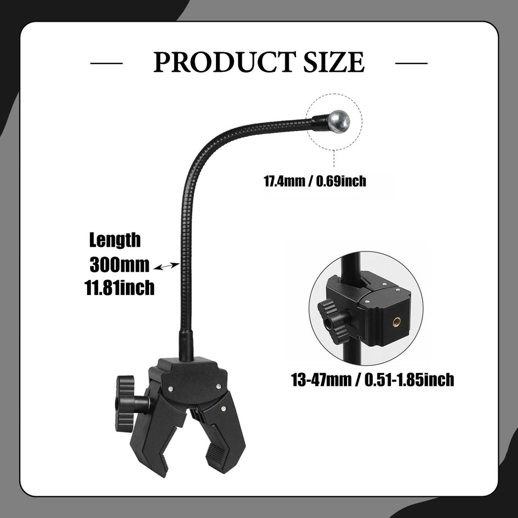 - 【Simple Setup】: Get started in seconds with no tools required. The package includes a clamp and a flexible gooseneck arm with a 17.4mm ball head, ready to assemble and use right out of the box