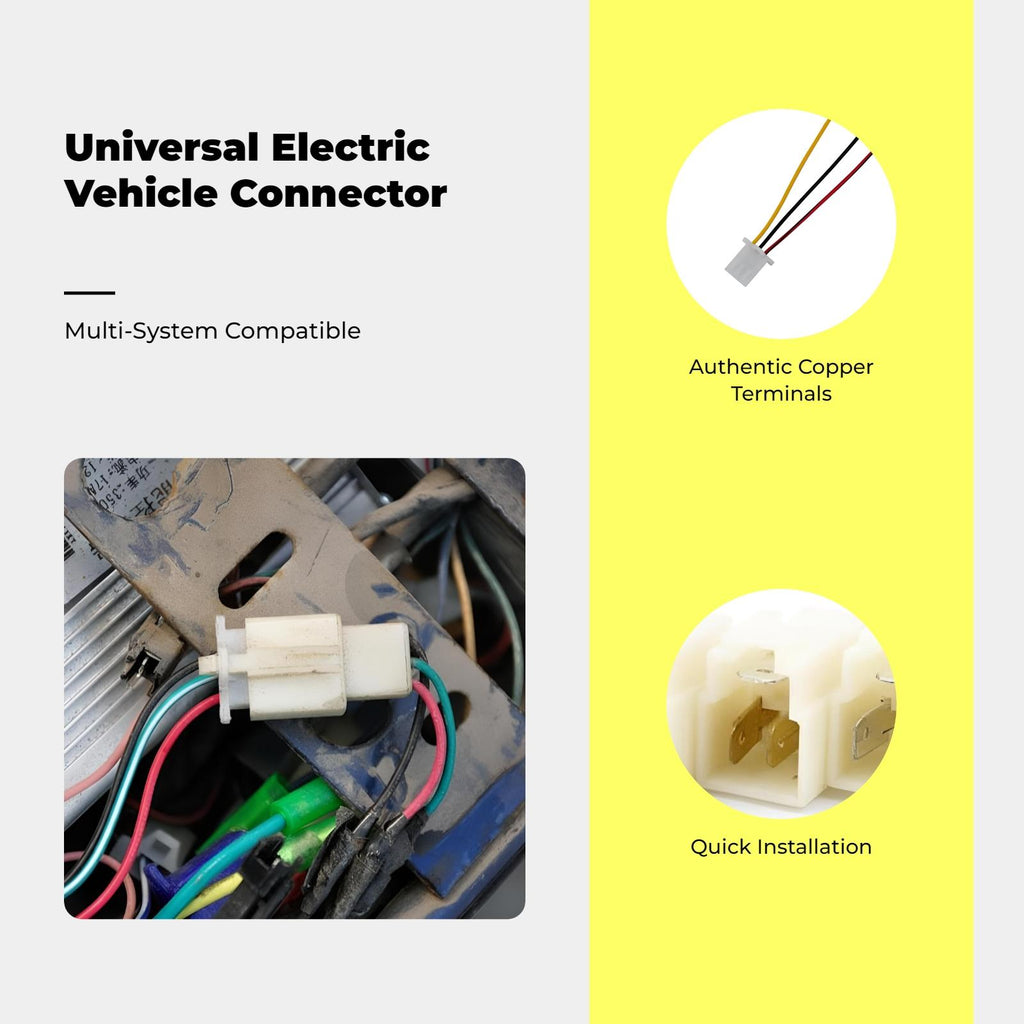 【adaptable Plug 】This plug is designed for electric bikes, scooters, and motorcycles, offering dependable connection for controllers, power levers, brake levers, front lights, and horn perfect for outdoor charging and electric vehicle modification.【Waterproof and sturdy】Features a waterproof design and robust construction, ensuring stable performance in harsh weather conditions such as rain, ice, and particles, providing all-weather protection for your electric vehicle wiring.【Easy Installation and Wide Compatibility】Compatible with various brands and design S, suitable for direct plug-in applications, wire harness linkages, and automotive electronic maintenance.【Practical and Cost-effective】Combines with strong practicality, making it a cost-effective choice for upgrades, repairs, and common use.【Secure and Stable Connection】The connector ensures a firm-grip loosening and and supports stable transmission transmission for enhanced and reliability.Specification: