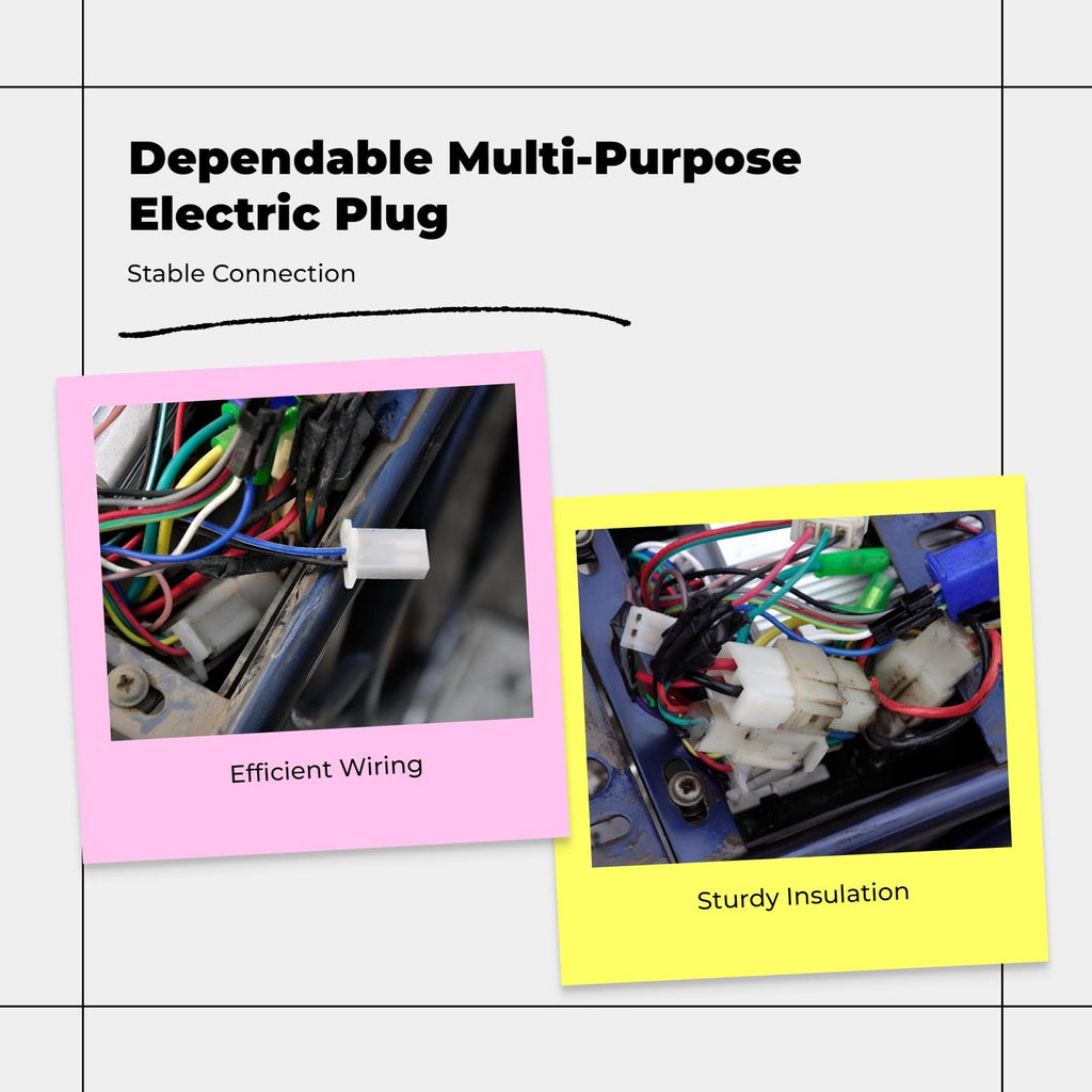 【adaptable Plug 】This plug is designed for electric bikes, scooters, and motorcycles, offering dependable connection for controllers, power levers, brake levers, front lights, and horn perfect for outdoor charging and electric vehicle modification.【Waterproof and sturdy】Features a waterproof design and robust construction, ensuring stable performance in harsh weather conditions such as rain, ice, and particles, providing all-weather protection for your electric vehicle wiring.【Easy Installation and Wide Compatibility】Compatible with various brands and design S, suitable for direct plug-in applications, wire harness linkages, and automotive electronic maintenance.【Practical and Cost-effective】Combines with strong practicality, making it a cost-effective choice for upgrades, repairs, and common use.【Secure and Stable Connection】The connector ensures a firm-grip loosening and and supports stable transmission transmission for enhanced and reliability.Specification: