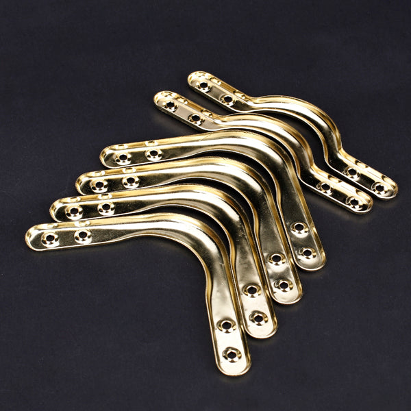 - Brass finish stamped light version snooker pocket irons, drilled holes for installation