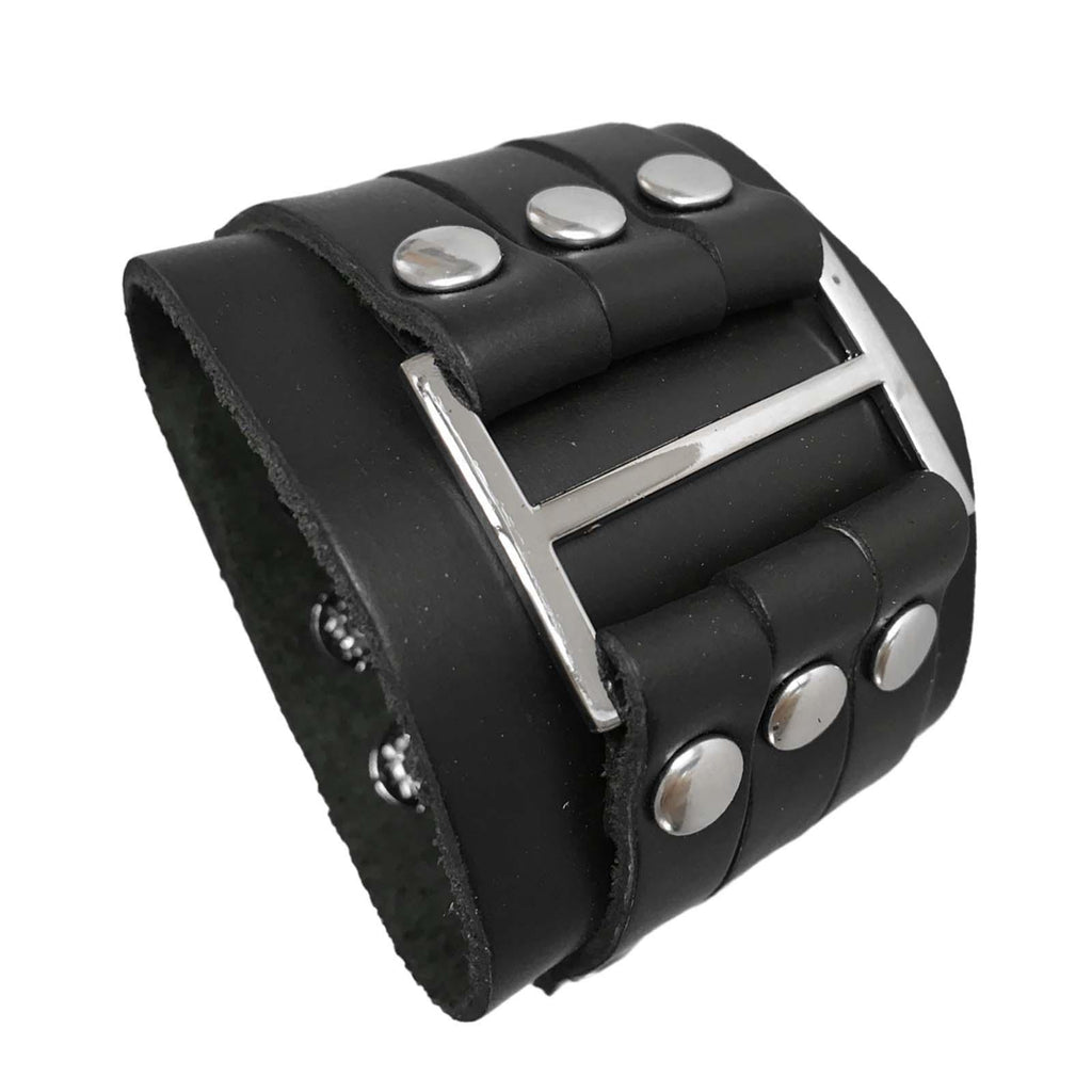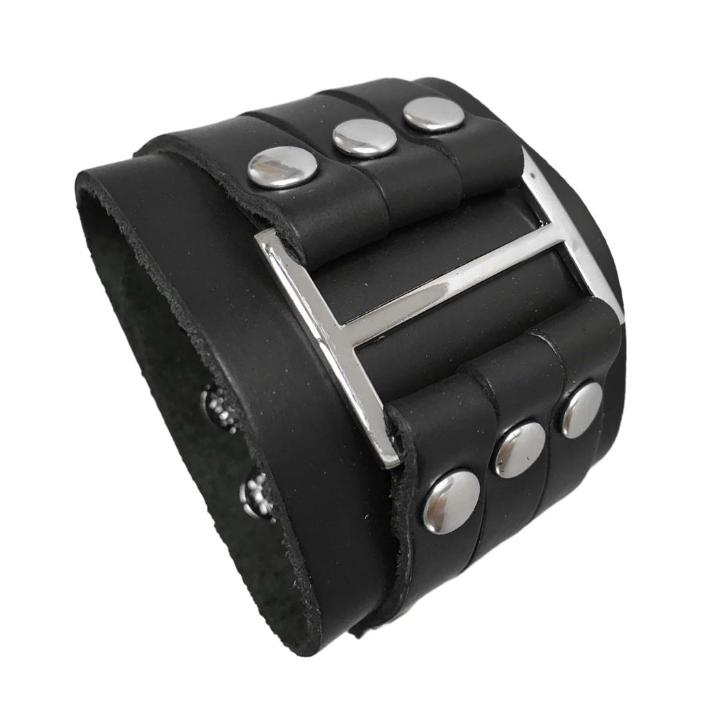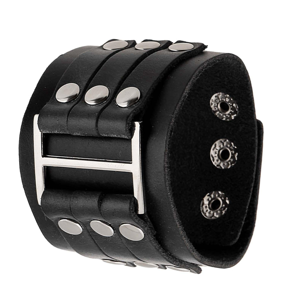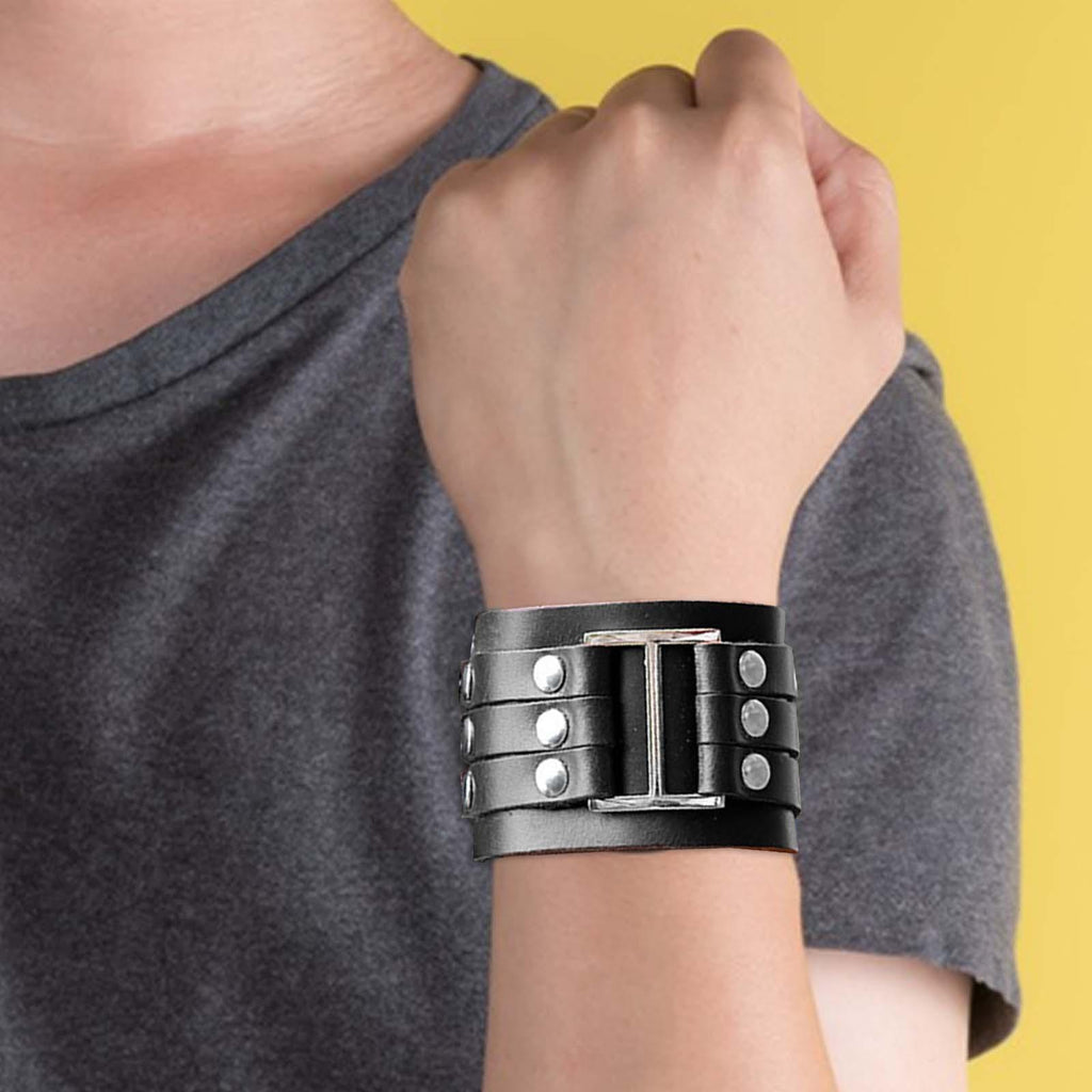 【Punk Designed】: Male punk rock wide strap bracelet, very fashionable. Match with outfits suitable for different occasions.
