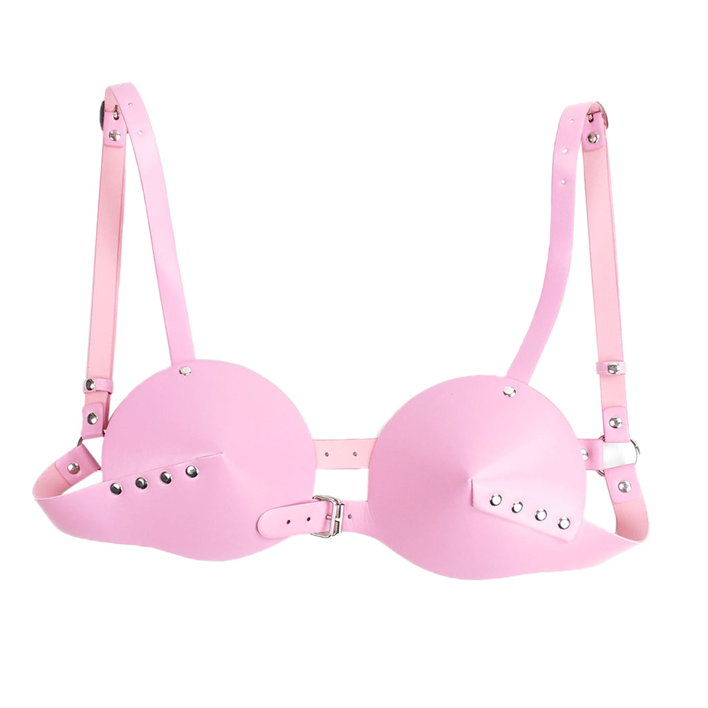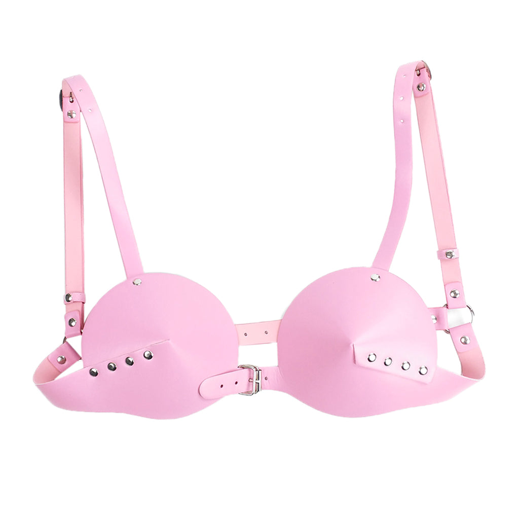 Maxbell Punk PU Leather Cup Bra Top Breast Harness Gothic Woman Costume Pink