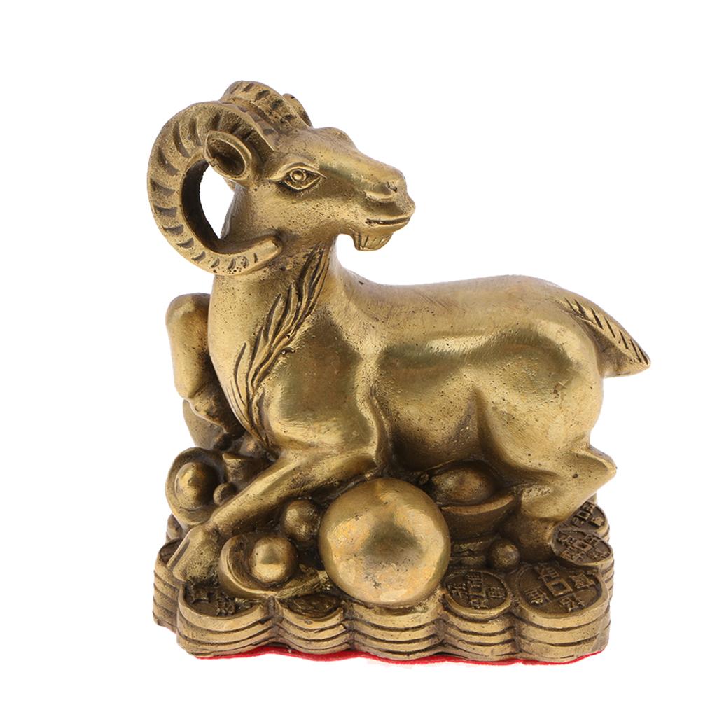 Pure Brass Chinese Twelve Zodiac Animal Figurine Ornament Luck Charm Goat