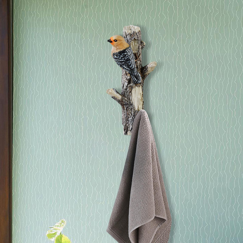 Maxbell Resin Wall Coat Hooks Door Storage Robe Headset Bag Birds On A Branch Hanger Yellow 8.5x4.5x18cm