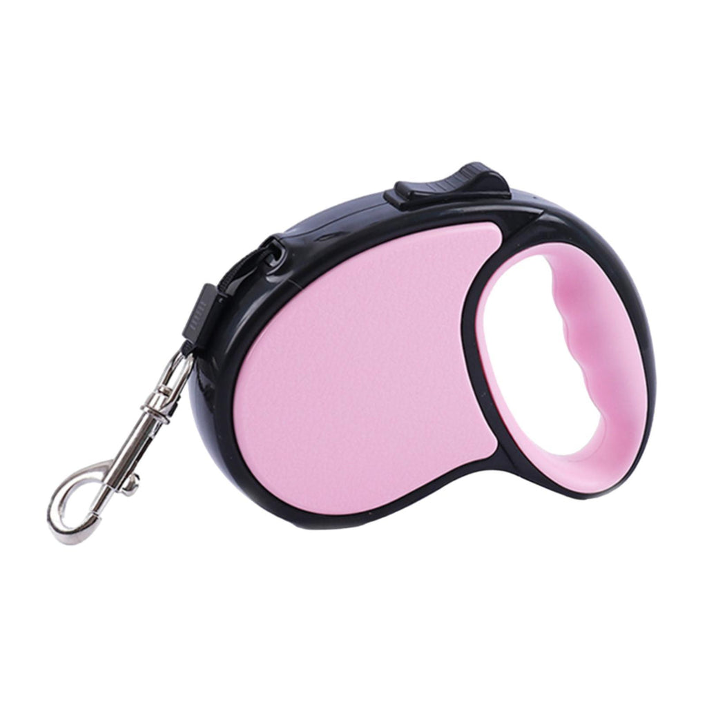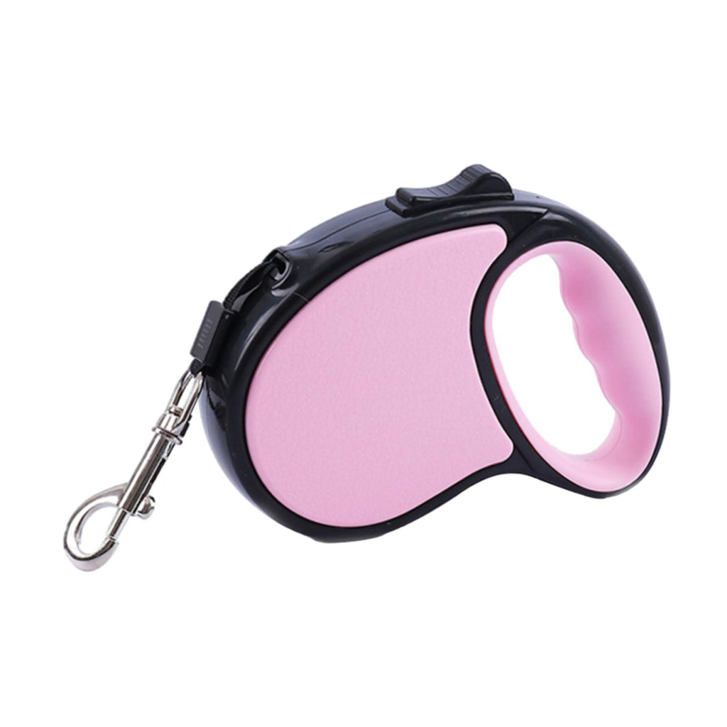Maxbell Retractable Dog Leash Single Handed Fast Lock Braking System Dogs Cats Rope pink 5m