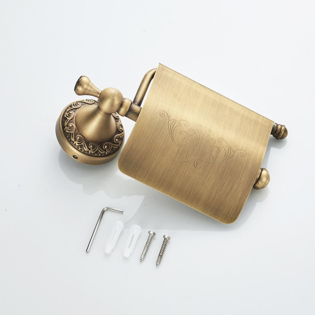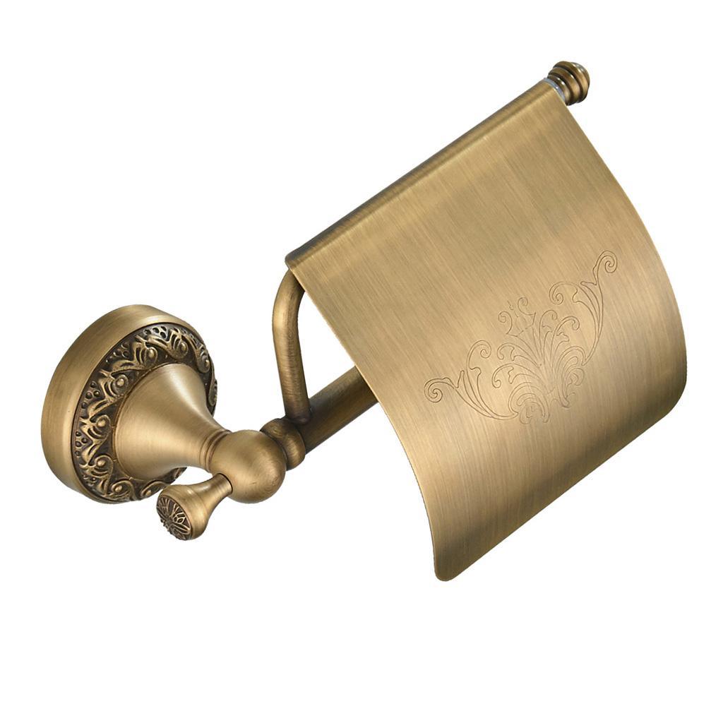 Maxbell Retro Brass Wall Mounted Toilet Roll Paper Holder With Cover Paper Storage Rack with Concealed Screws