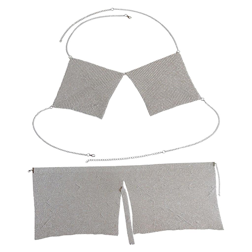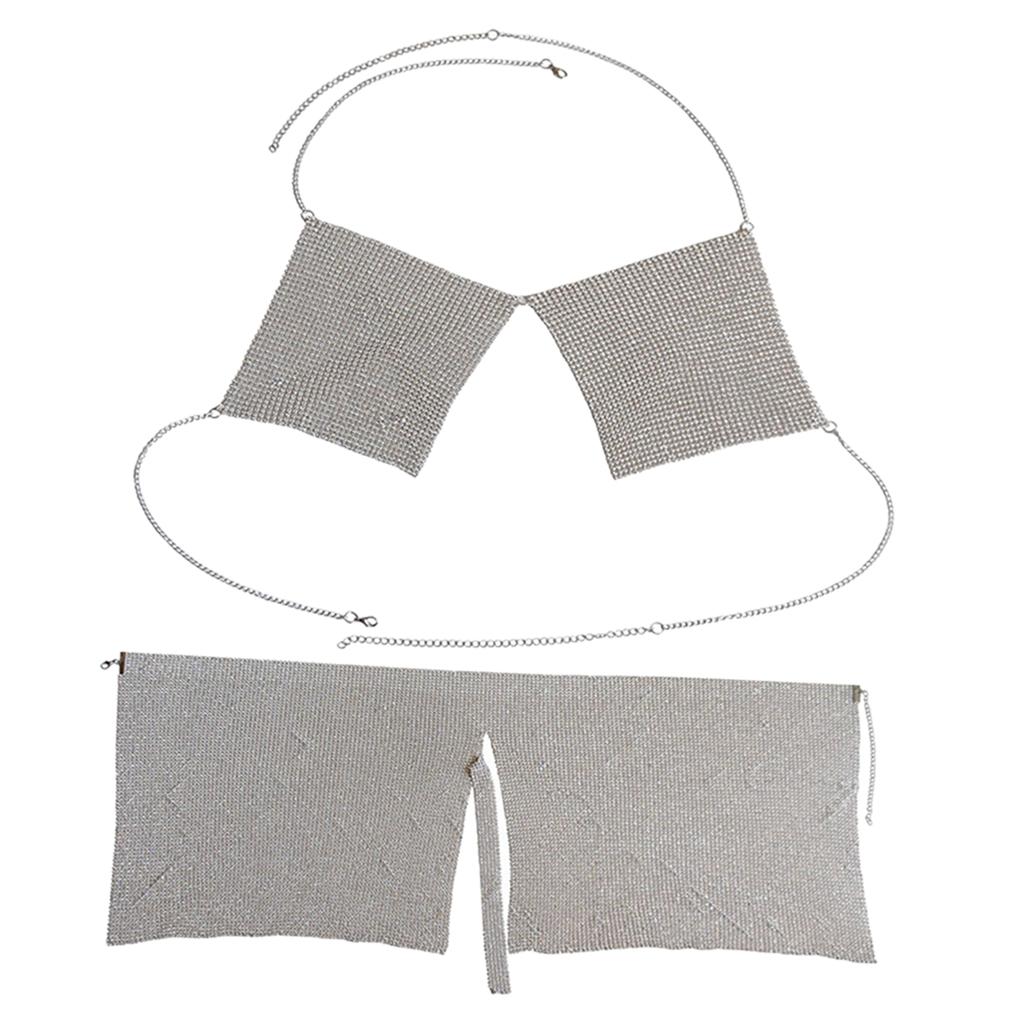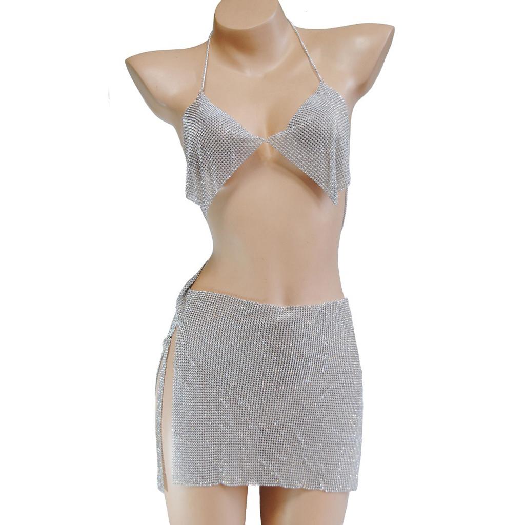 Maxbell Rhinestone bra chain metal split package hip bust skirt body chain Silver