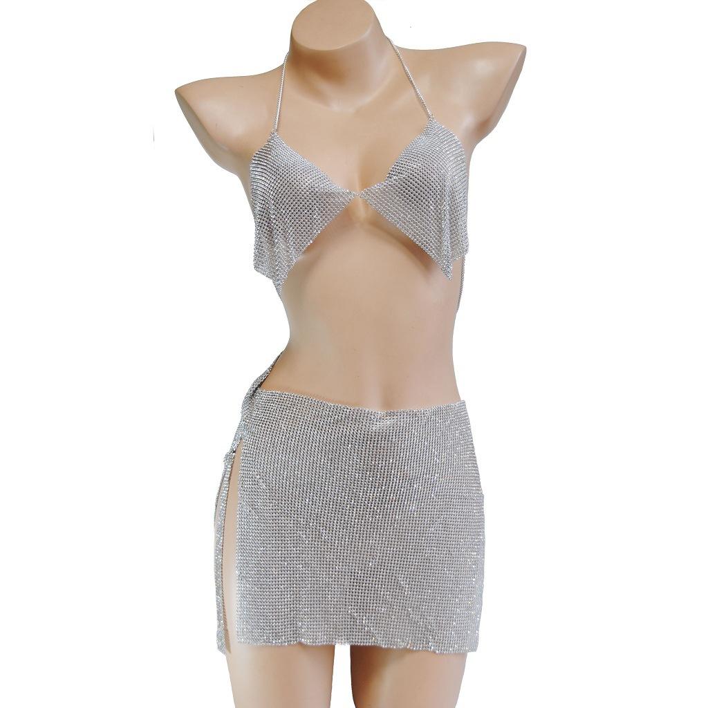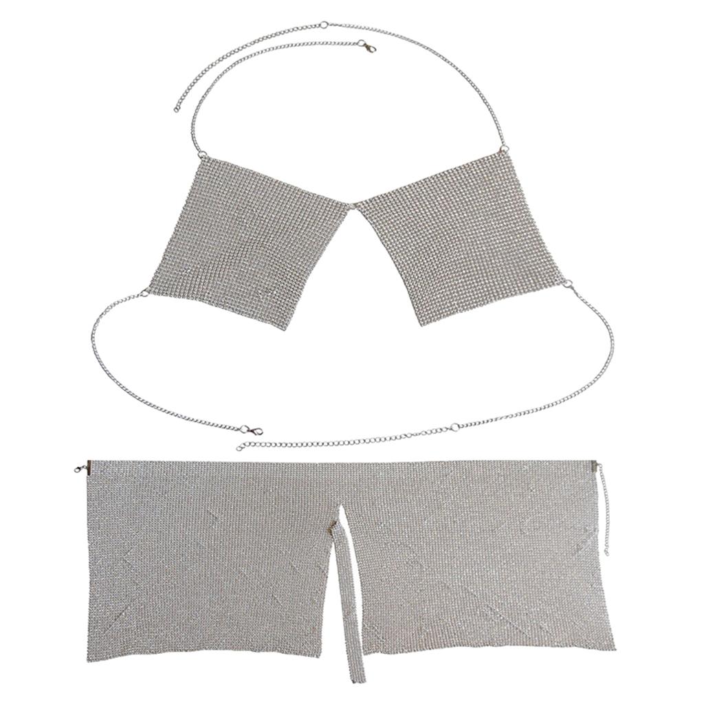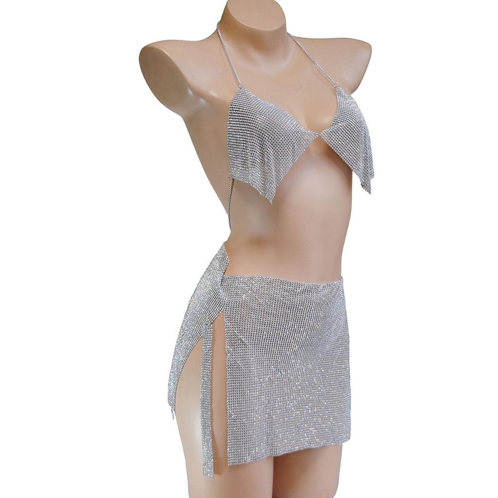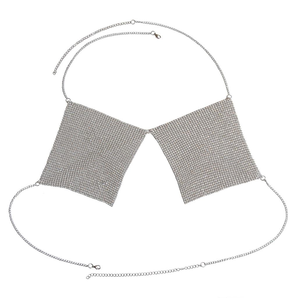 Maxbell Rhinestone bra chain metal split package hip bust skirt body chain Silver