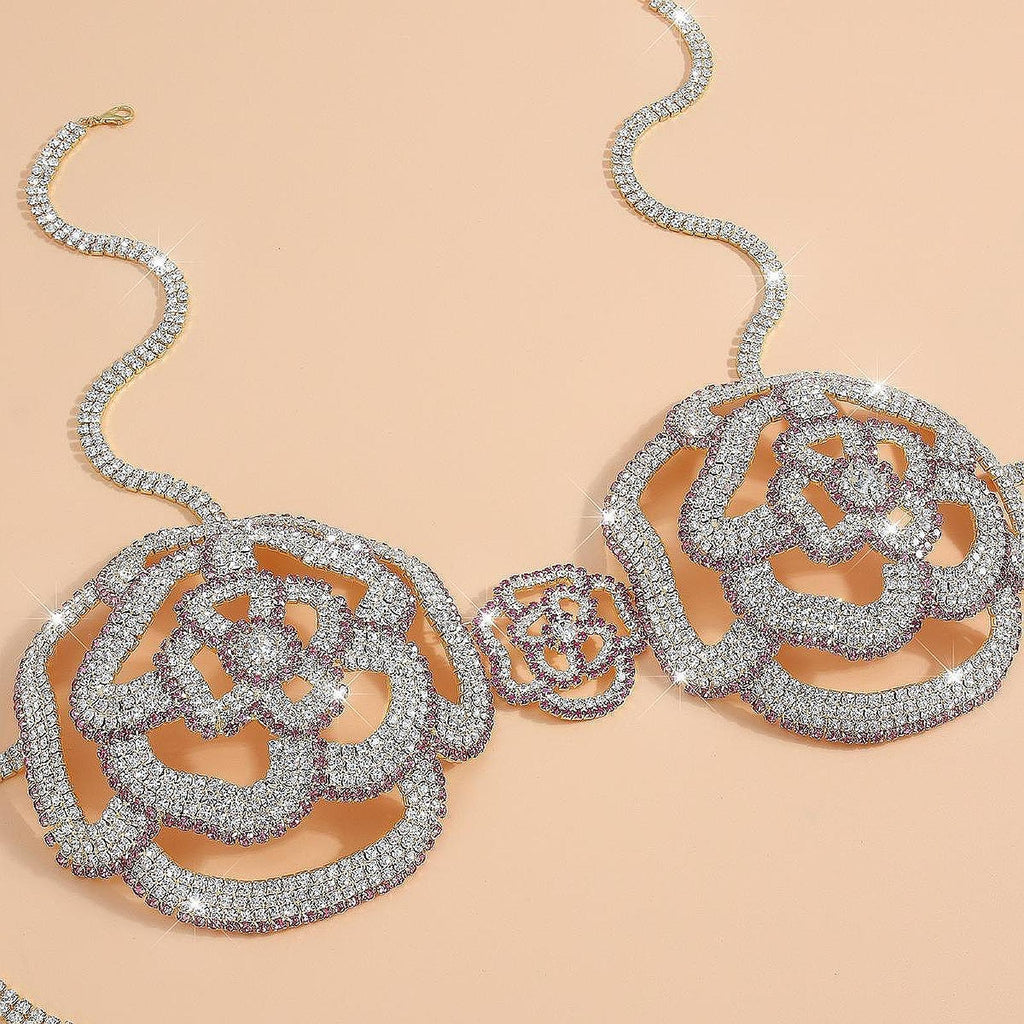 【Quality Rhinestones】: Crafted from premium rhinestones, this exaggerated rhinestone rose body chain adds a touch of and elegance to any ensemble, ensuring you shine at every occasion