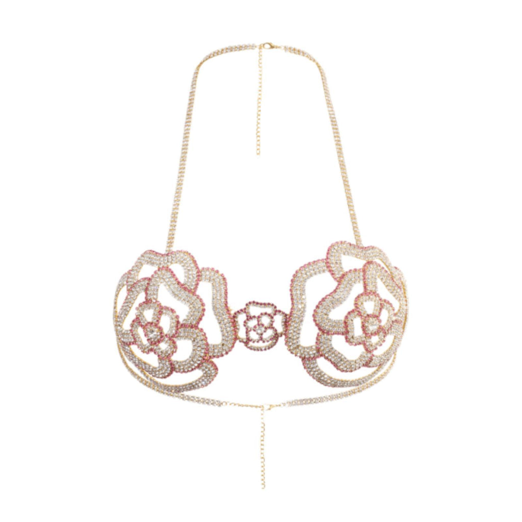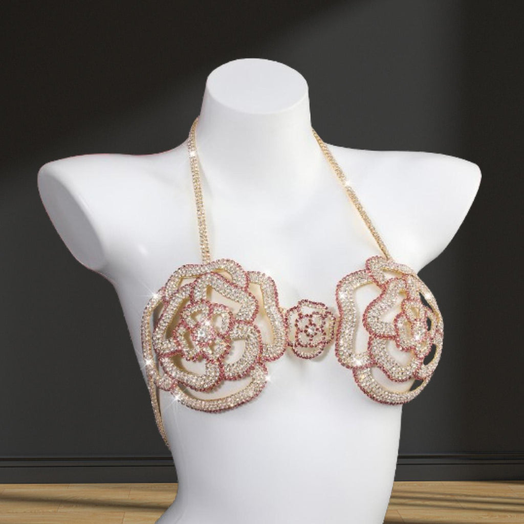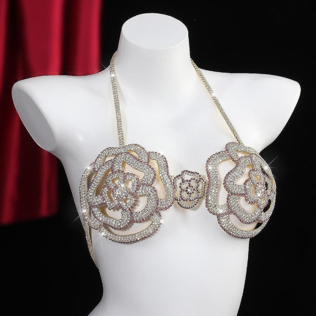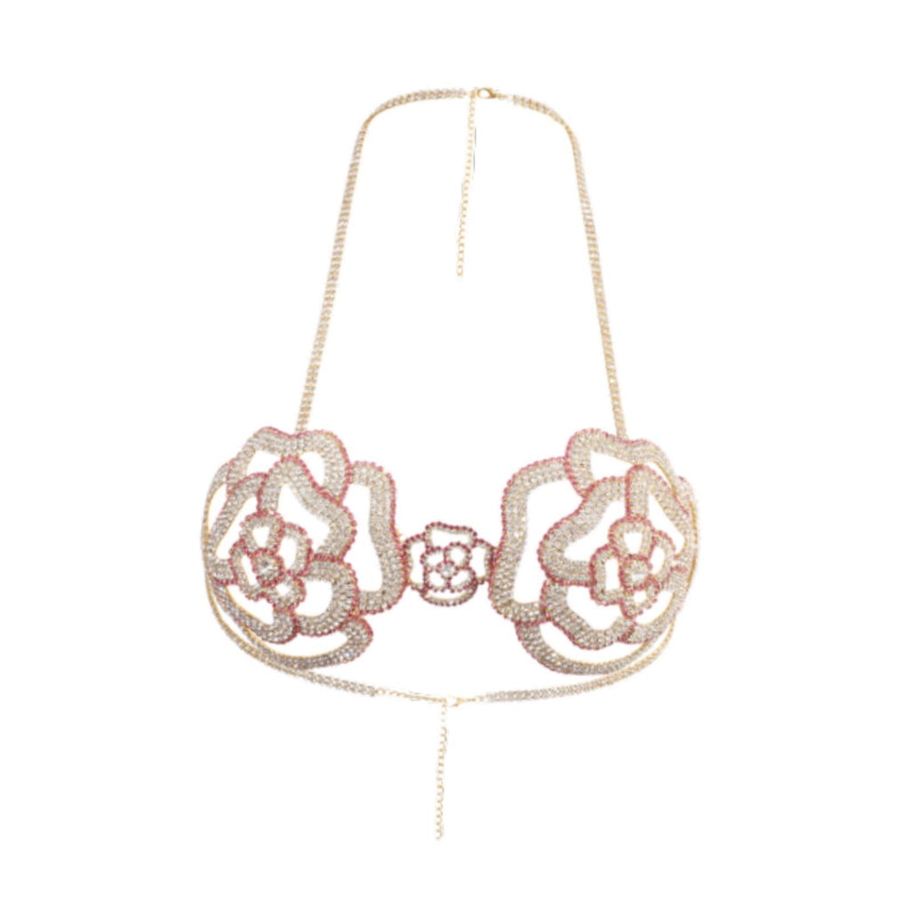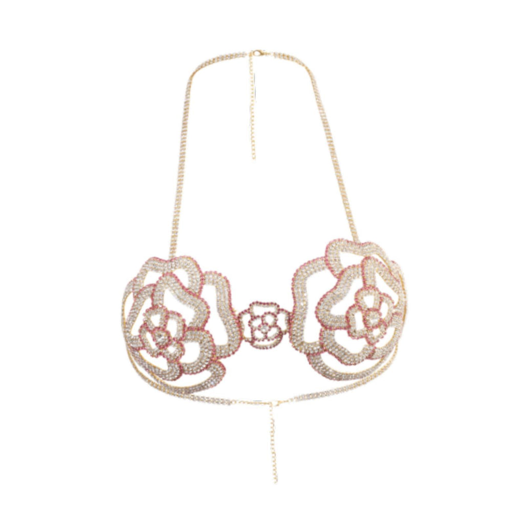 Maxbell Rhinestone Rose Body Chain Bra Creative for Fancy Dress Cosplay Celebrations