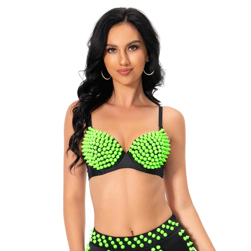 Maxbell Maxbell Rivet Corset Handmade Underwear Luxury Push up Bra for Club Women Girls Show XL Fluorescent Green