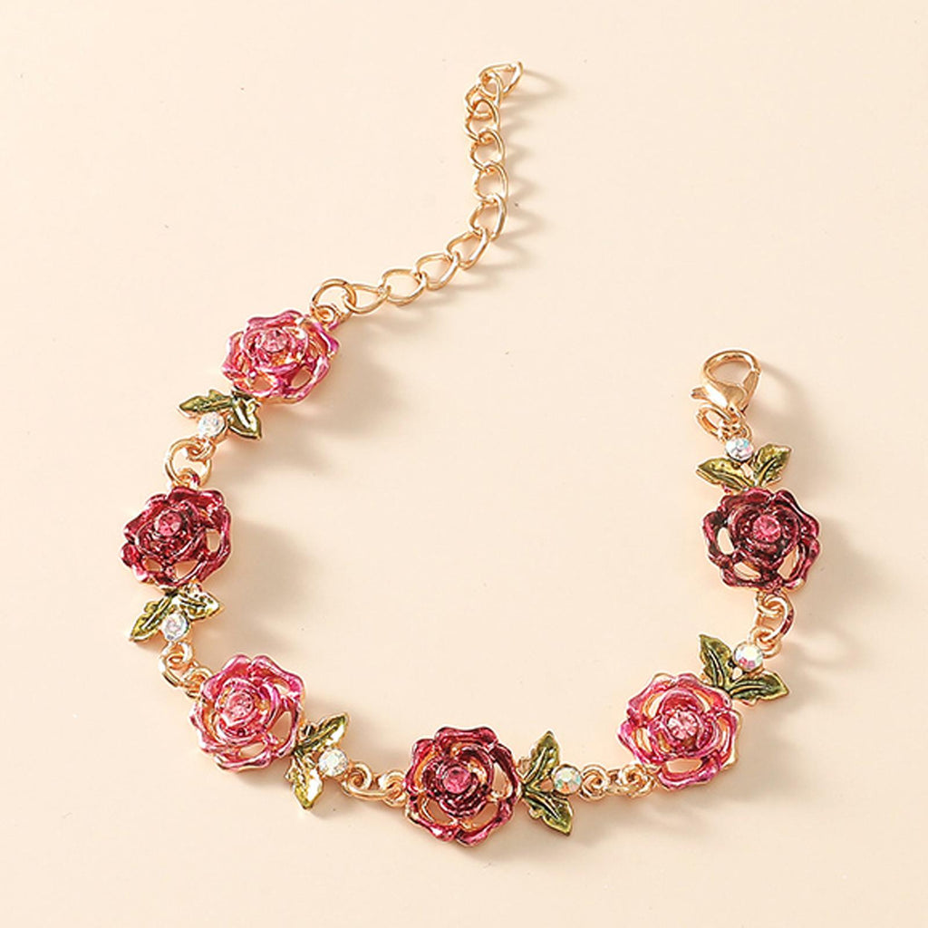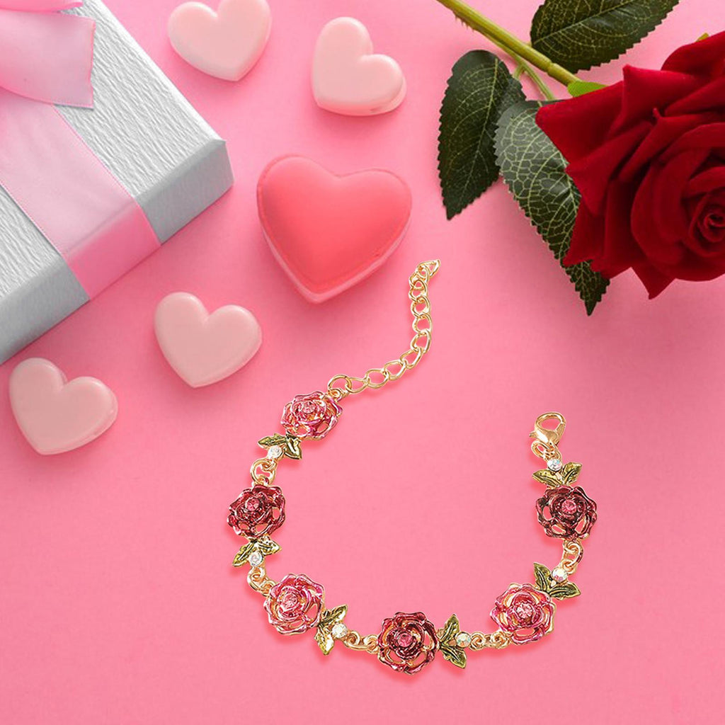 Maxbell Rose Flower Bracelet Shiny Adjustable for Girlfriends Birthday Wedding