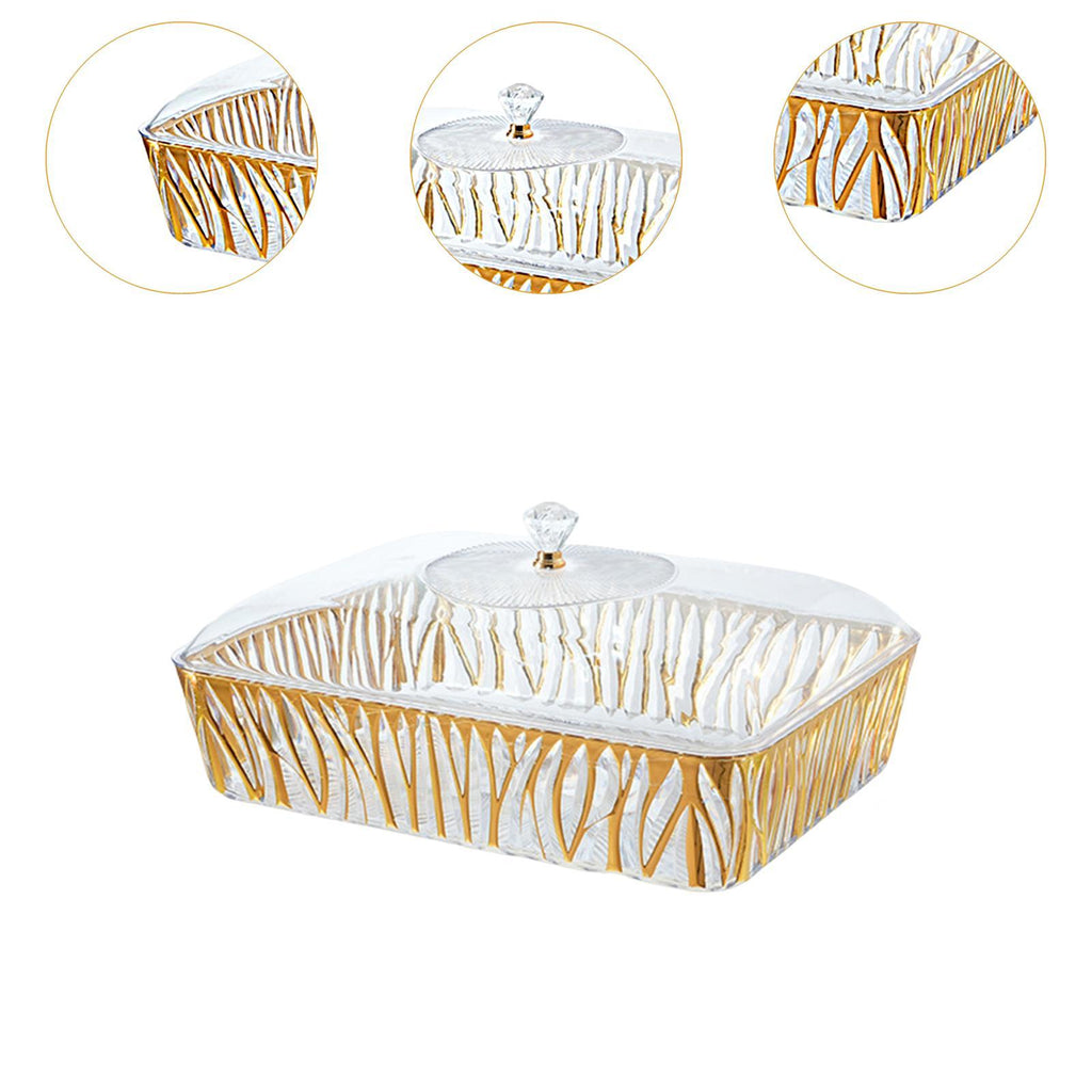 【Quality Construction】: Crafted from quality PET, this transparent Serving Tray with lid is designed for durability and practicality, making it ideal for organizing snacks on striped tabletop