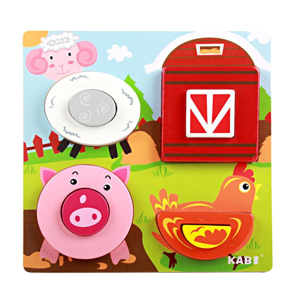Maxbell Set of Colorful Farm Animals Chunky Wooden Puzzle Blocks Jigsaw Kids Baby Brain Teasers Educational Creative Toy Gift
