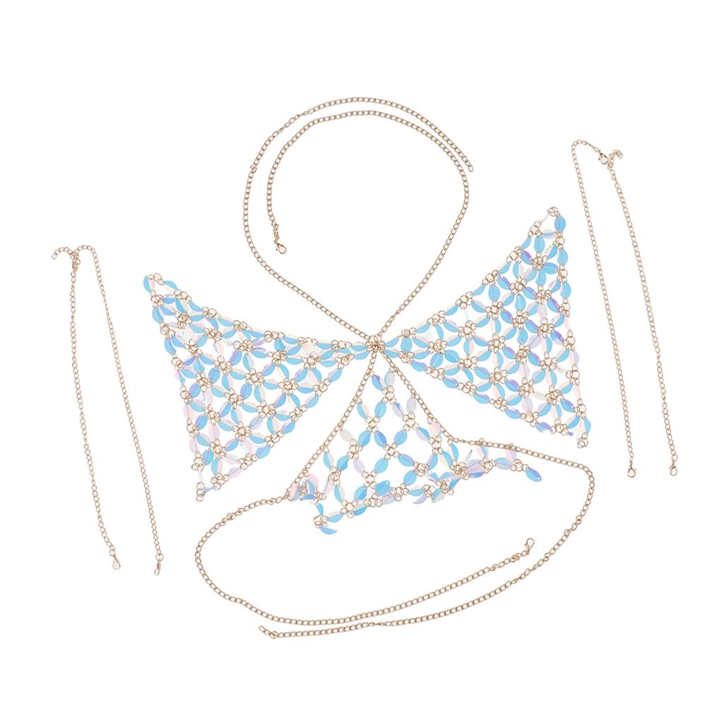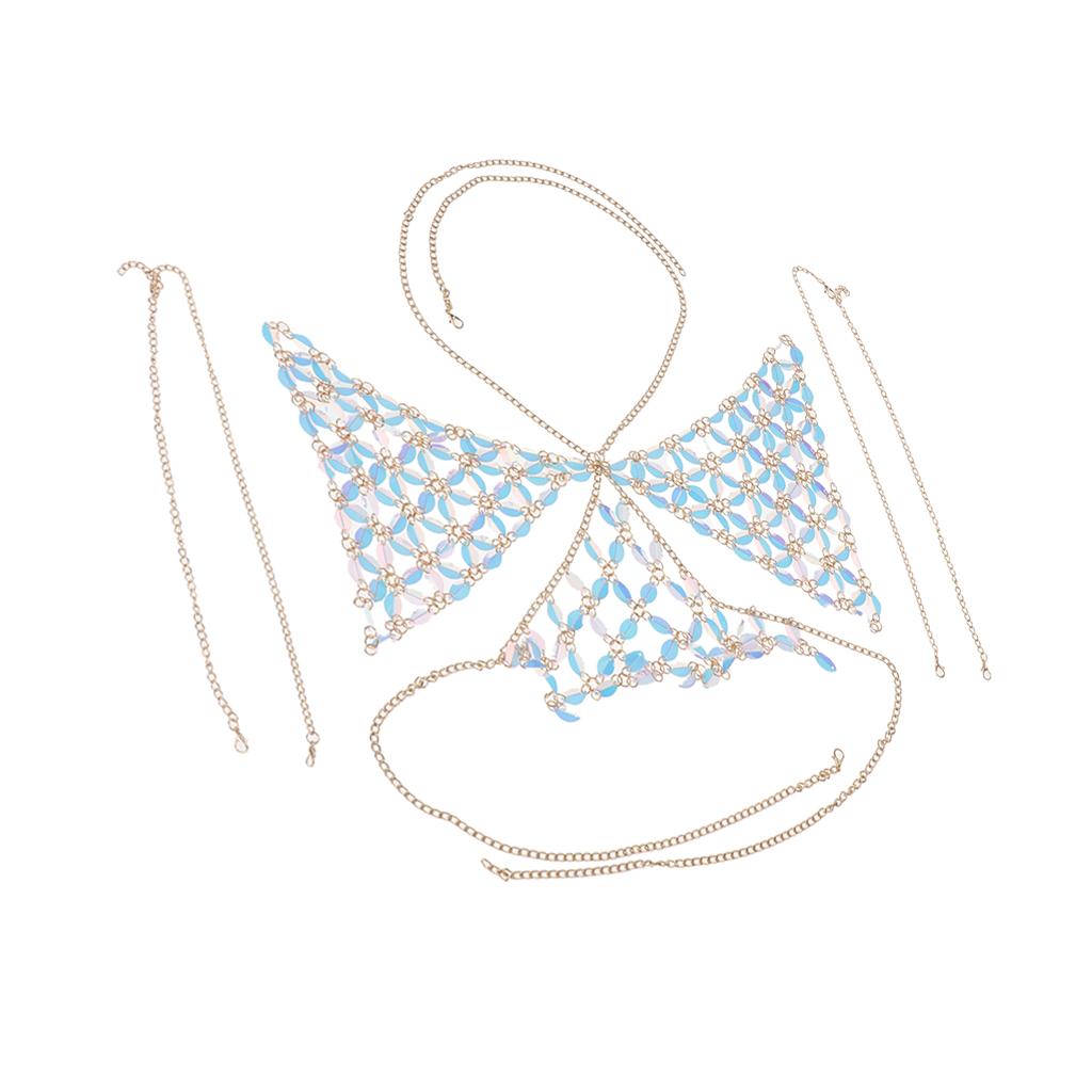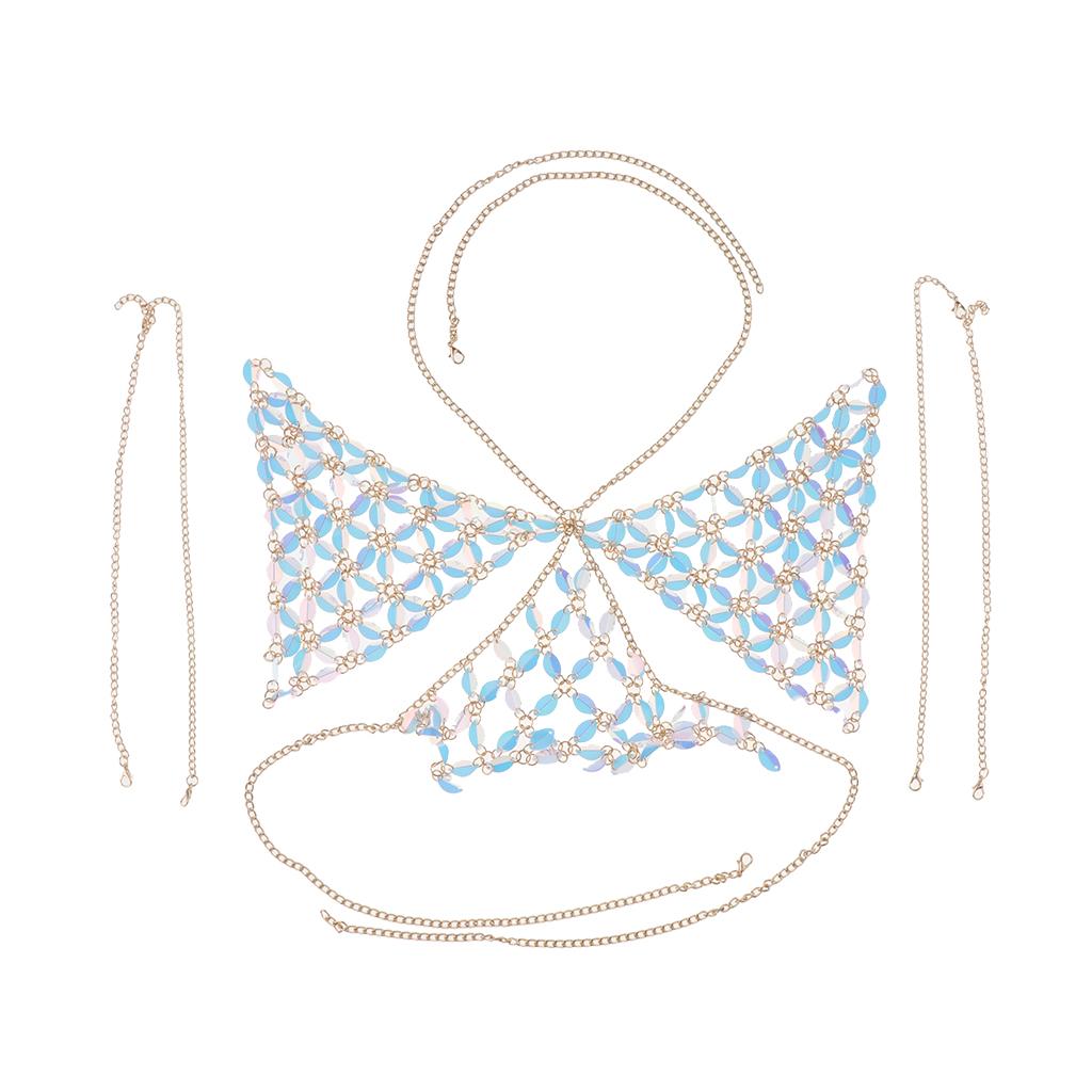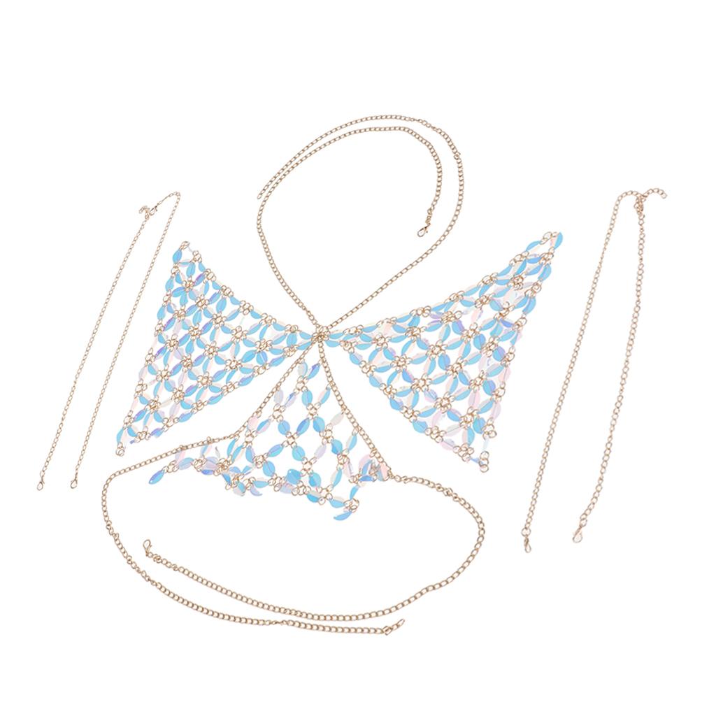 Maxbell Maxbell Sexy Bra Bikini Women Halter Sequin Tassel Summer Beach Chest Chain Blue