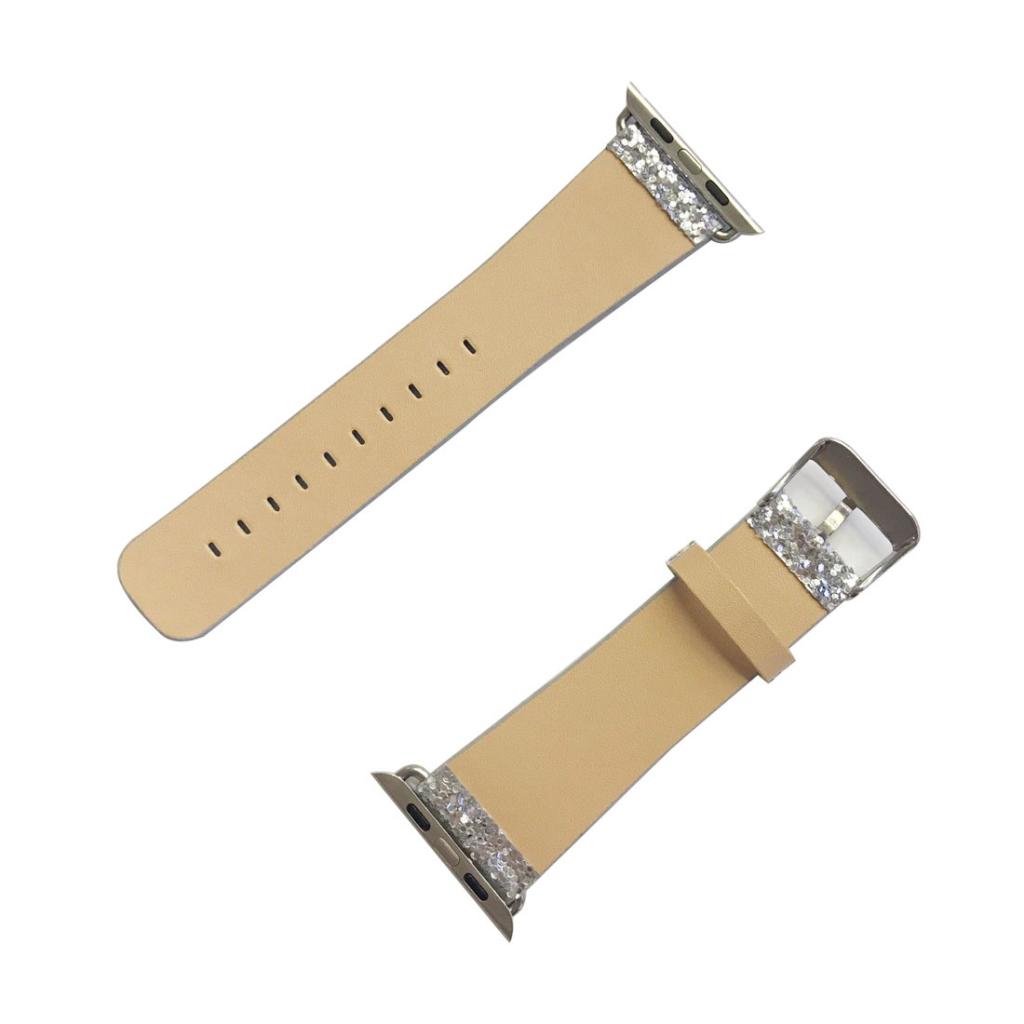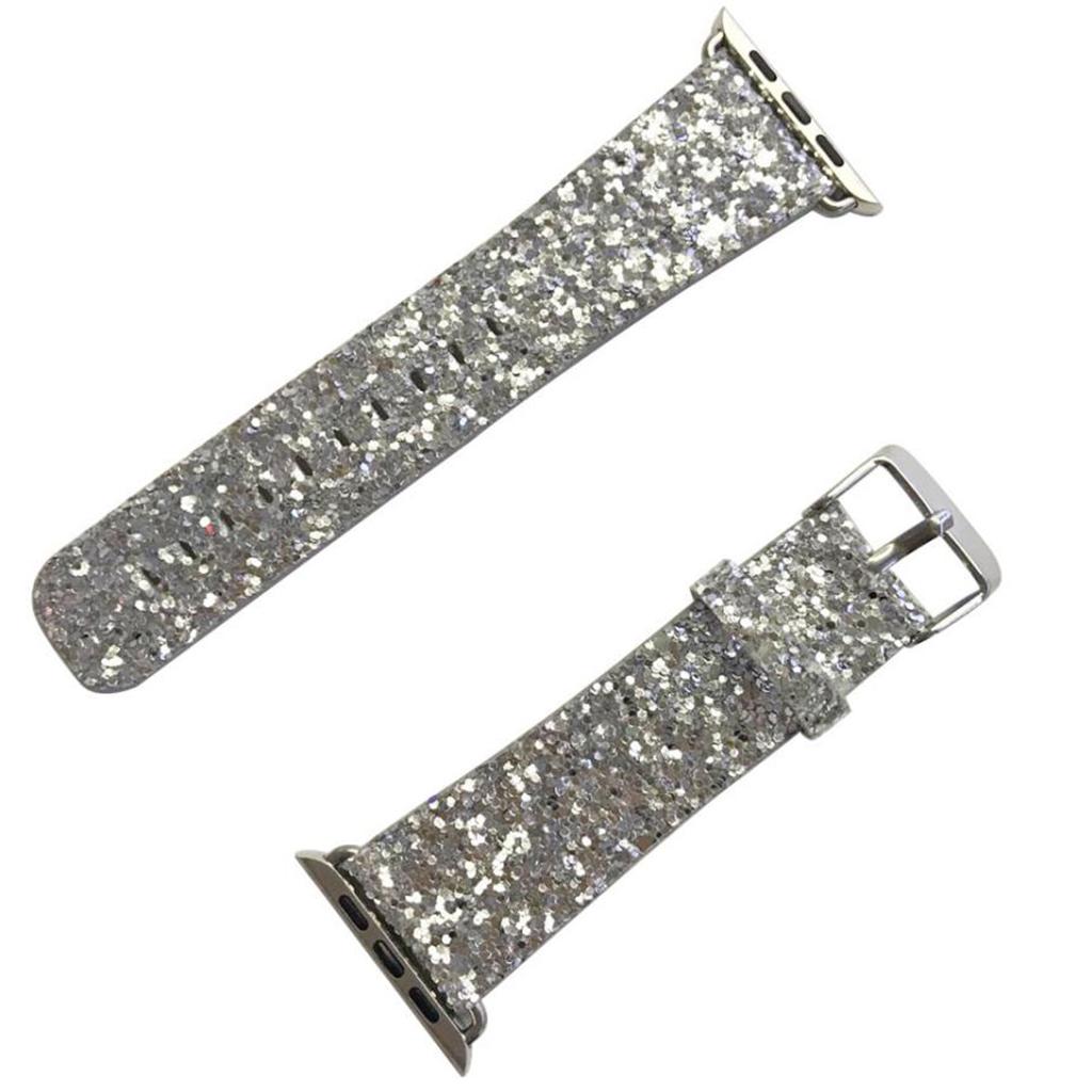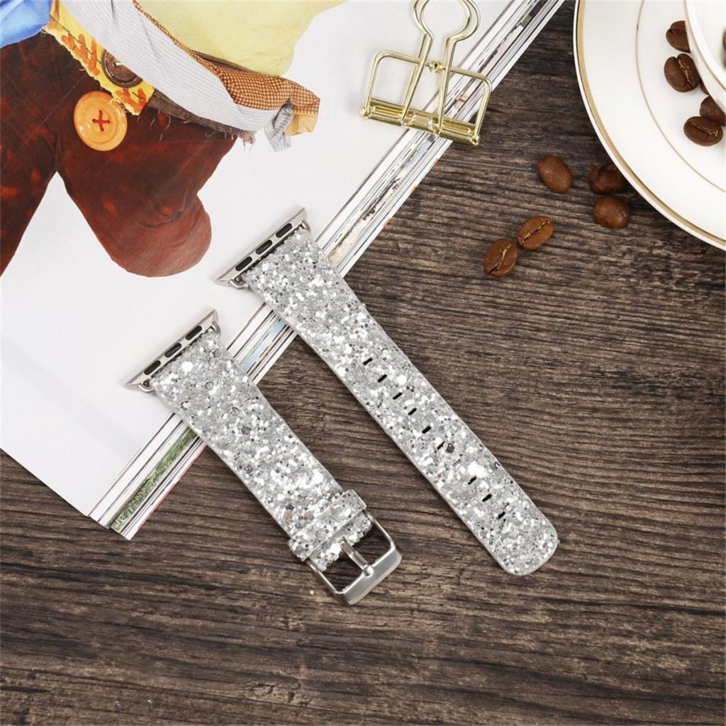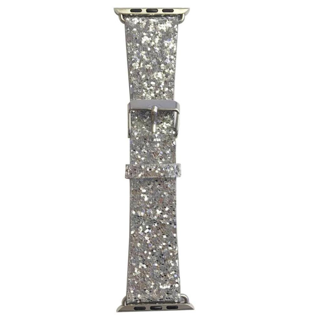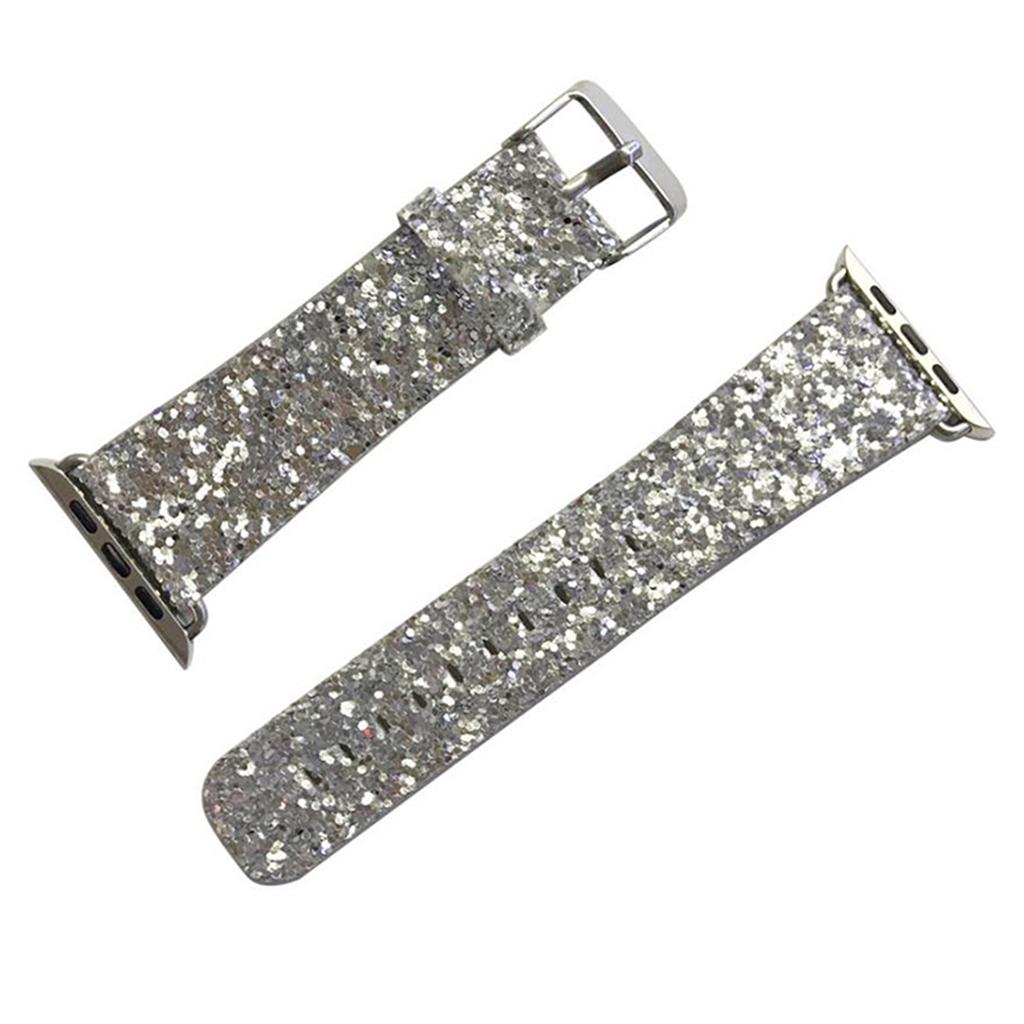 Maxbell Shiny Glitter Bling Leather Wristband Bracelet for iWatch 1/2/3 Silver 38mm