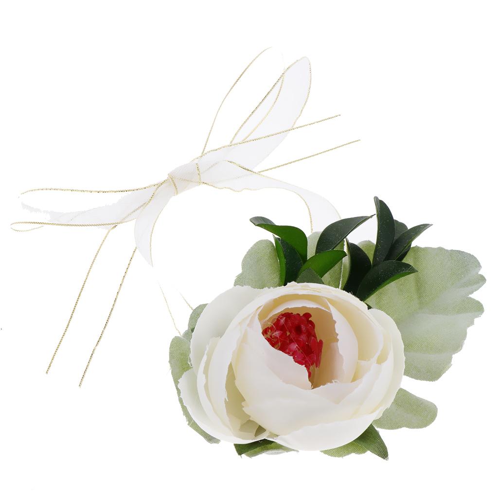 Max Silk Camellia Wrist Corsage Bridal Bracelet Wedding Hand Flower White