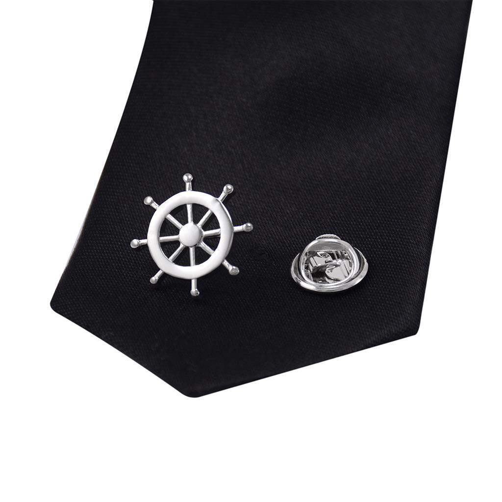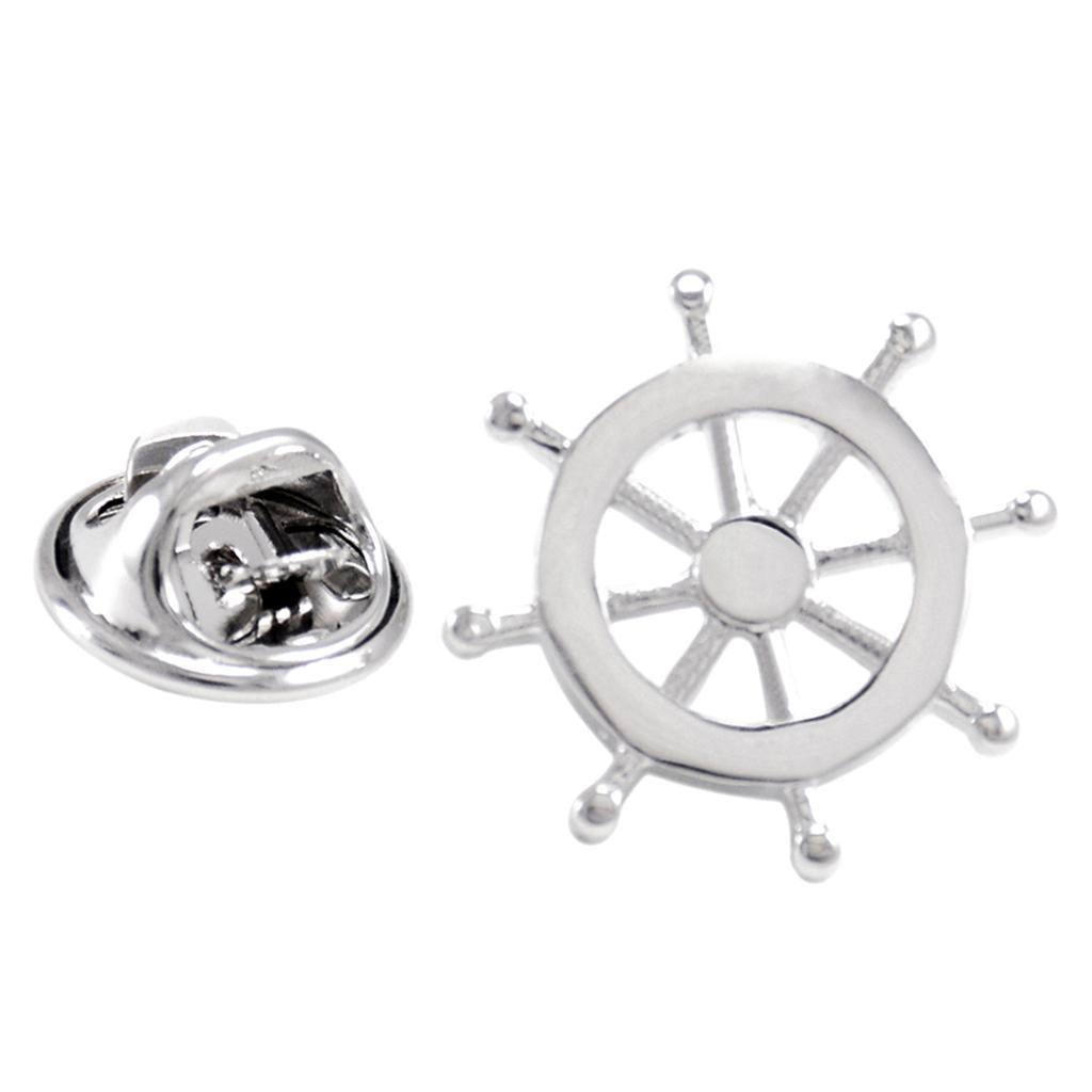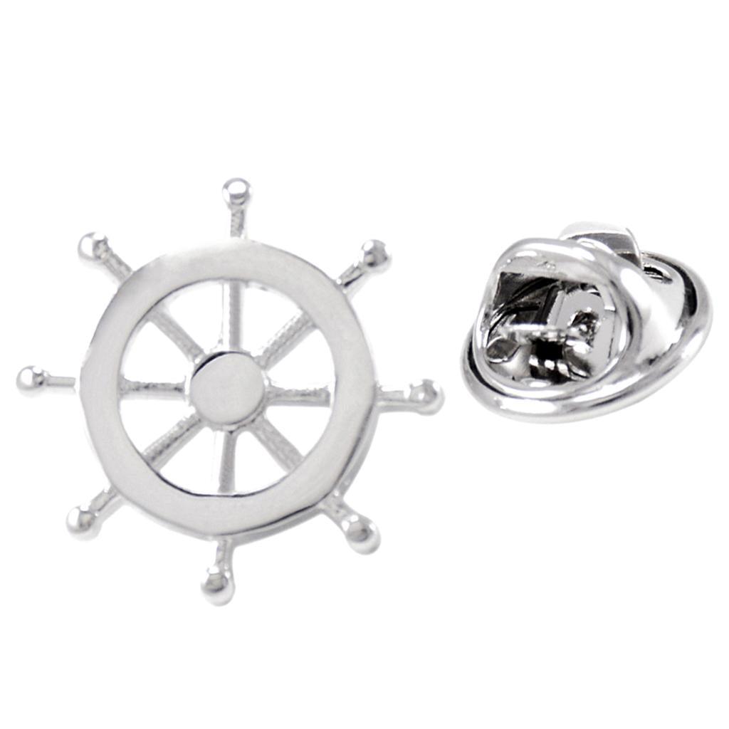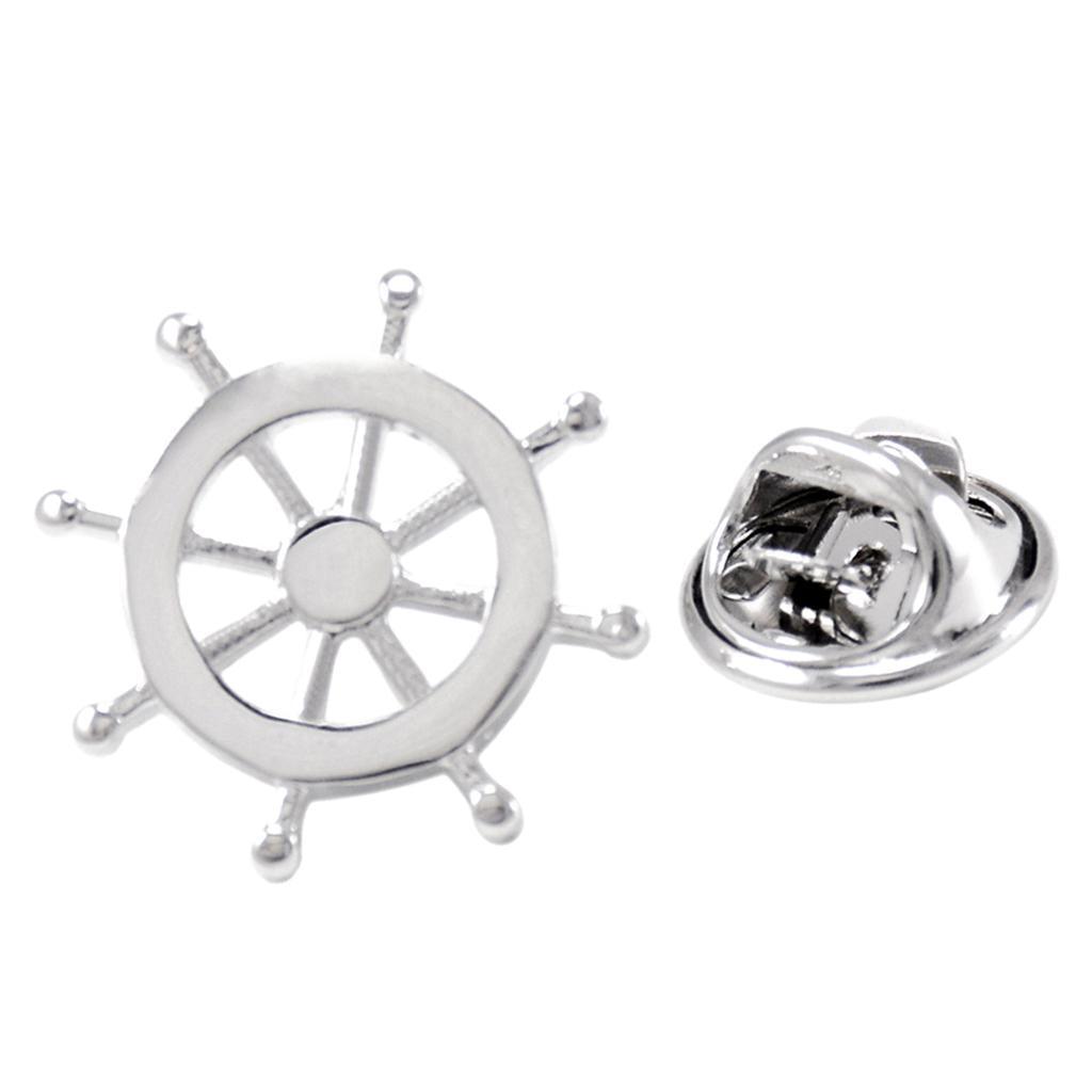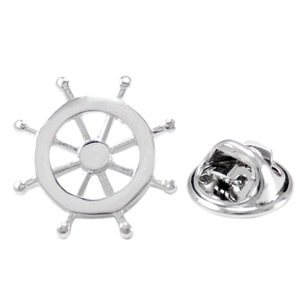 Maxbell Maxbell Silver Brass Nautical Ship Steering Wheel Collar Lapel Badge Marine Charms Fashion Women Mens Shirt Pin