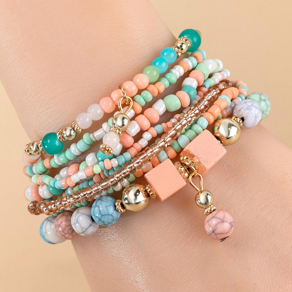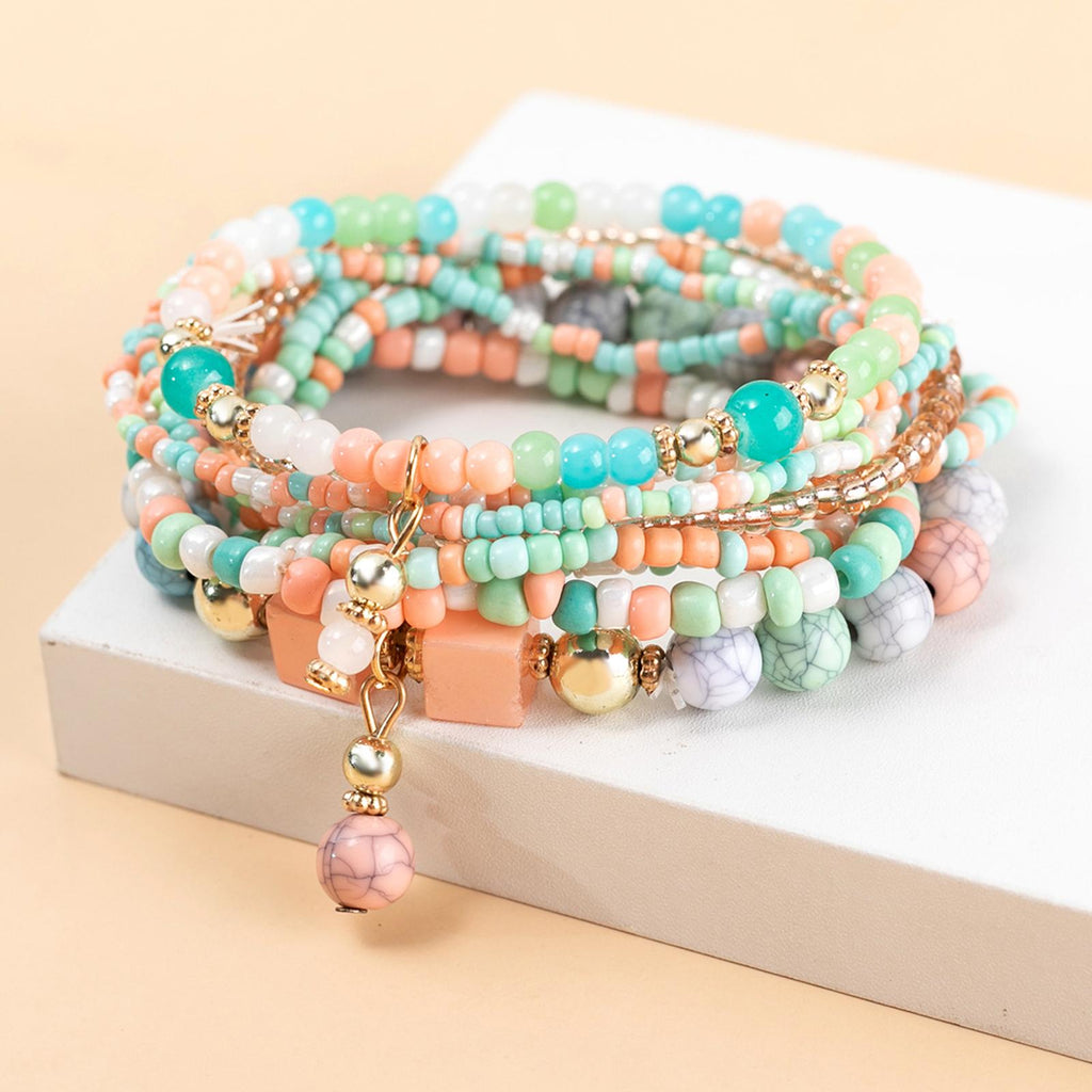 Bright Colors: Multi Layered bohemian beaded bracelet with charm pendants, comfortable to wear.