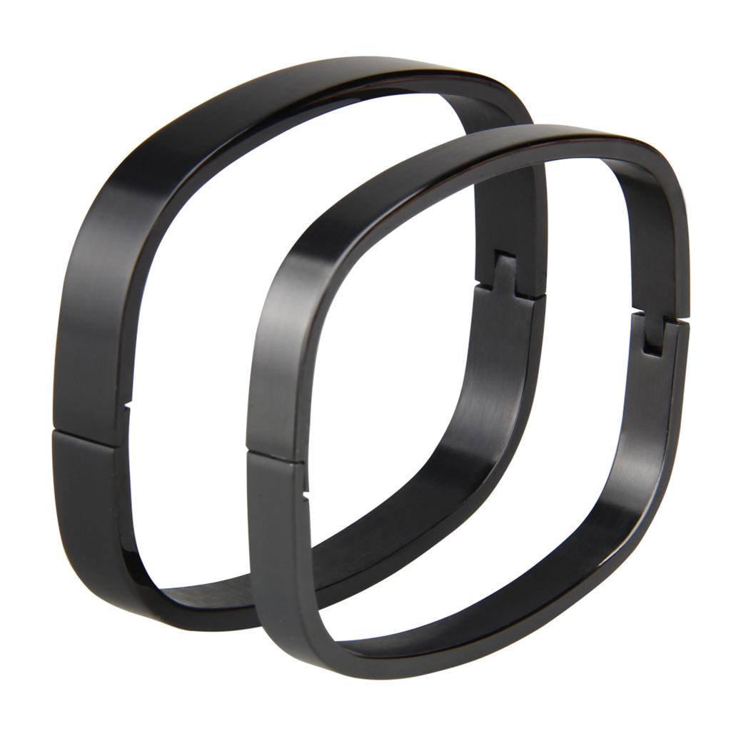 Maxbell Stainless Steel Couples Bracelet Cuff Bangle Square Wristband Black 6mm