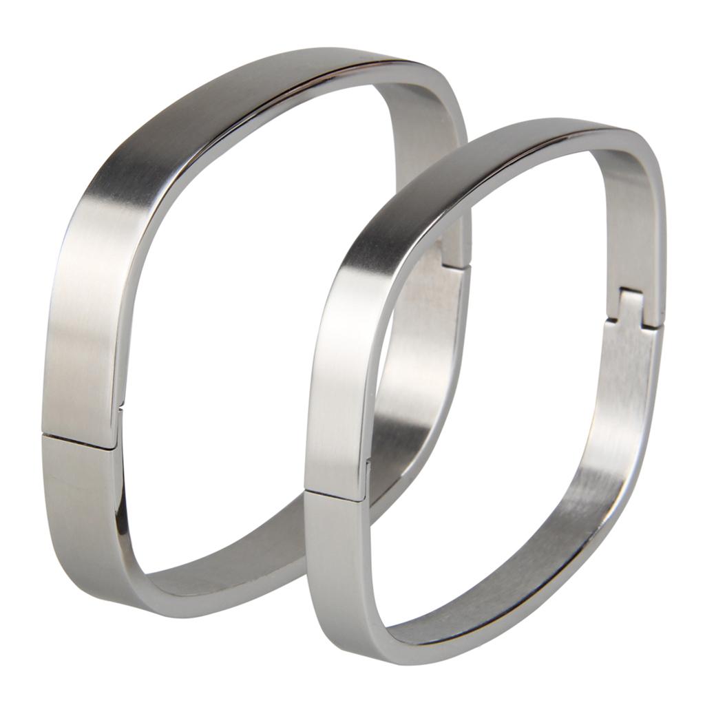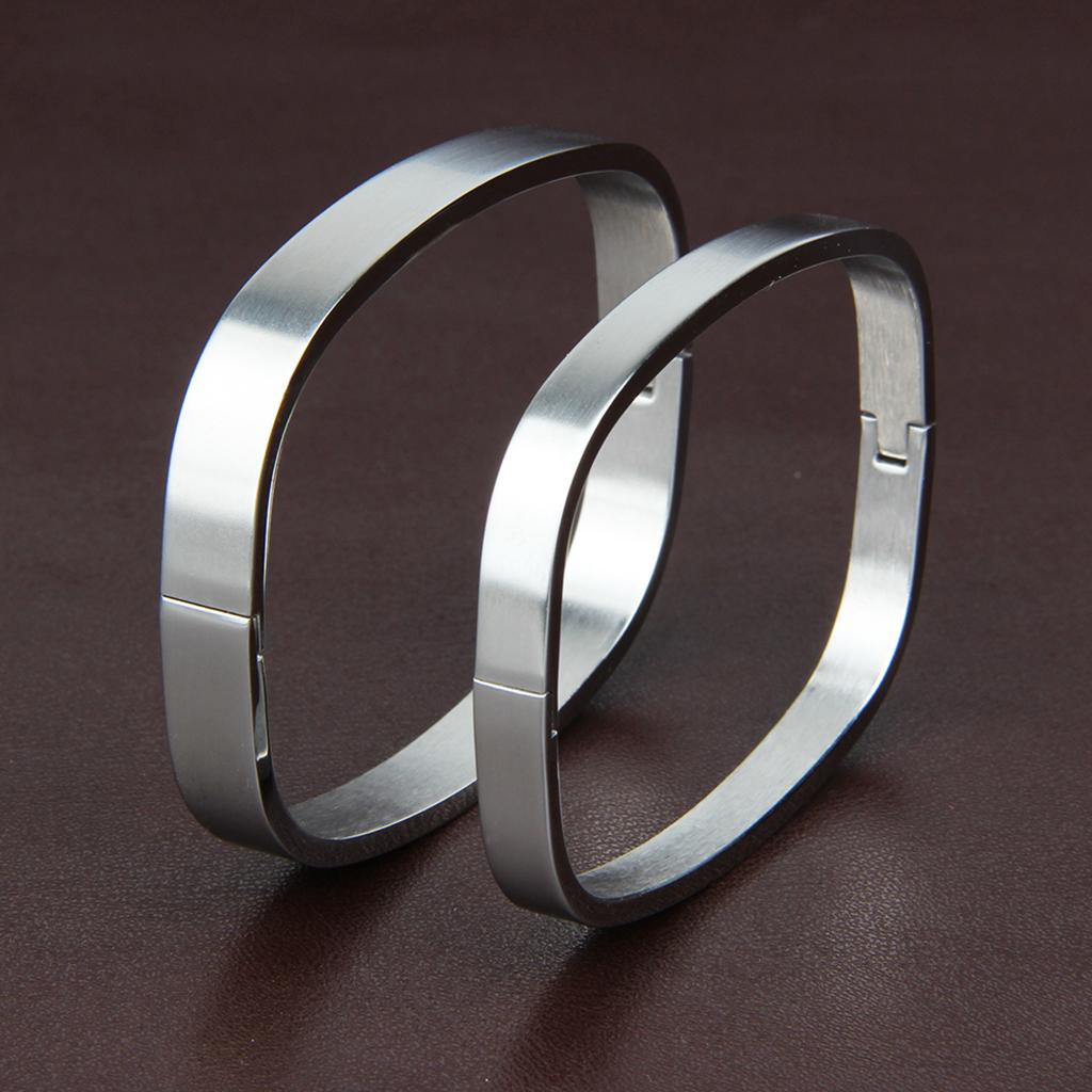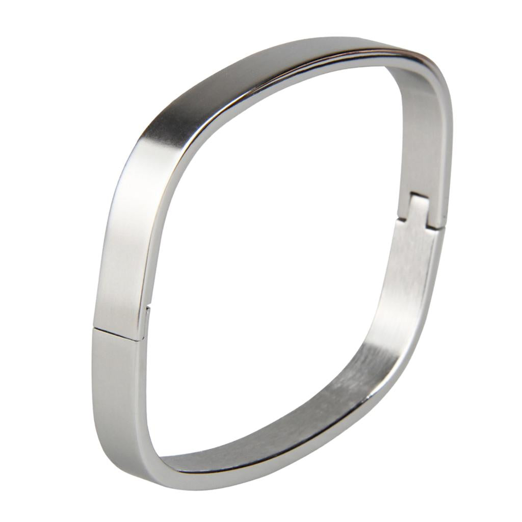 Maxbell Stainless Steel Couples Bracelet Cuff Bangle Square Wristband Silver 6mm