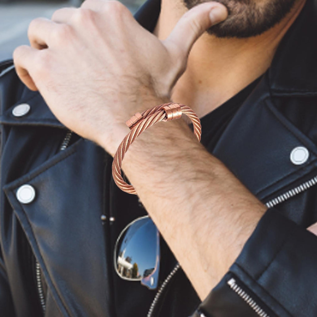 Maxbell Steel Twisted Wire Cuff Bangle Bracelet Hip Hop Bracelet Rose Aureate