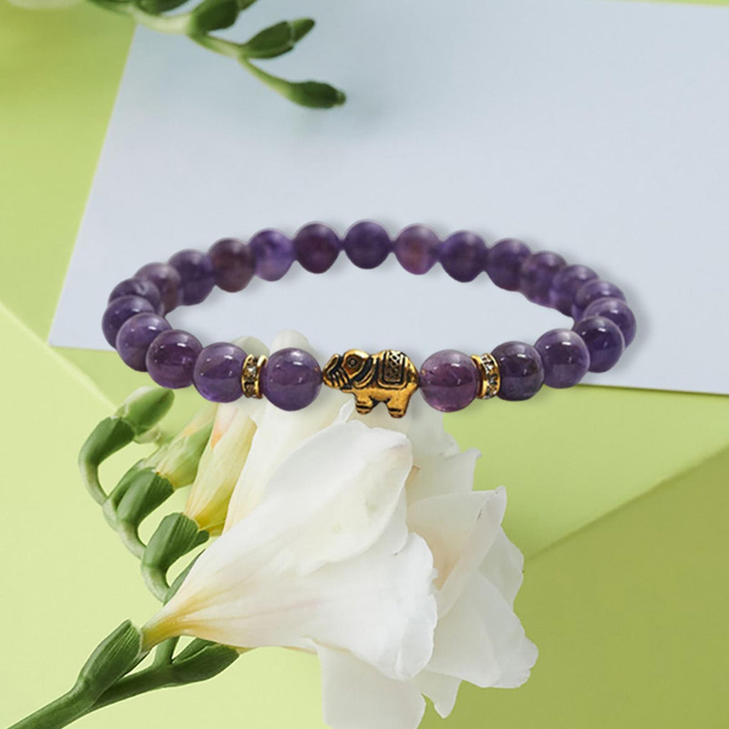 Maxbell Stretch Bracelet Round Bead Handmade for Lovers Valentine'S Day Holidays Purple