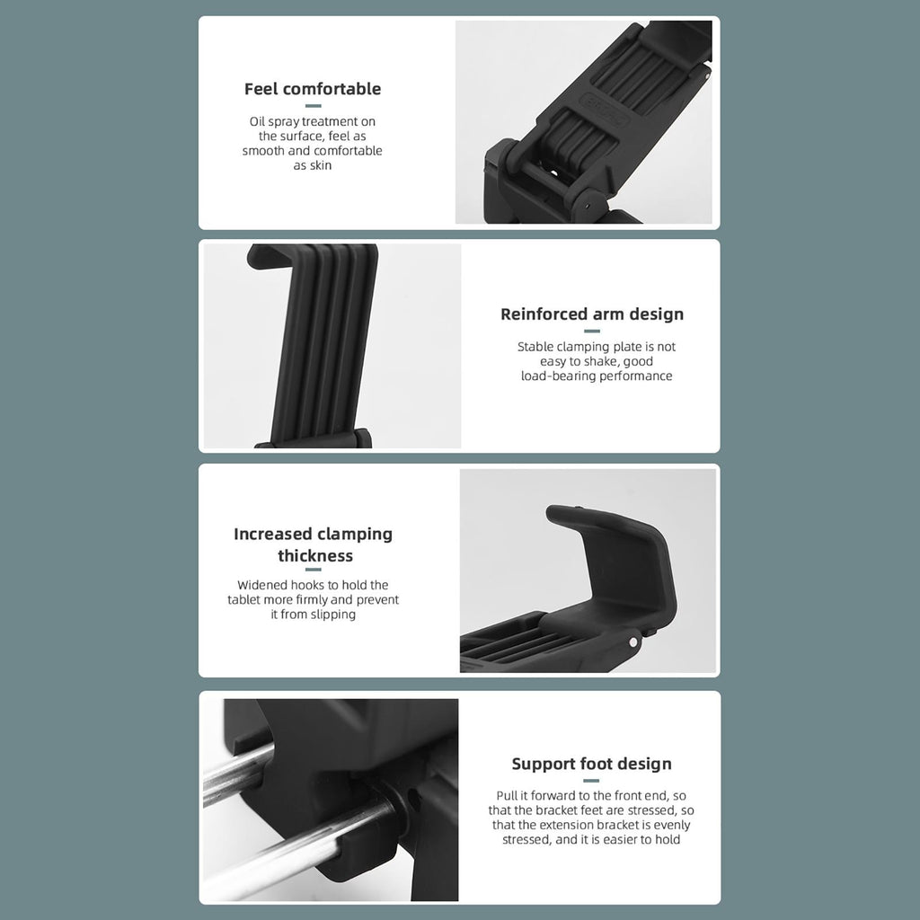 Durable and Stable: The tablet extended bracket holder made of plastic, reinforced arm design and widen the hook can hold the tablet more stably.