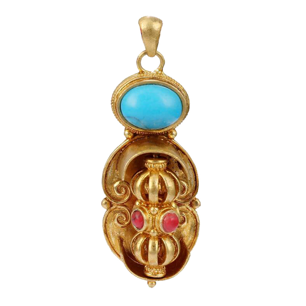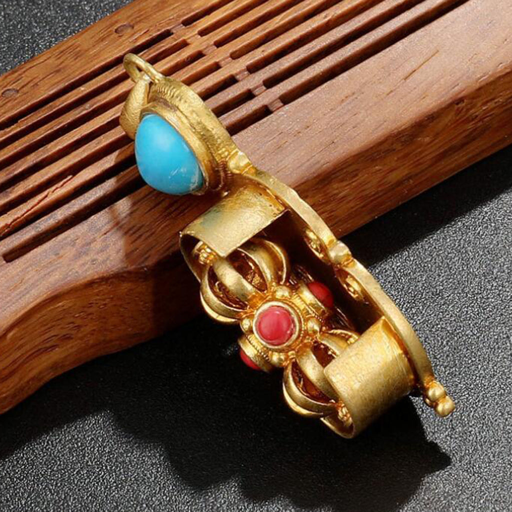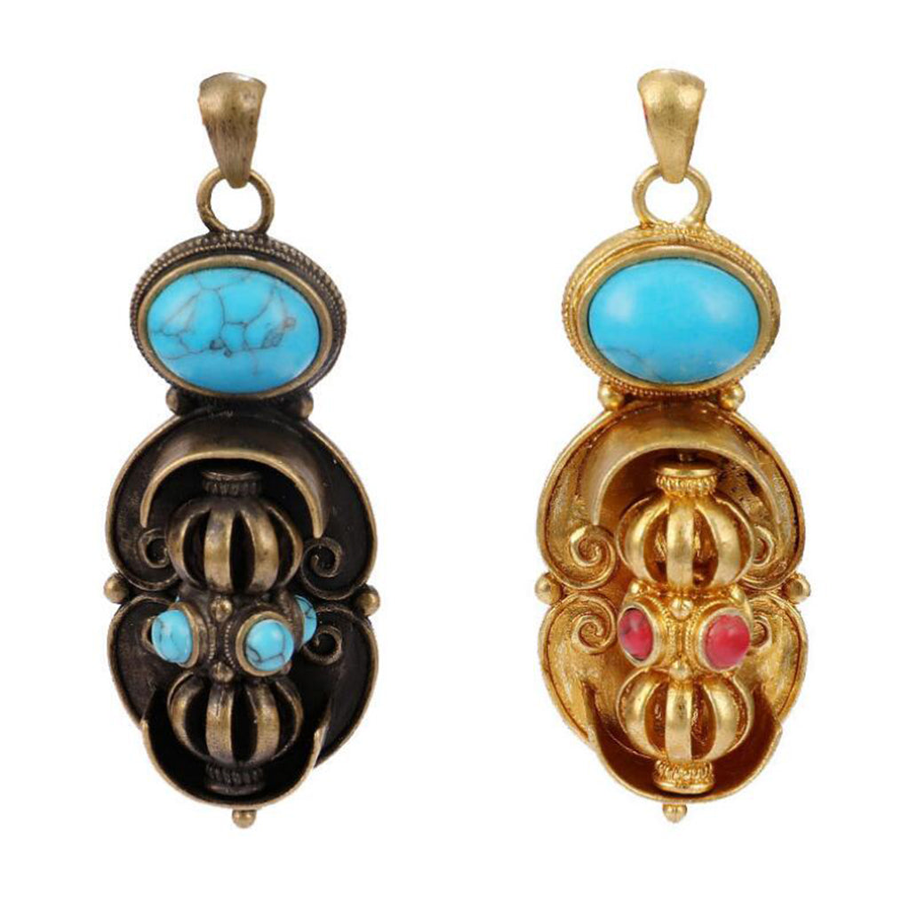 Maxbell Tibetan Buddhist Lama Antique Rotating Vajra Pestle Amulet Pendant Brass