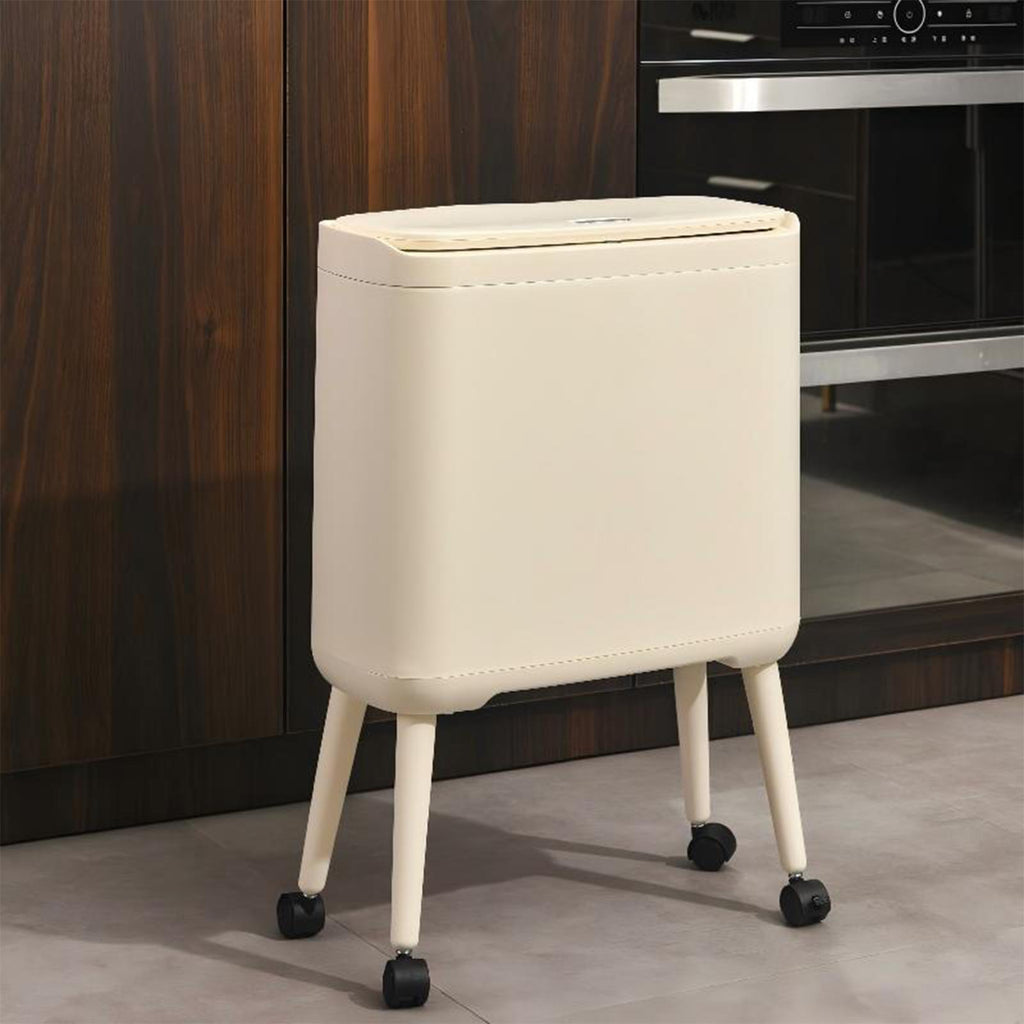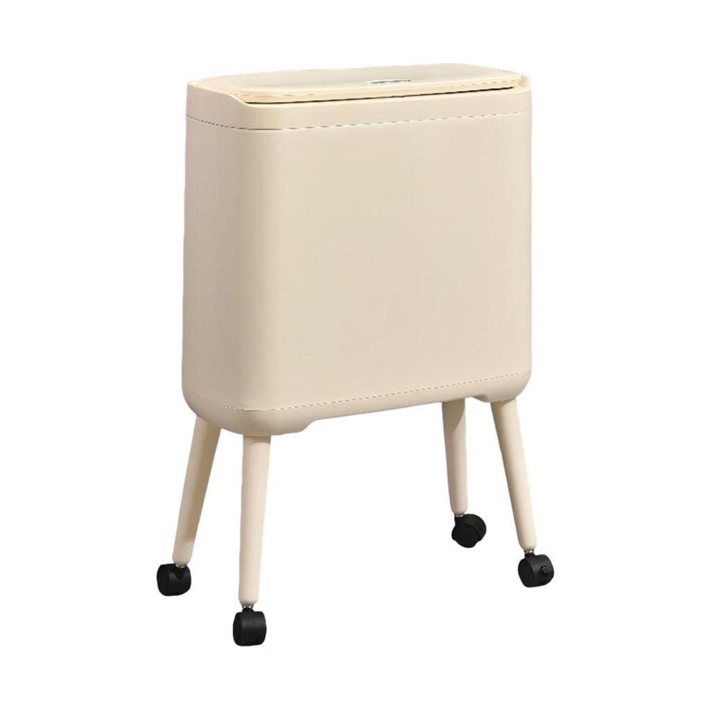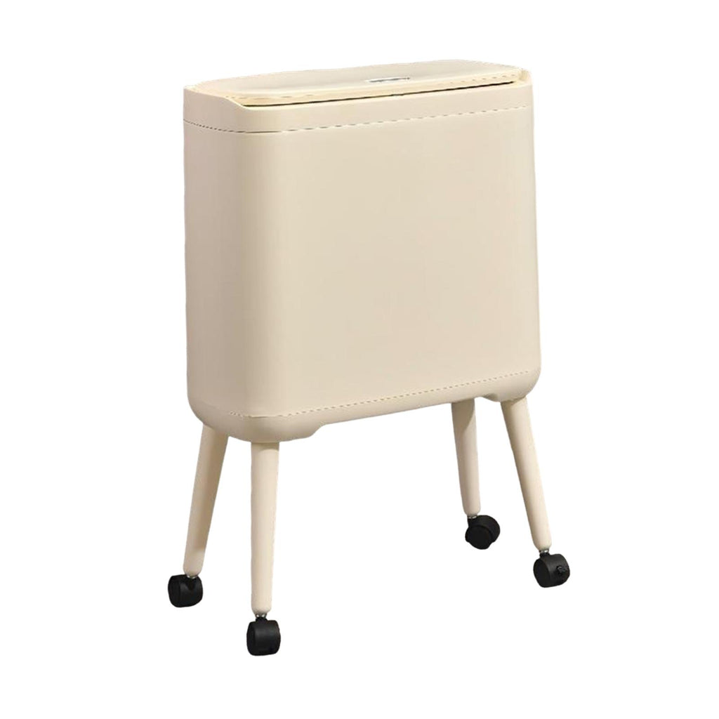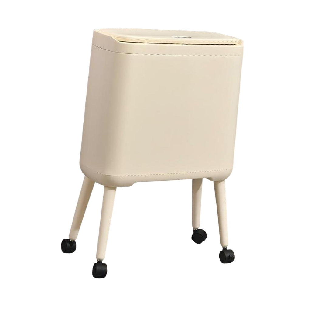 Trash Can with Wheels with Brake System Wastebasket for Office Bathroom Home Beige