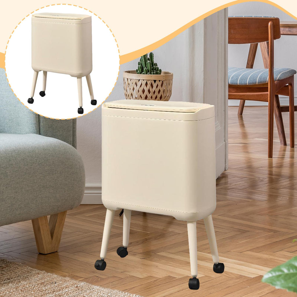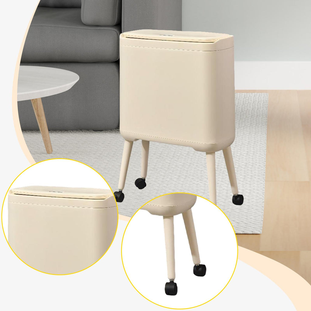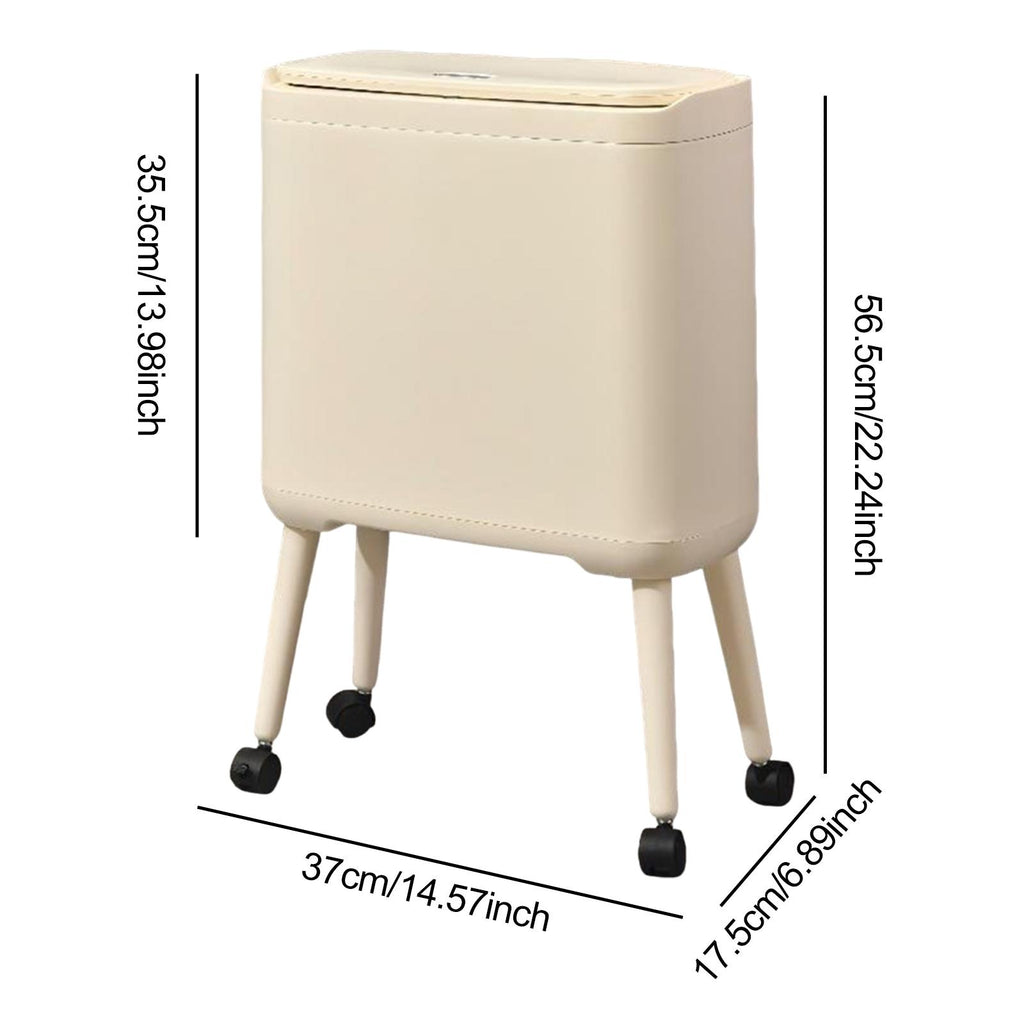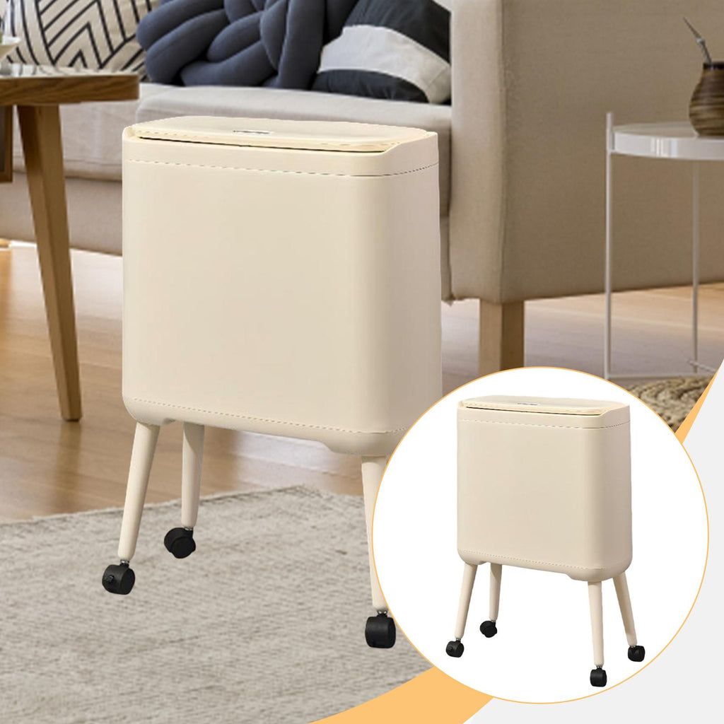 Trash Can with Wheels with Brake System Wastebasket for Office Bathroom Home Beige