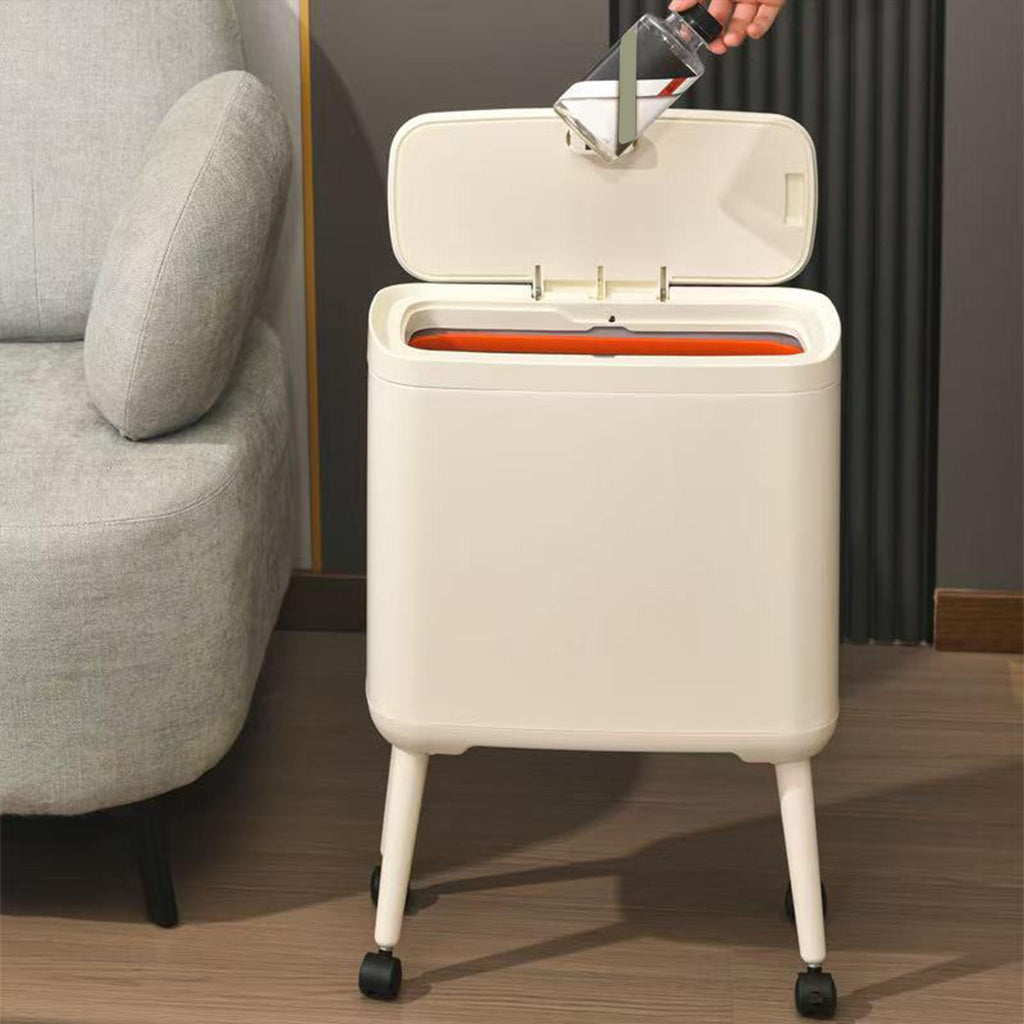 - 【Ergonomic Design】: This stylish trash can features an elevated design that eliminates the need to bend over, making it great for comfortable use in the kitchen or any room