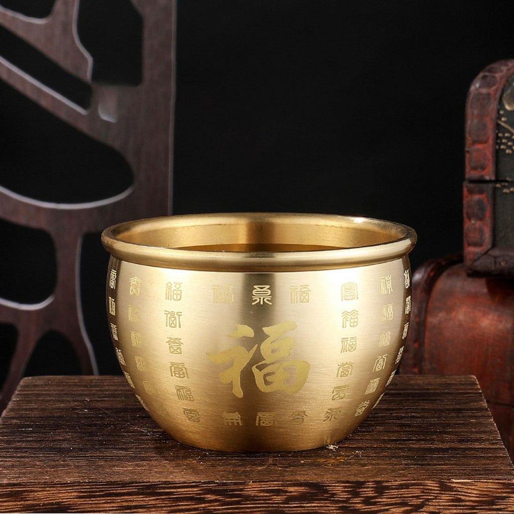 - TRADITIONAL DECOR: Chinese style brass cylinder bowl, with Chinese words decorative, exquisite details, add artistic flavor to your interior decoration.