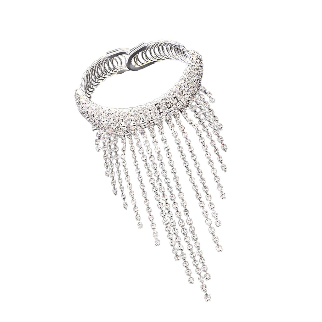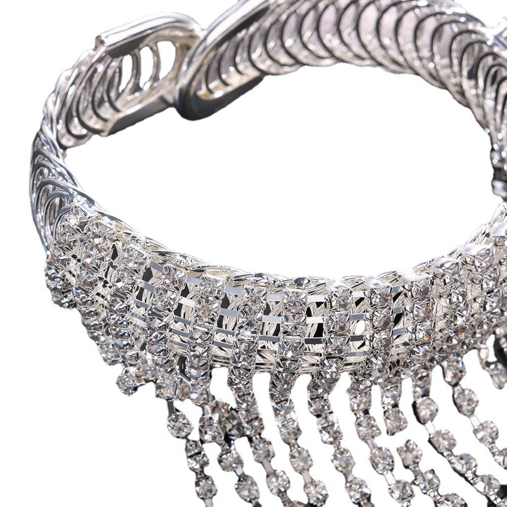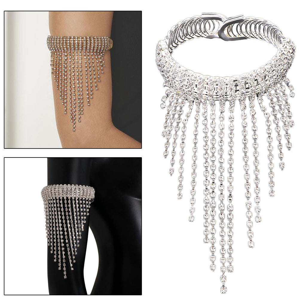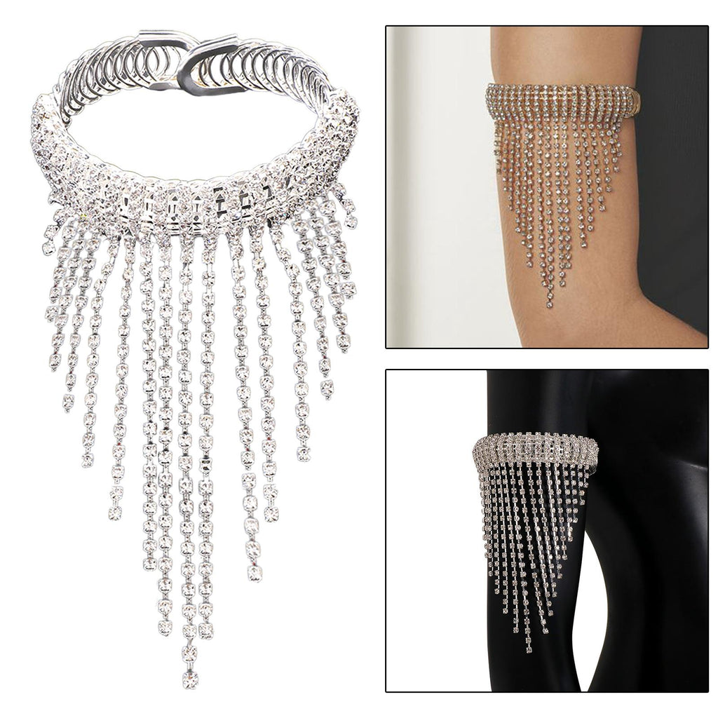 Maxbell Upper Arm Cuff Bracelet Tassel Chain Shining Rhinestone for Party