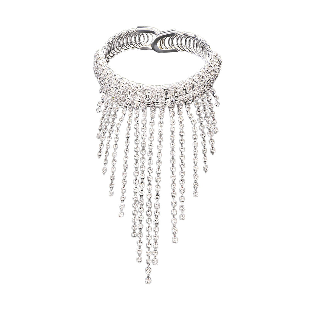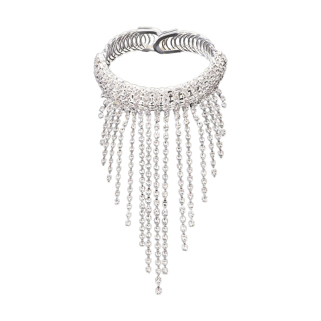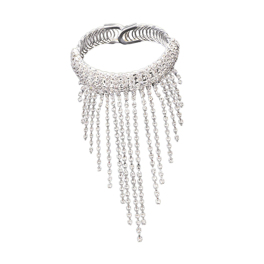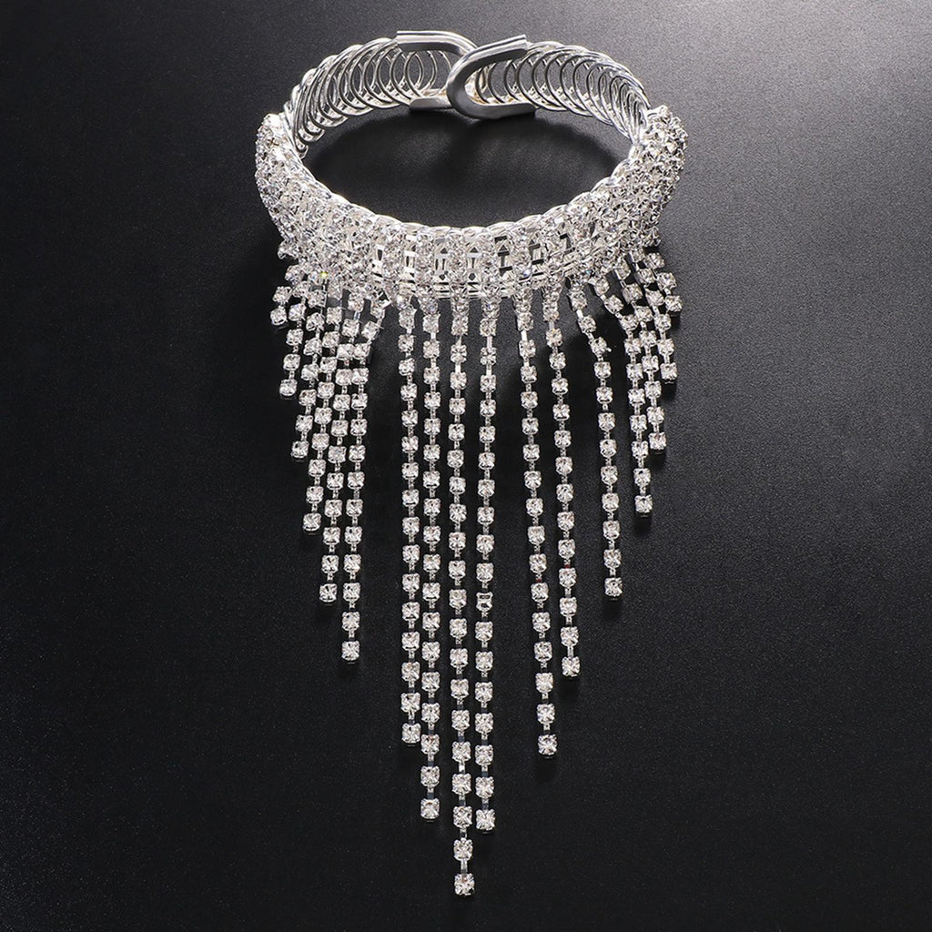 Maxbell Upper Arm Cuff Bracelet Tassel Chain Shining Rhinestone for Party