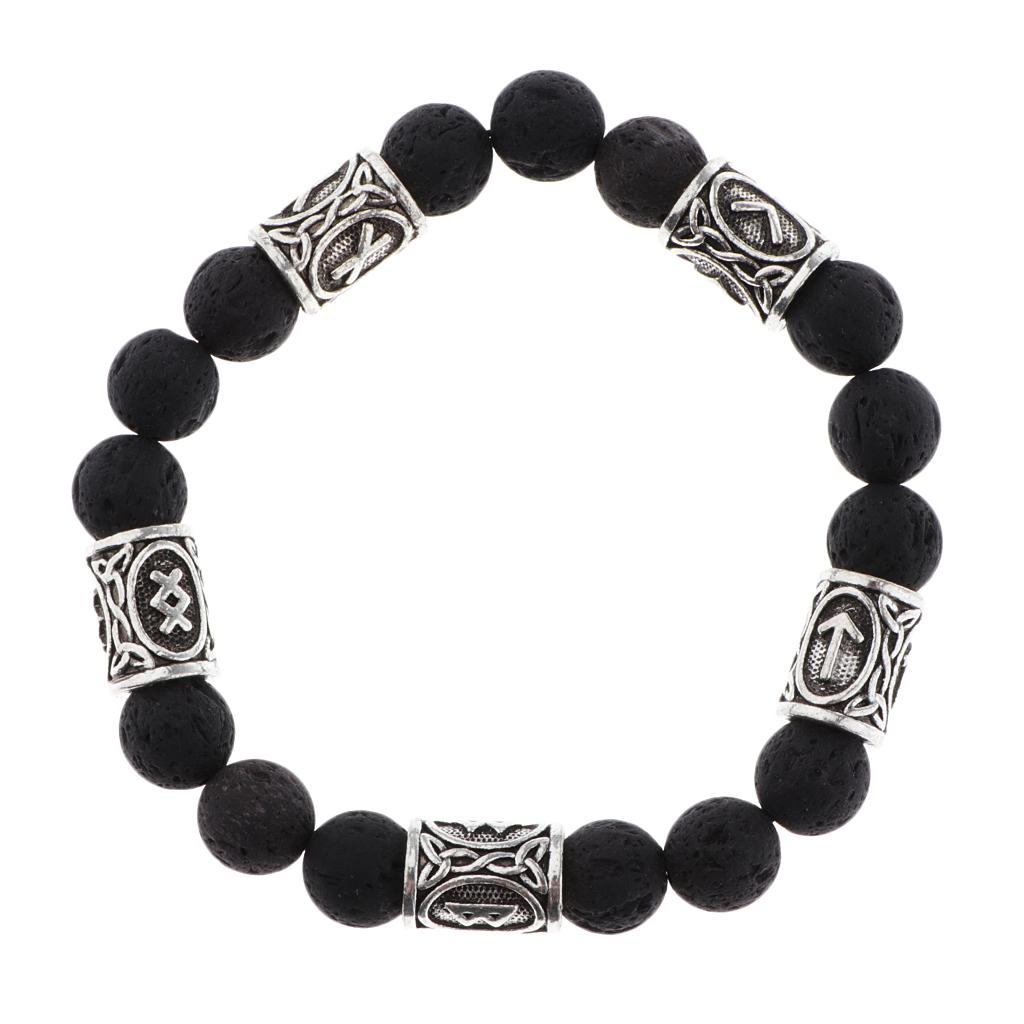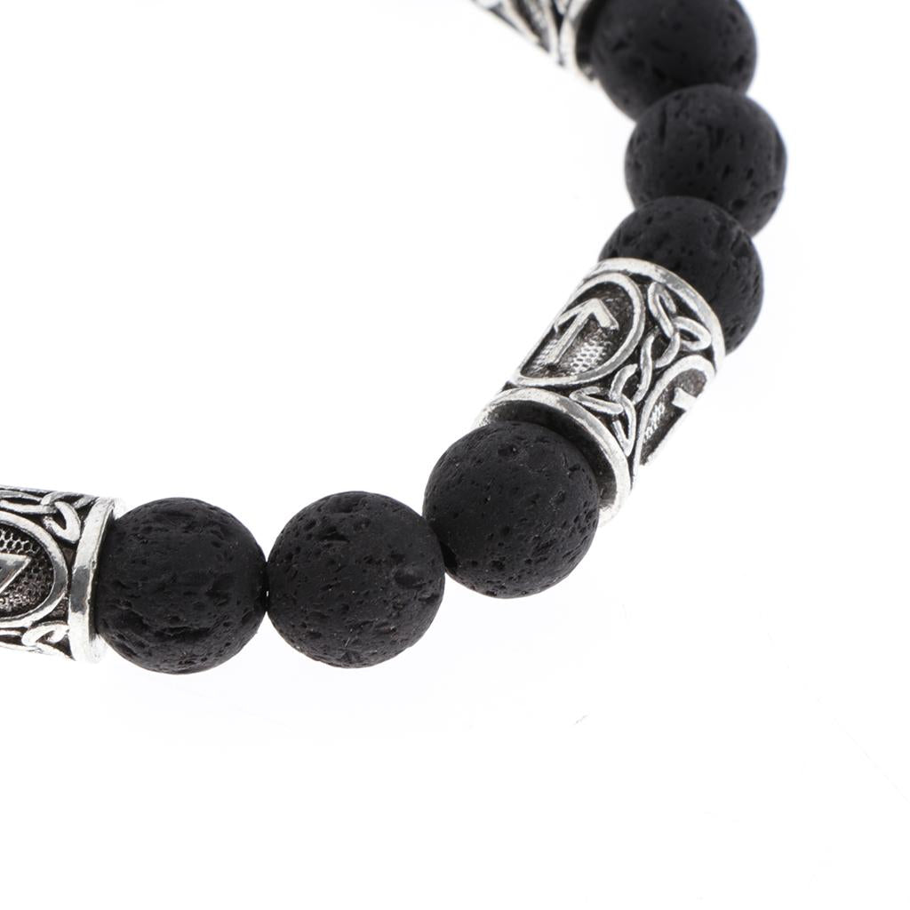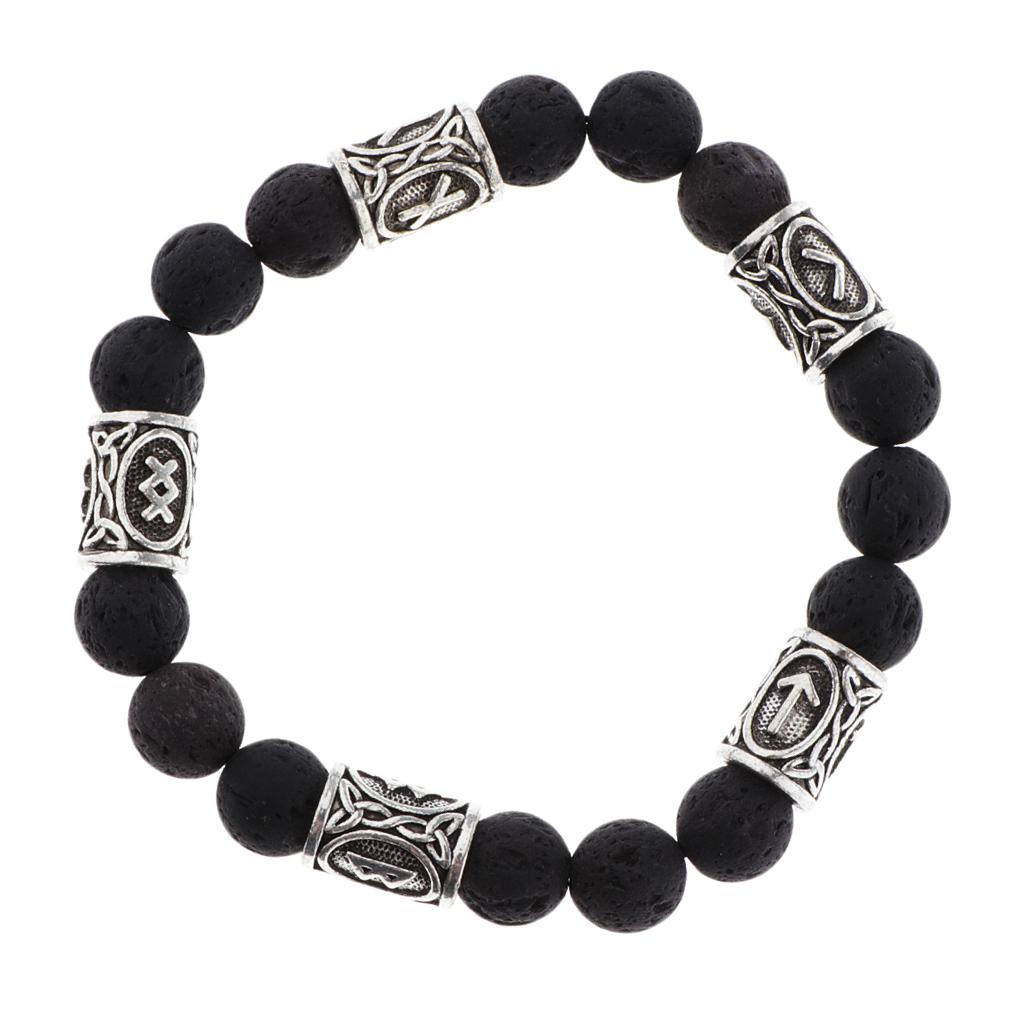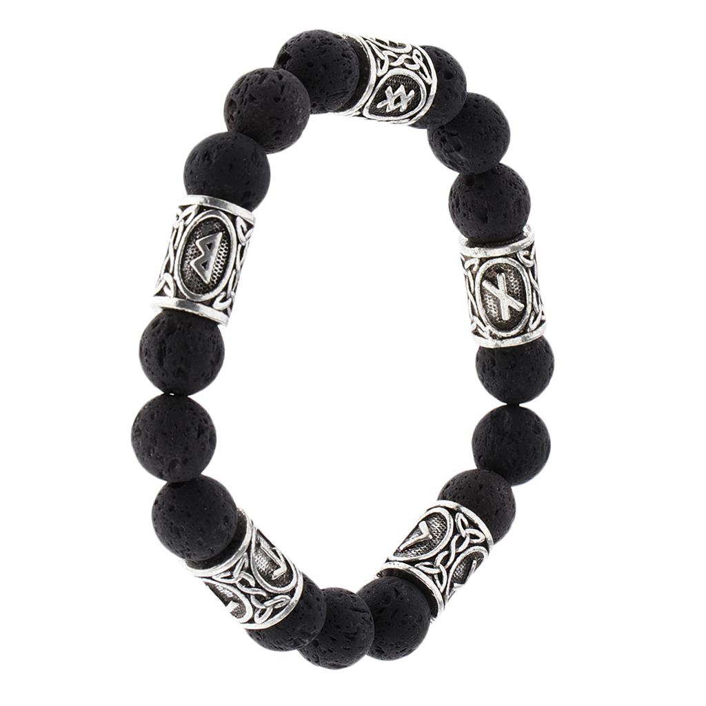 Carved Rune, lava beads, elastic cord fits for most wrists.