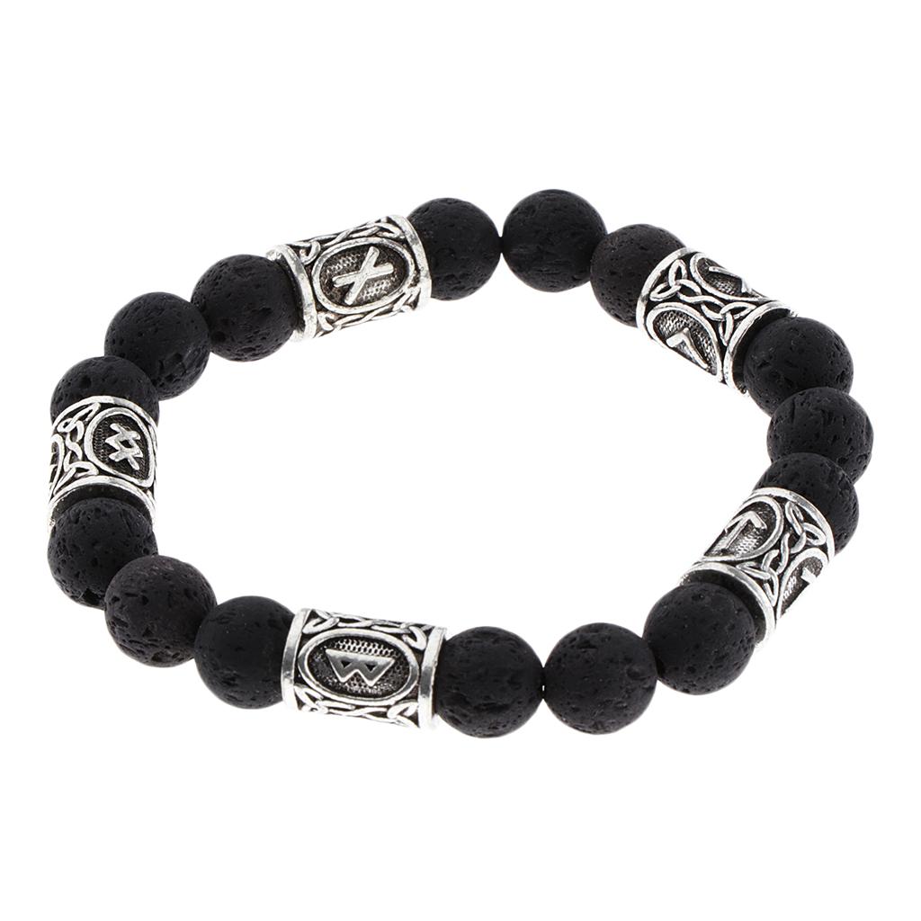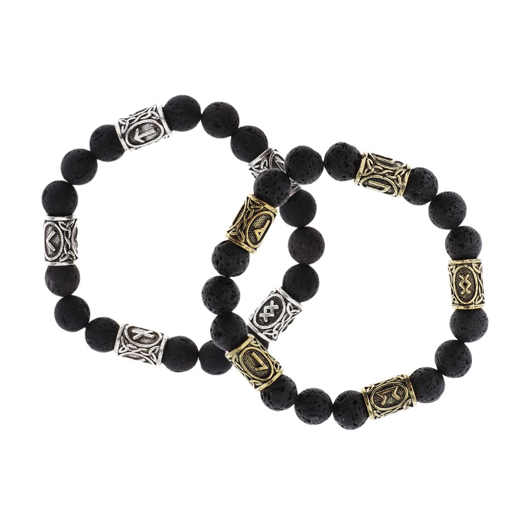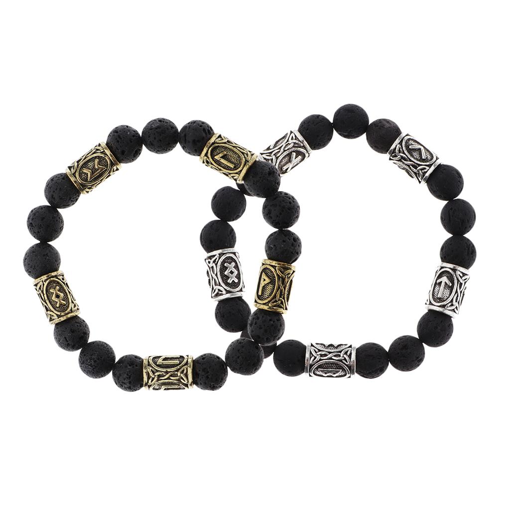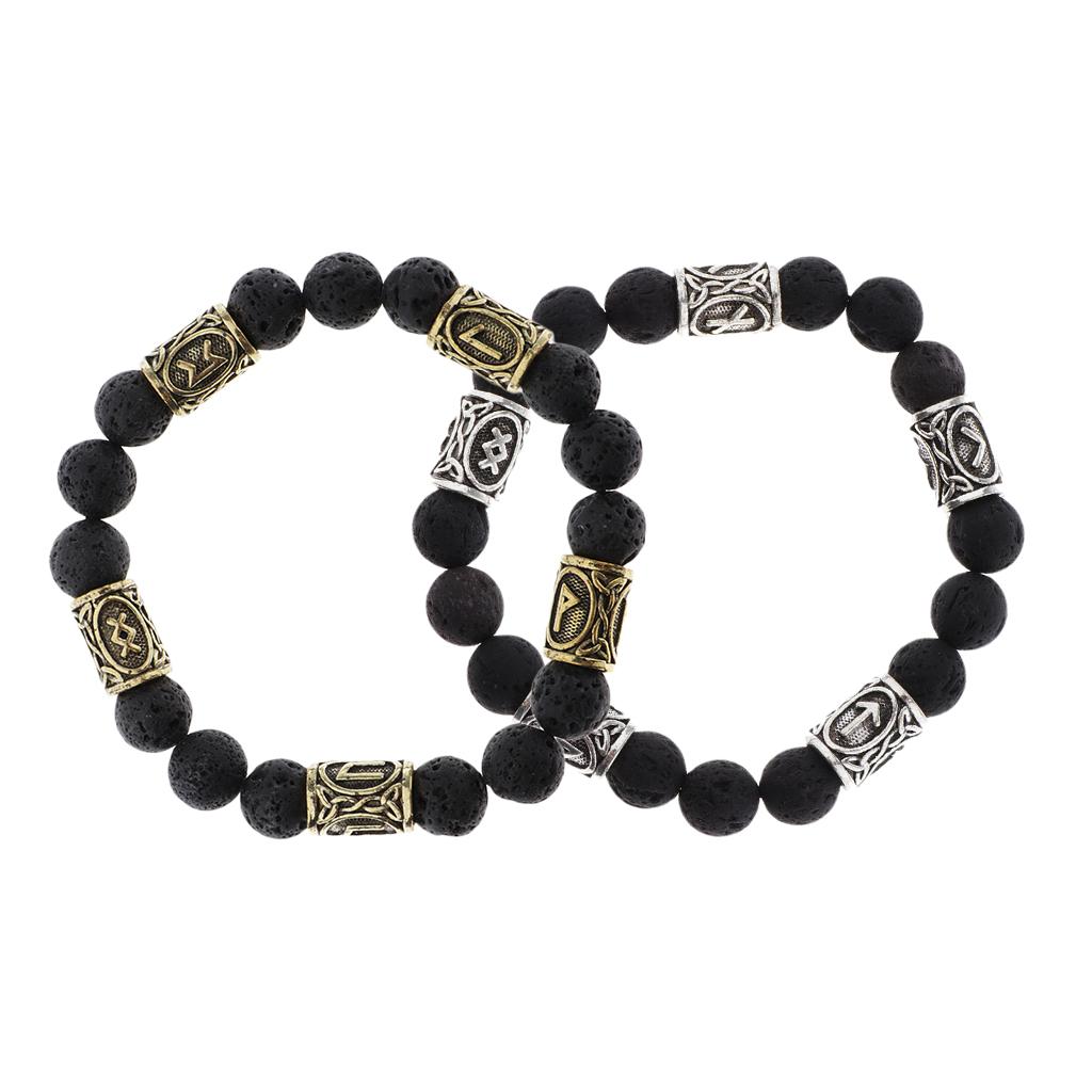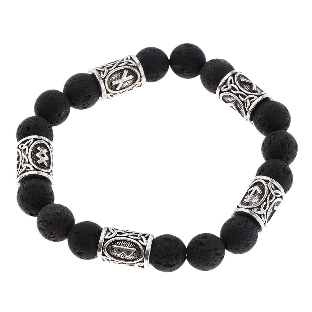 Carved Rune, lava beads, elastic cord fits for most wrists.