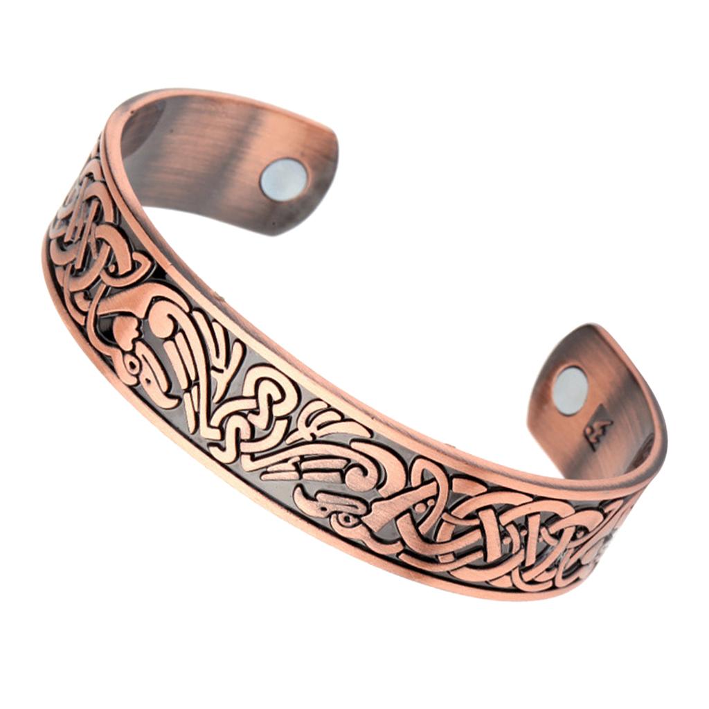 Max Viking Talisman Wide Cuff Bracelet Totem Open Wire Bangle Antique Copper