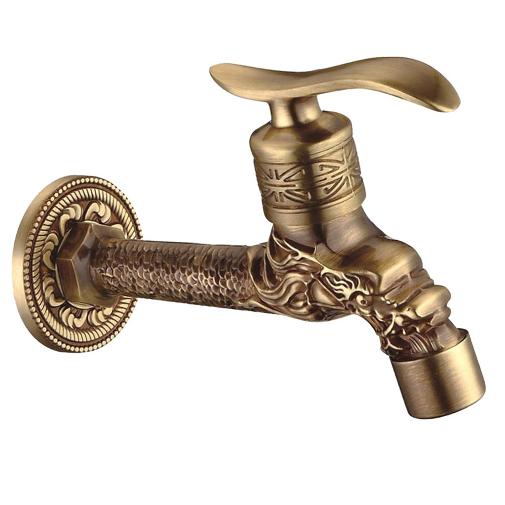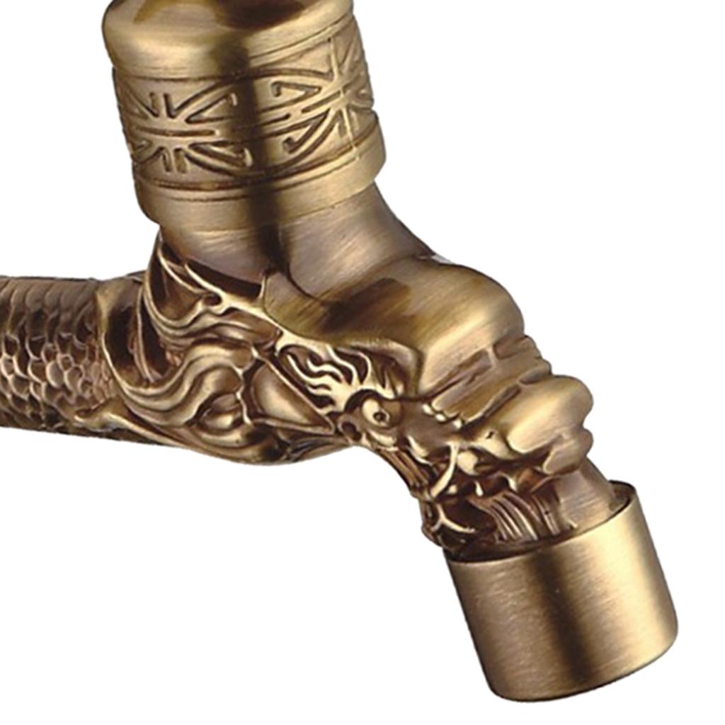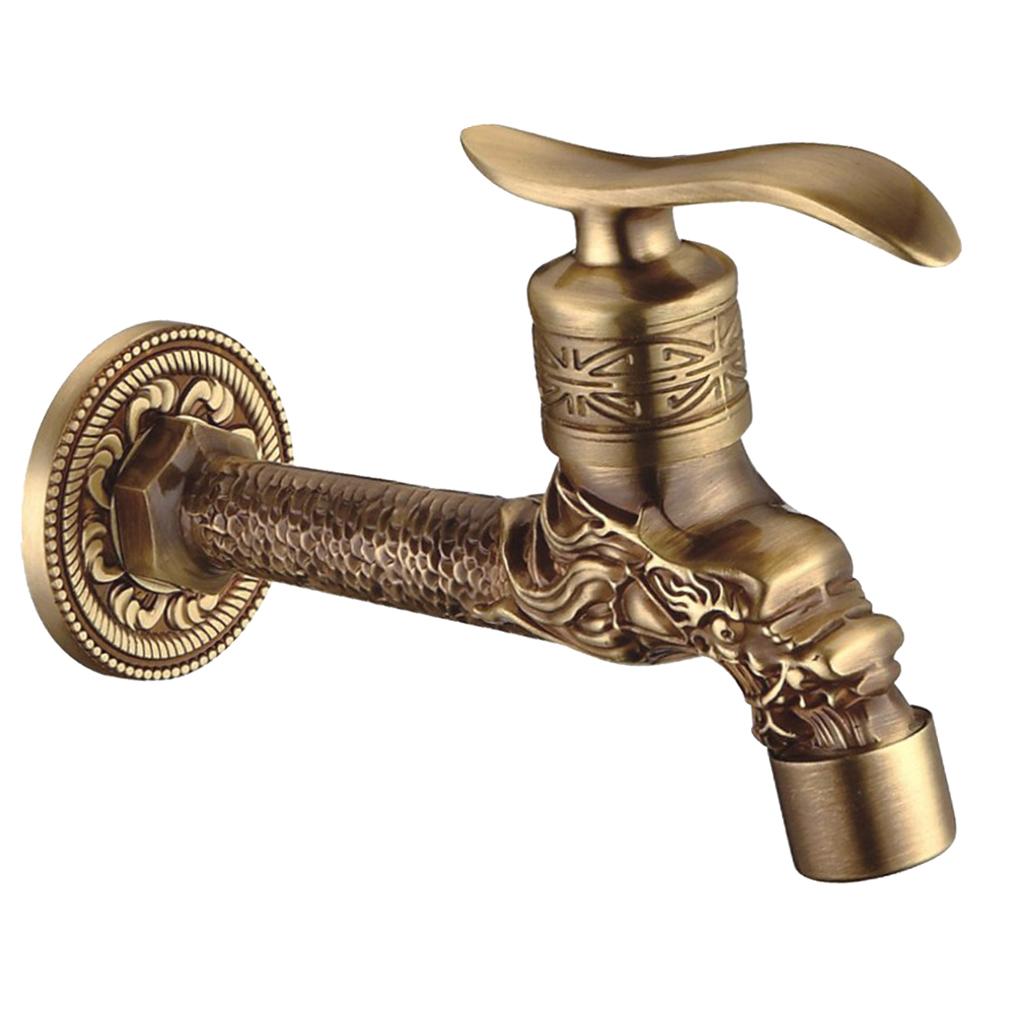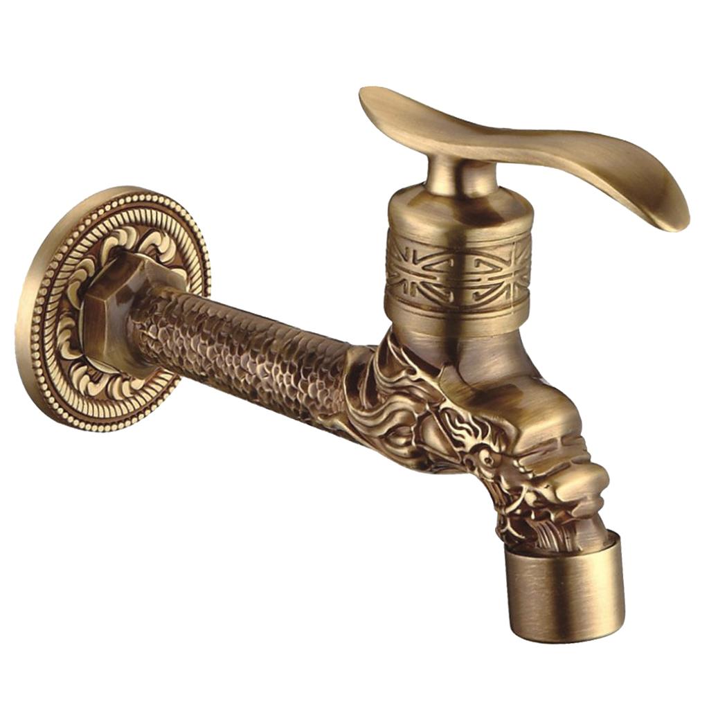 Maxbell Wall Mounted Dragon Carved Brass Single Cold Water Faucet Sink Tap 1/2'' D