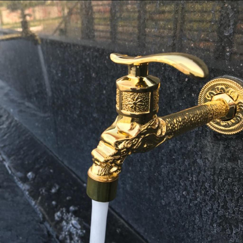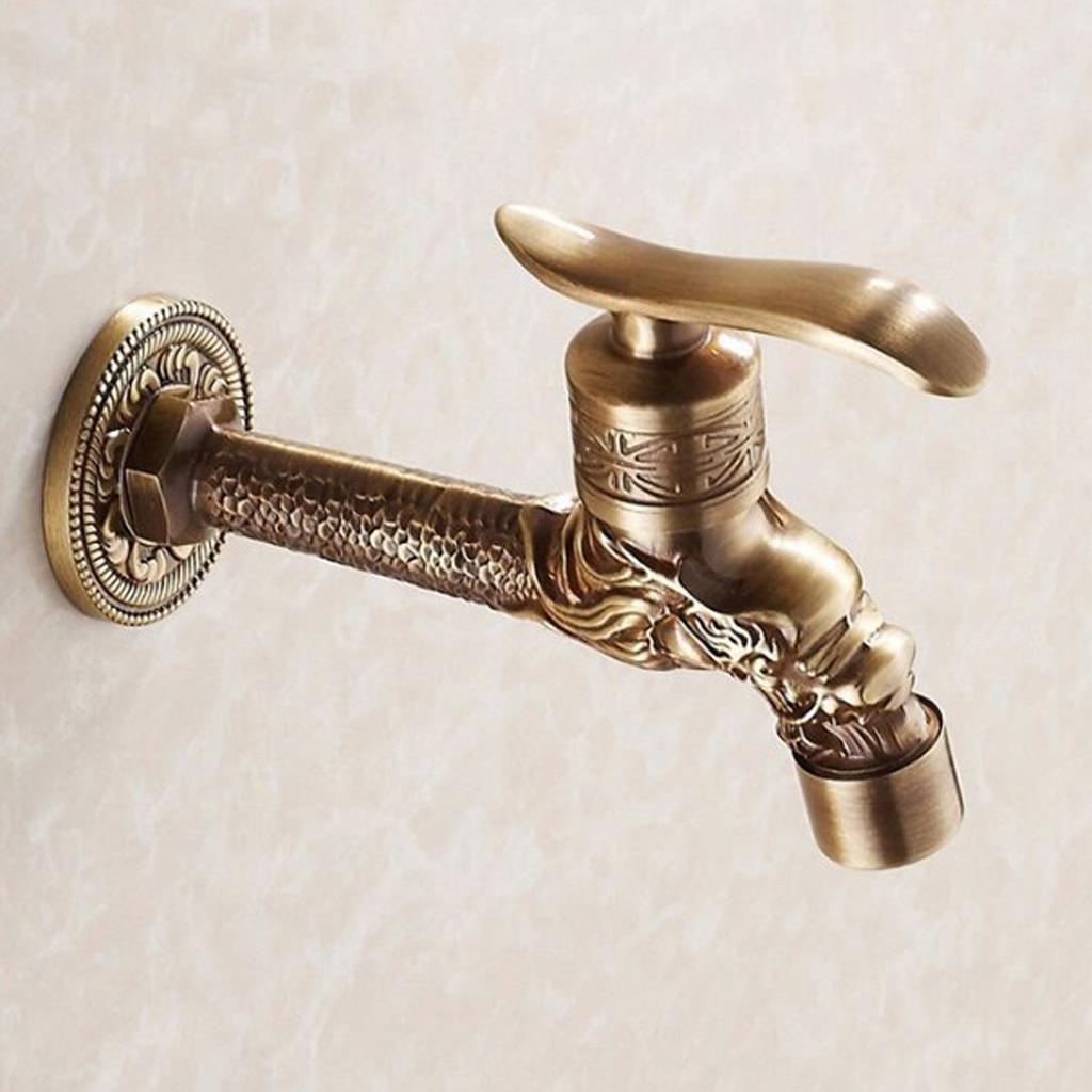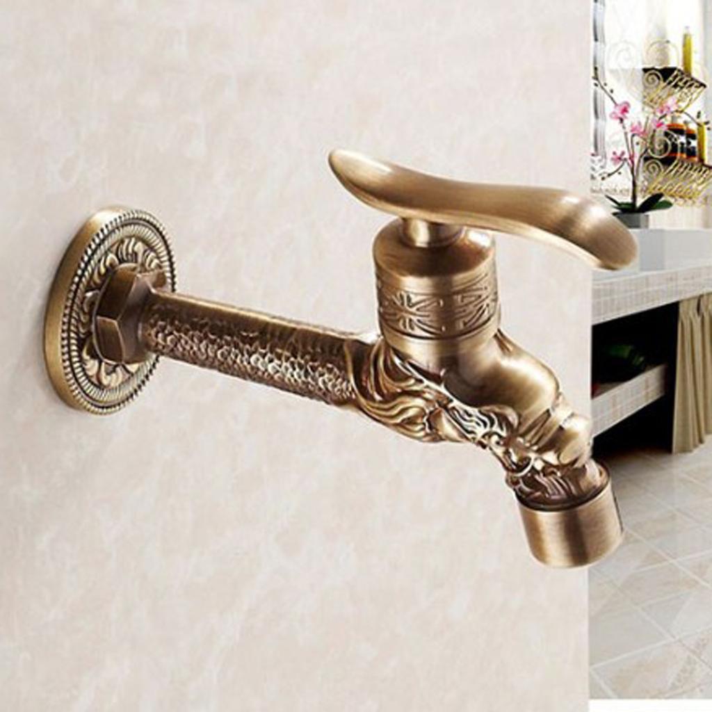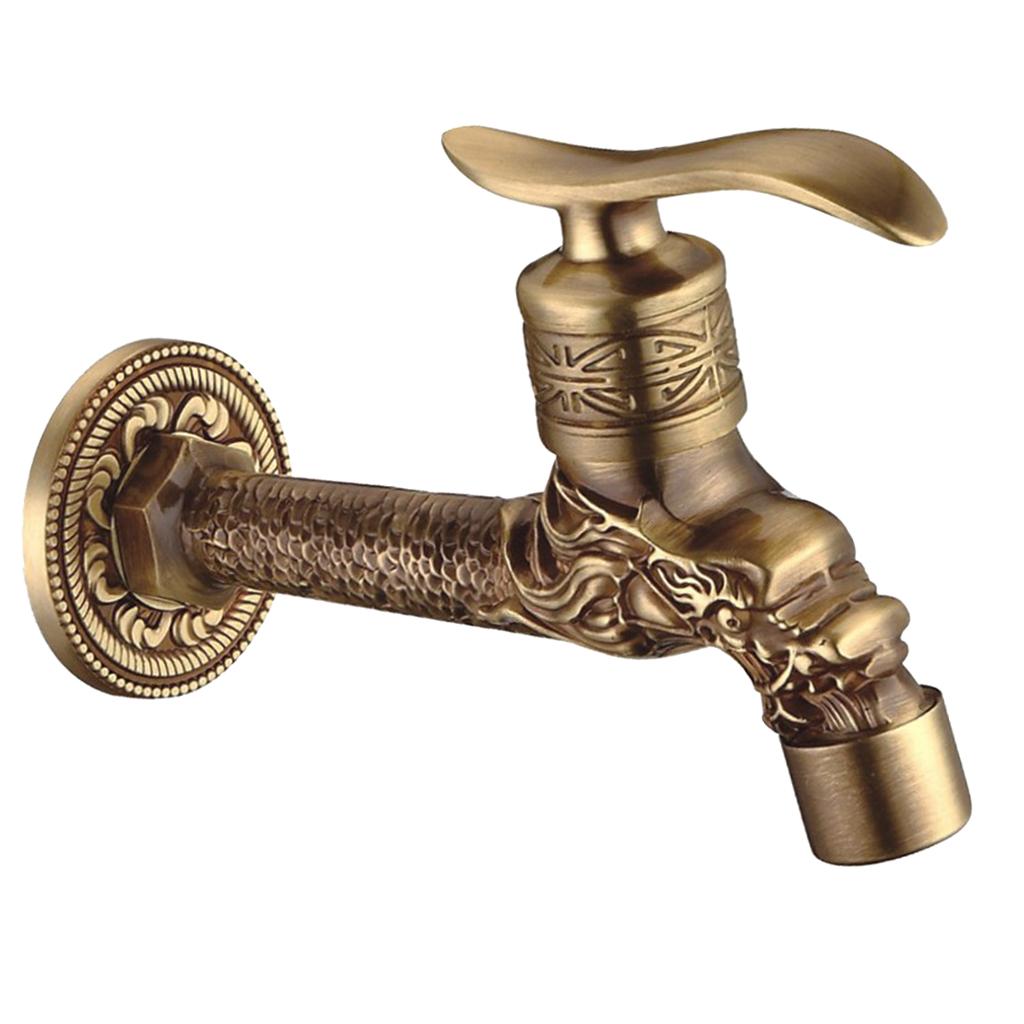 Maxbell Wall Mounted Dragon Carved Brass Single Cold Water Faucet Sink Tap 1/2'' D