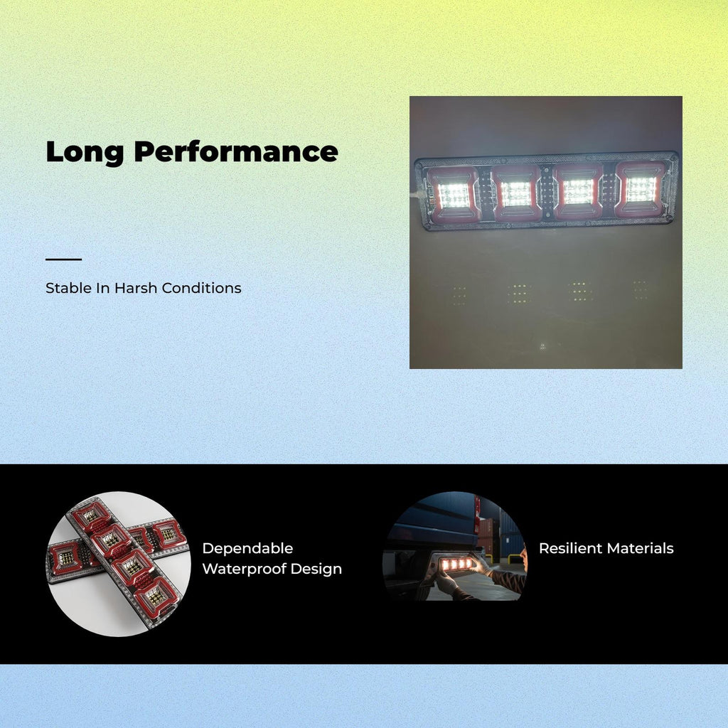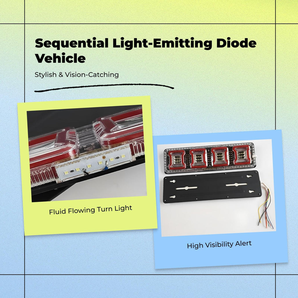 【Light-Emitting Diode Vehicle Waterproof, Sequential Flowing】Enhance your vehicle or trailer with this high-brightness light-emitting diode assembly, featuring waterproof construction and sequential flowing turn indicators for improved visibility. 【Universal 24V Compatibility】Designed for universal fit, suitable for large vehicles, trailers, RVs, and work vehicles operating on 24V systems.【Multi-Function Lighting】Combines brake light, turn marker, reverse light, and fog light functions in a single space-saving unit, making it practical for various driving situations.【robust and dependable】Built with high-quality materials for long performance, the light-emitting diode is sealight-emitting diode to prevent moisture and ensures stable in all weather conditions.【Easy Installation, High Value】The surface-mount design allows for quick and easy installation, offering strong practicality and value for your vehicle.Specification: