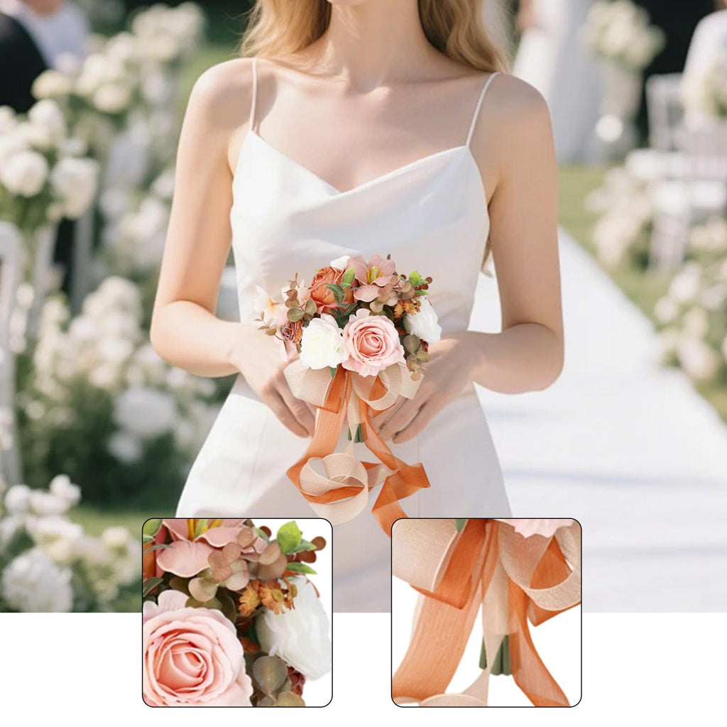 - 【Wedding Bouquet】: Cascading flowers with greenery and bow create a gorgeous bouquet, which can be used as a bride bouquet or bridesmaid bouquet. The decorative holding bouquet makes the beautiful bride look more fascinating
