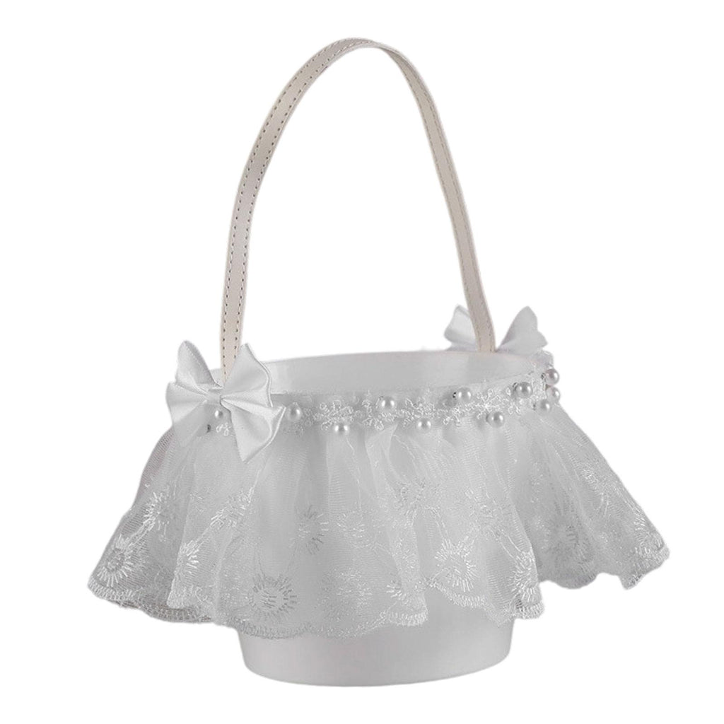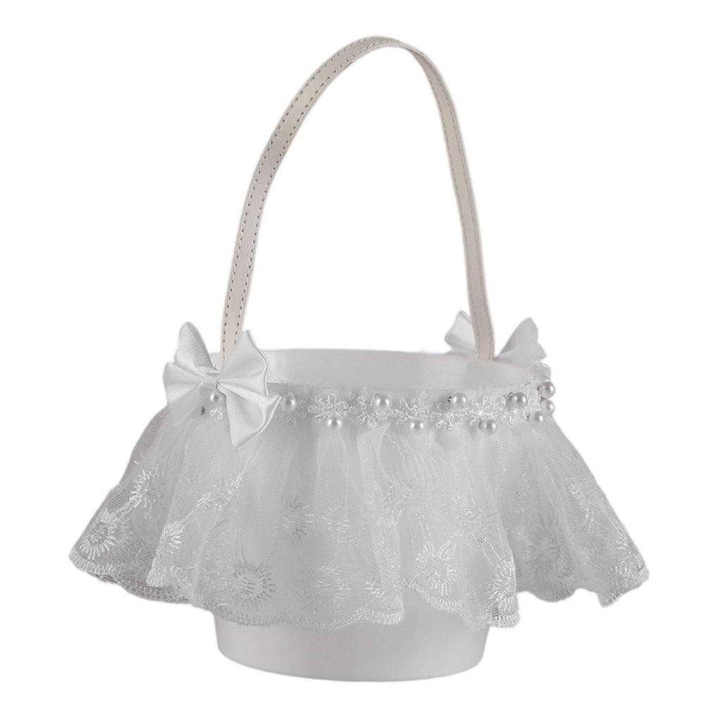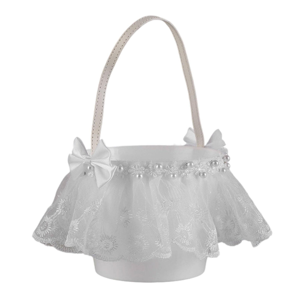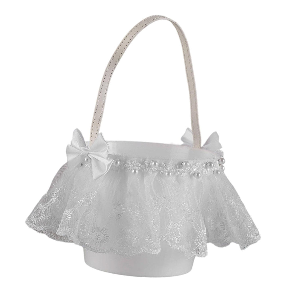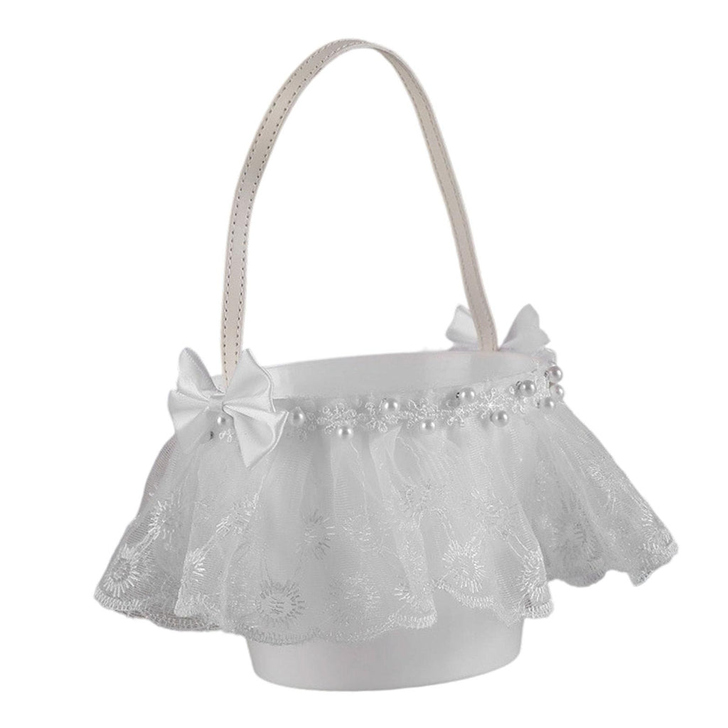 Maxbell Wedding Flower Girl Basket White Cute Decor for Holiday Celebrations Parties
