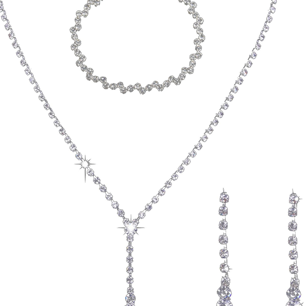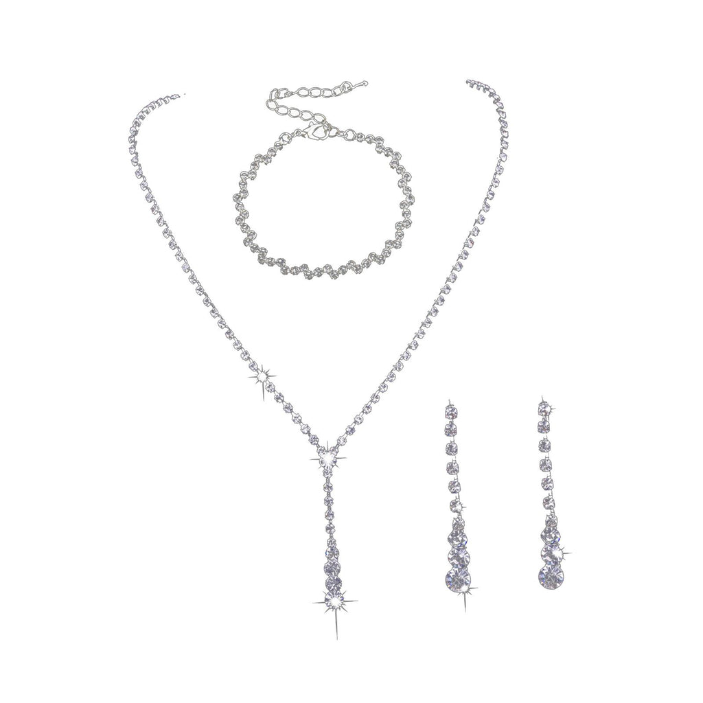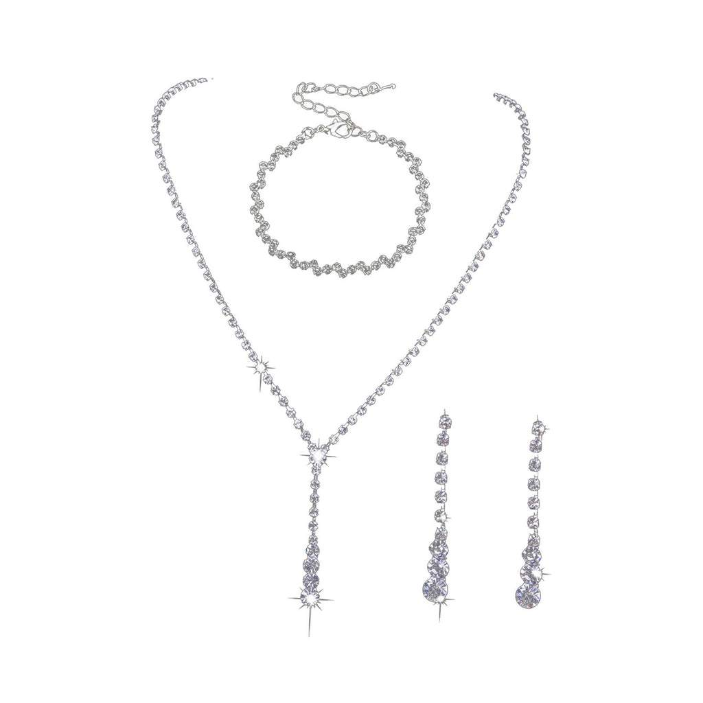 Maxbell Wedding Jewelry Sets White Jewelry Set Rhinestone for Party Girls Bridesmaid with bracelet