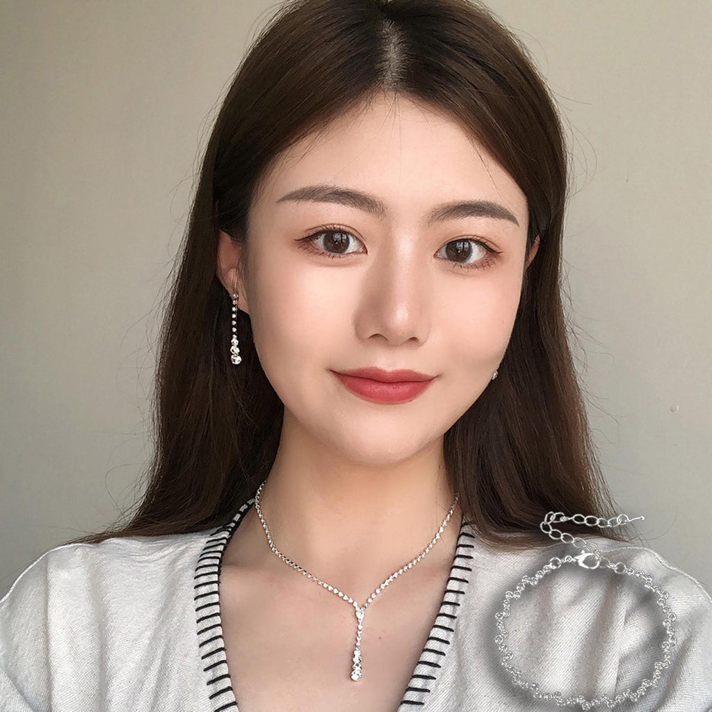 【Bridal jewelry sets】:Wedding bridal jewelry sets, Inlaid with rhinestones, sparkling and beautiful, create a romantic wedding touch.