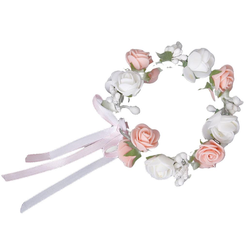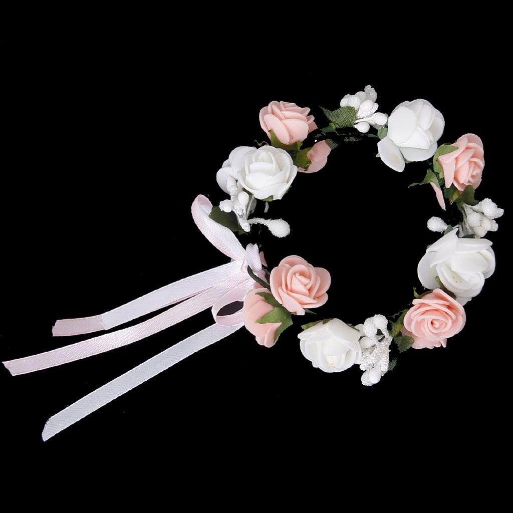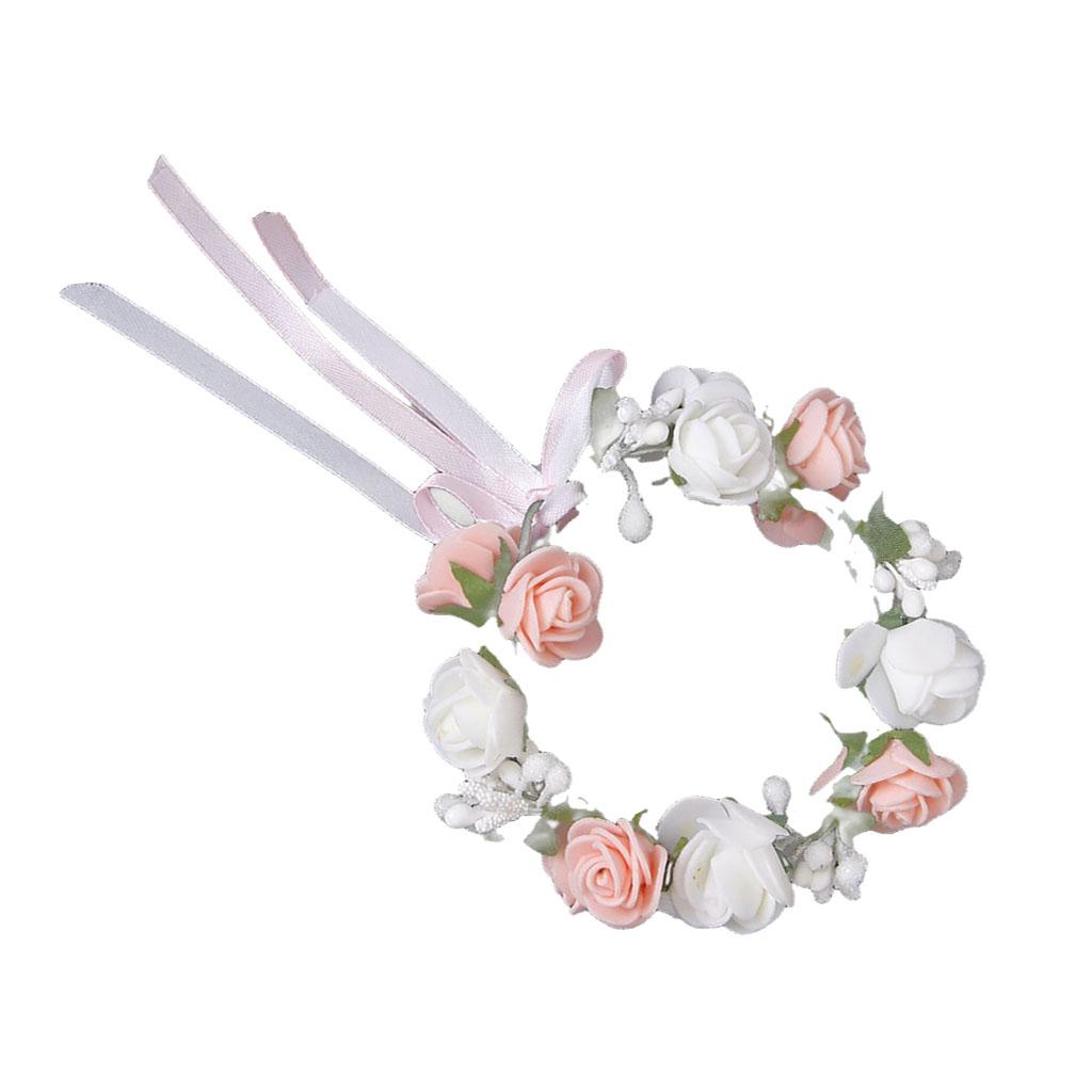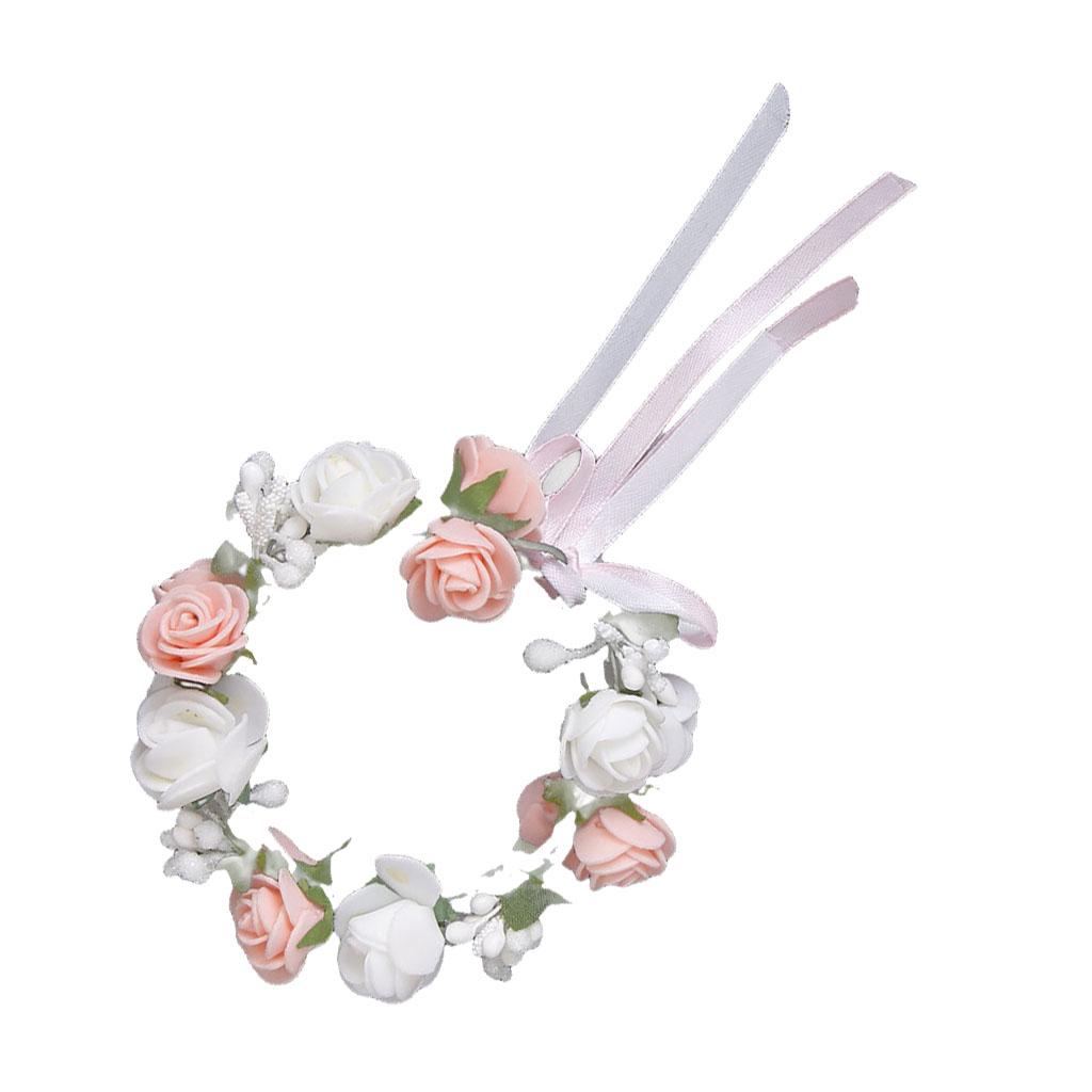 Maxbell White and Pink Double Layer Rose Flower Garland Bridal Wedding Bracelet Wristband Photo Prop