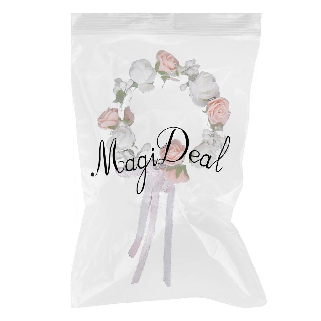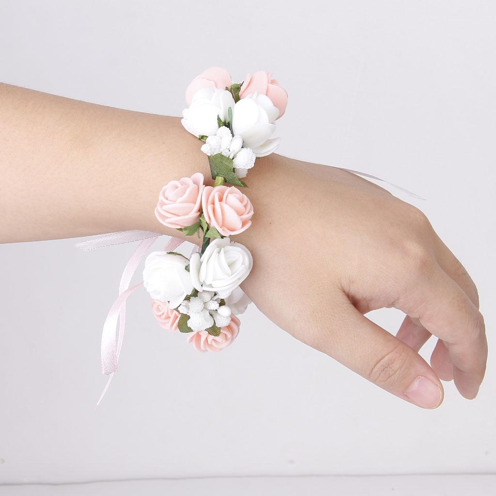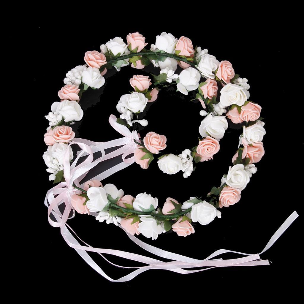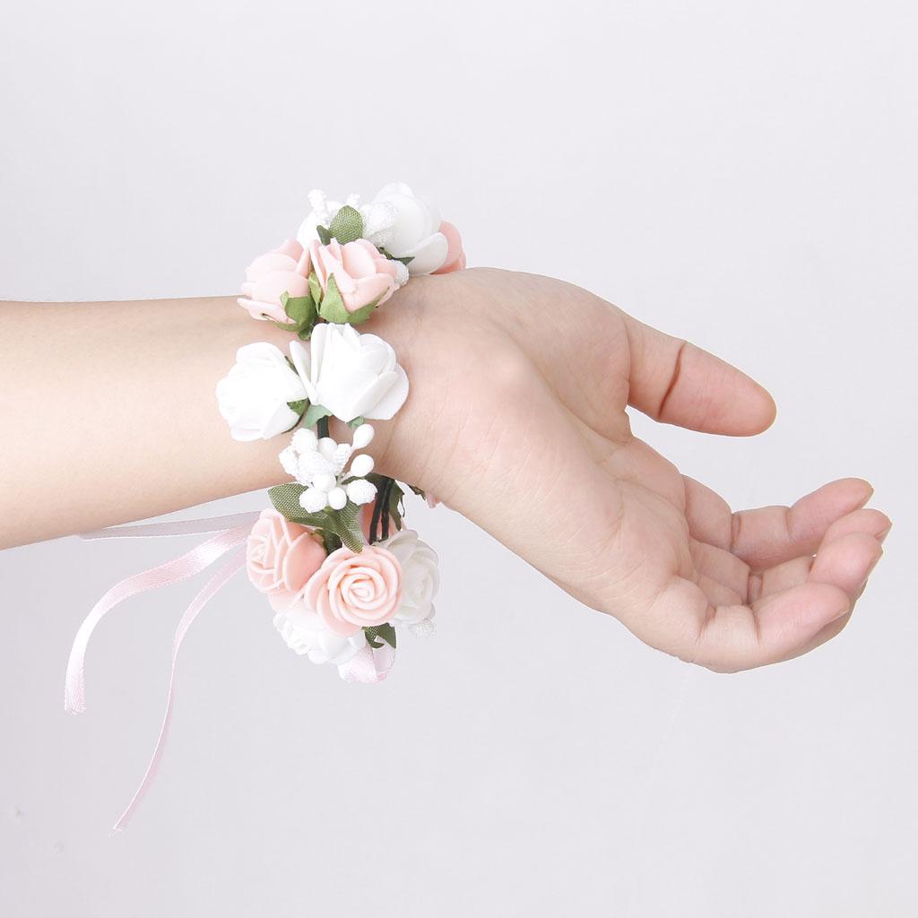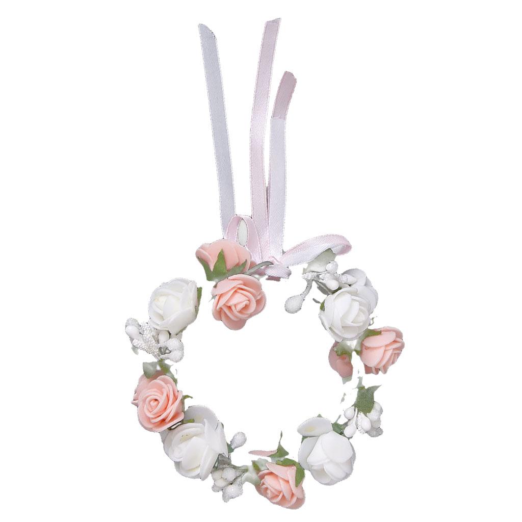 Maxbell White and Pink Double Layer Rose Flower Garland Bridal Wedding Bracelet Wristband Photo Prop