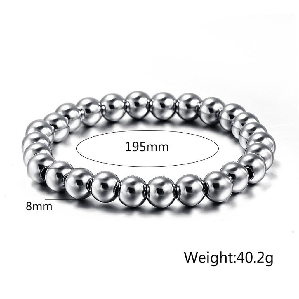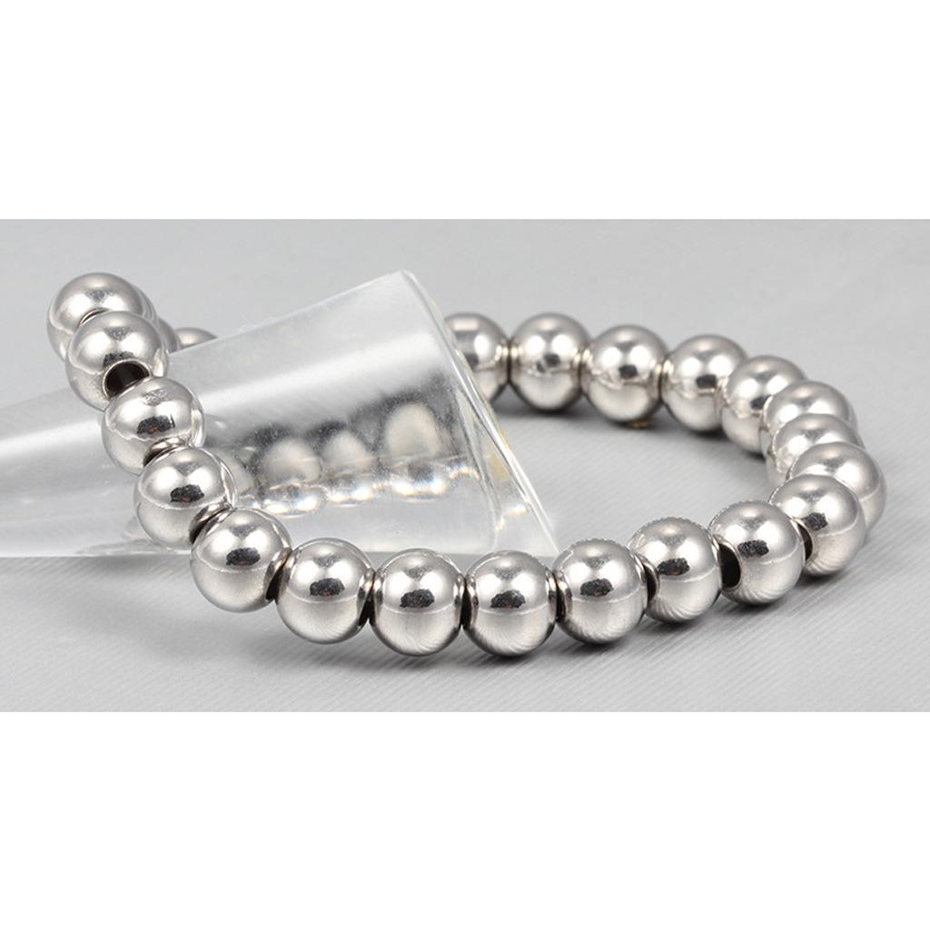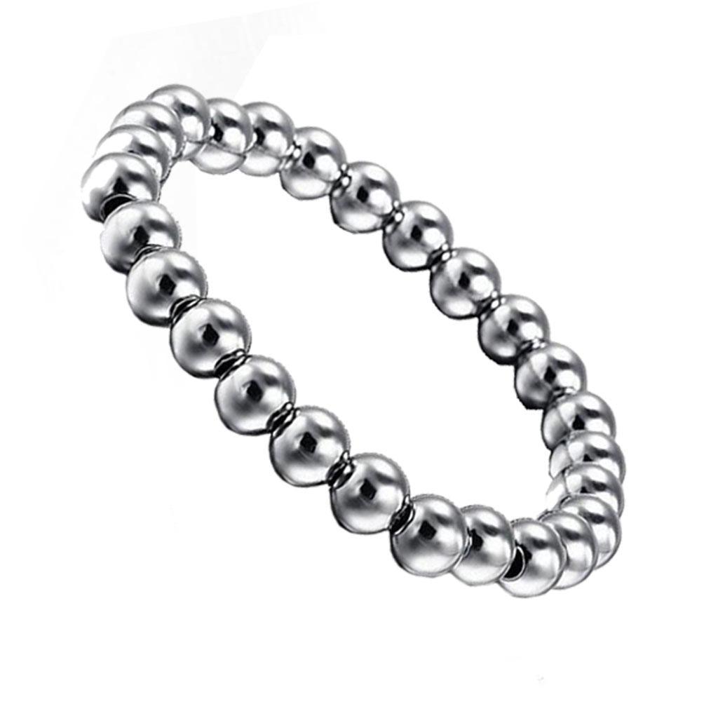 Maxbell Maxbell Women 8mm Stainless Steel Round Beads Charm Elastic Bracelet Bangle Silver