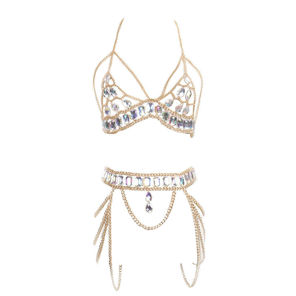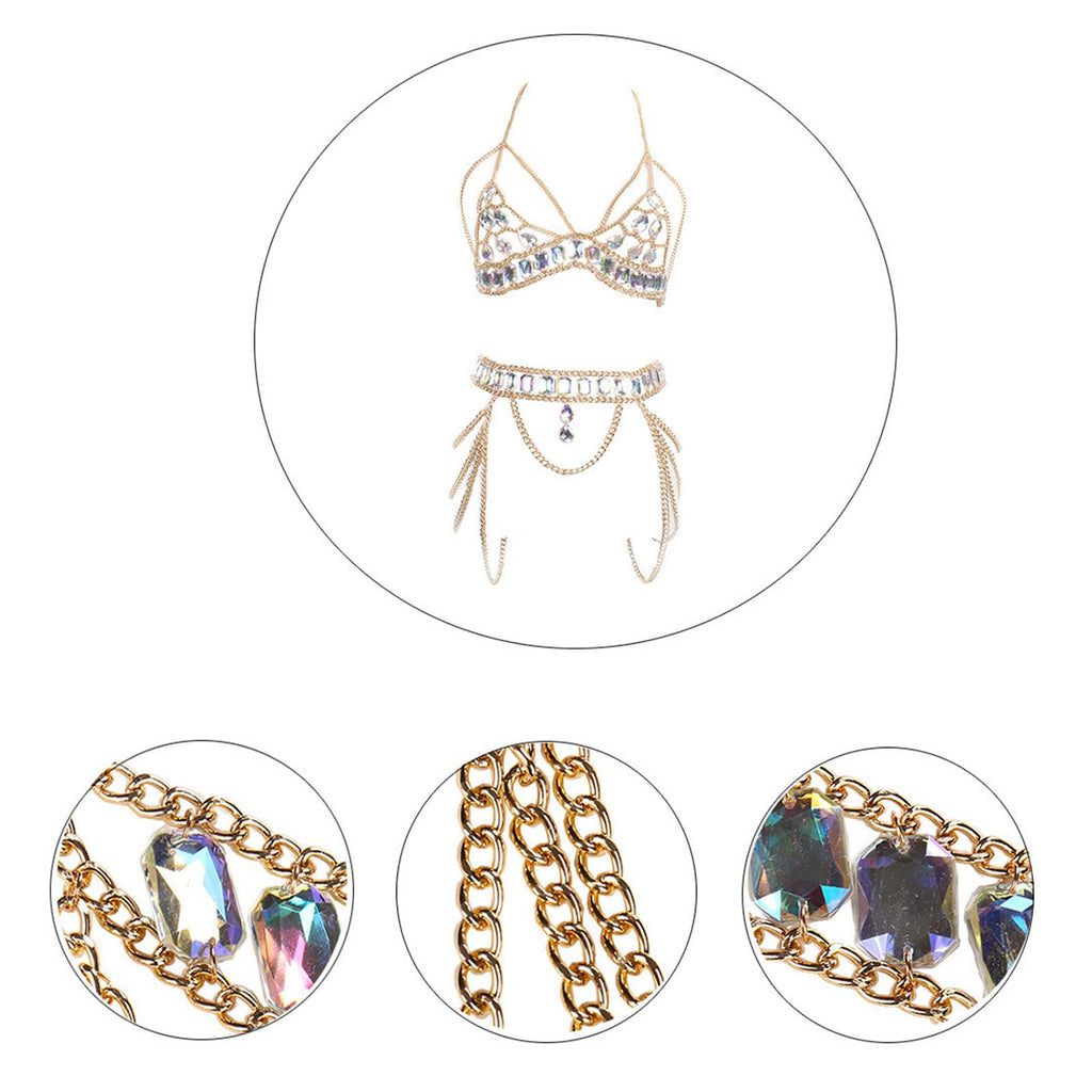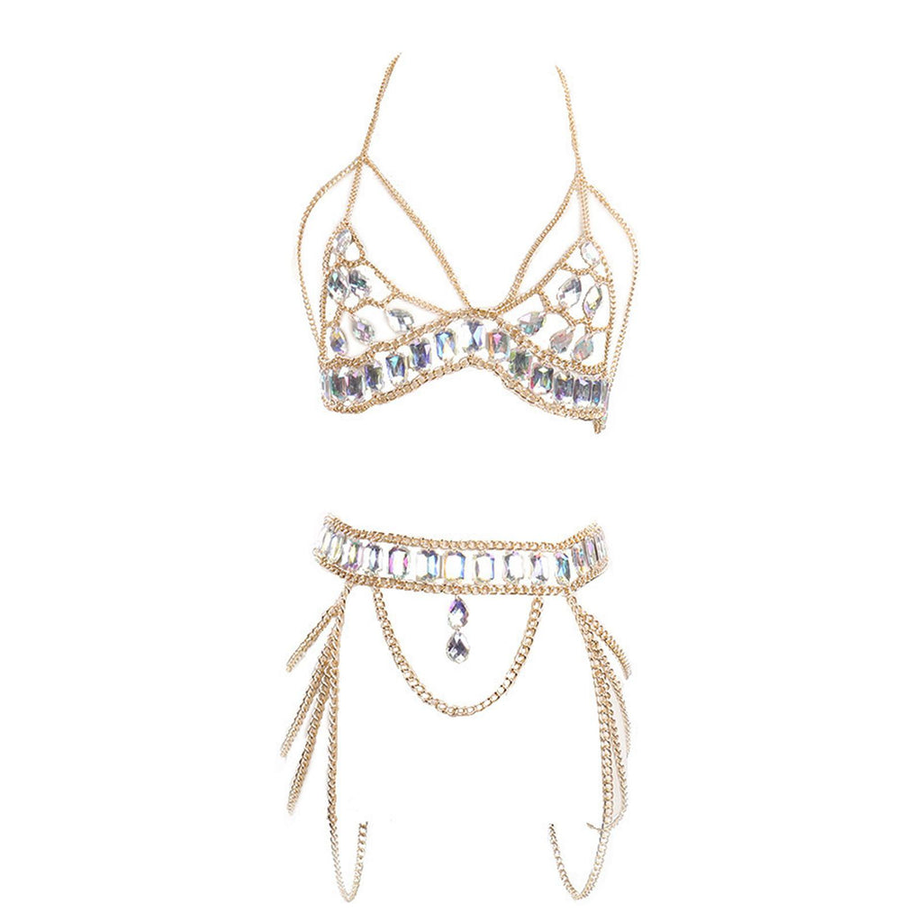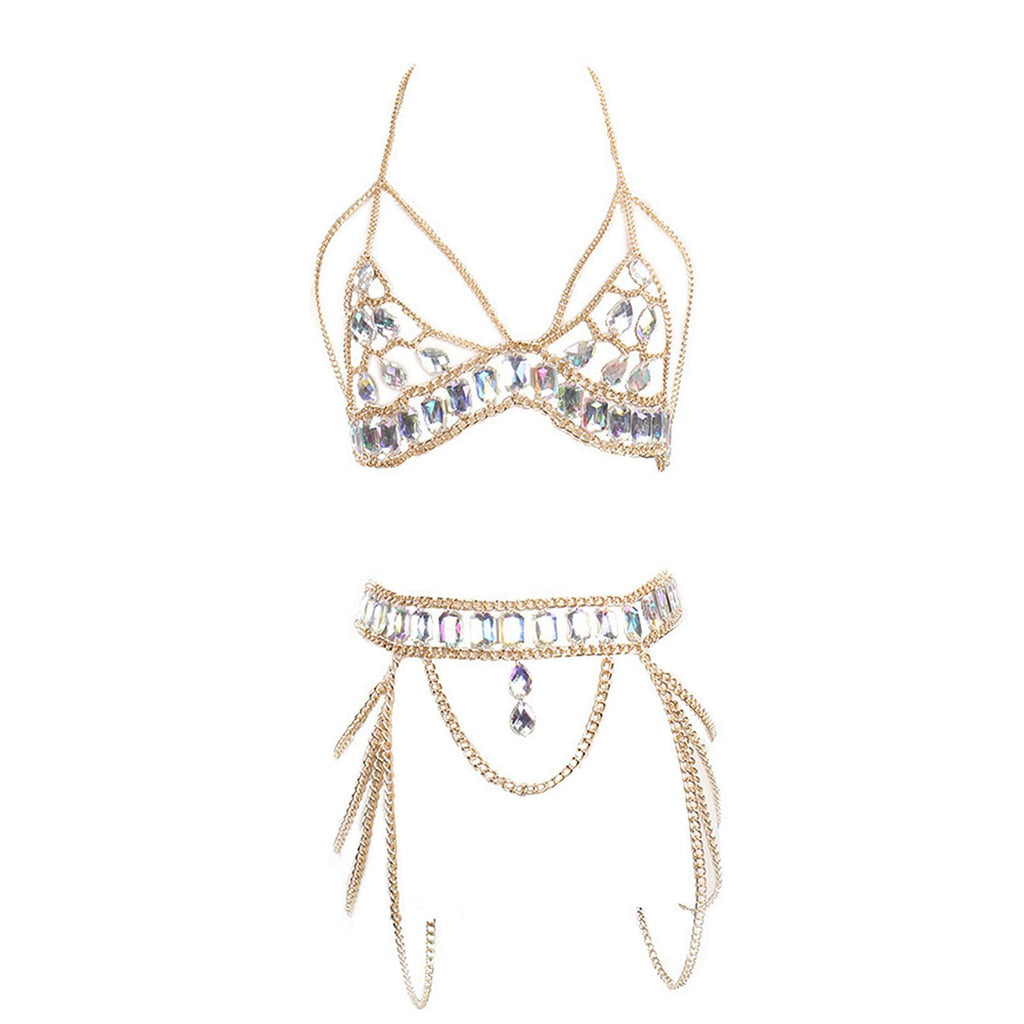 Maxbell Women Body Chain Outfit Hollow Out Bra Chain for Carnival Party Rave golden