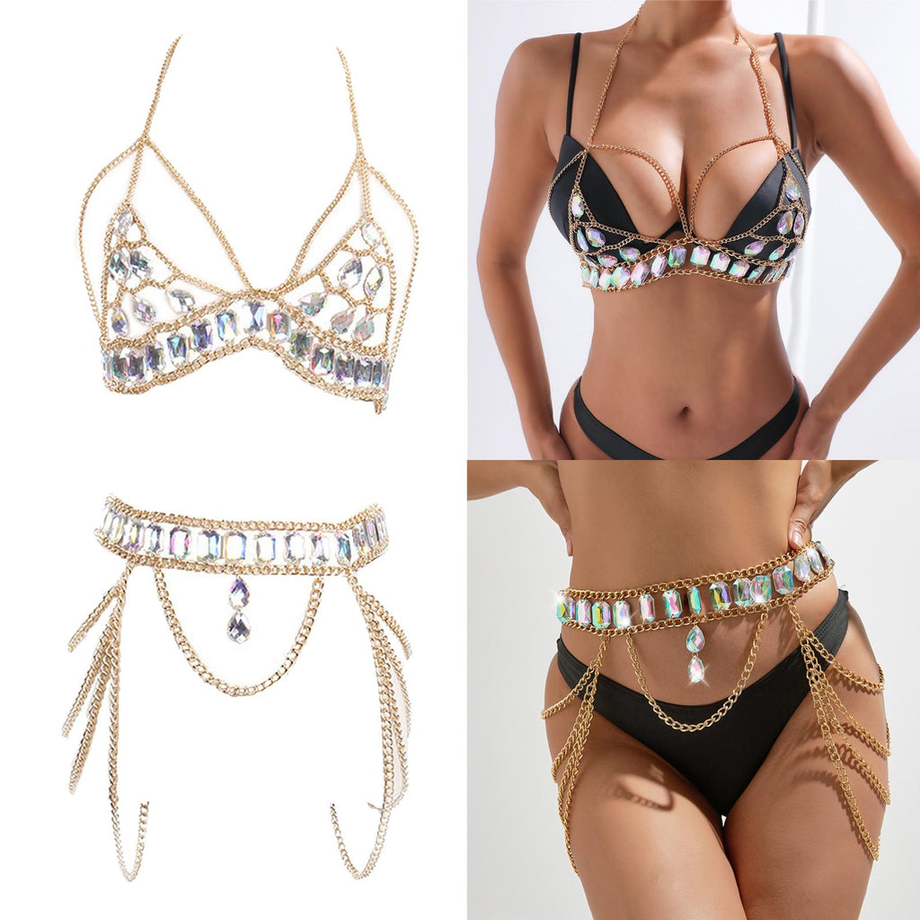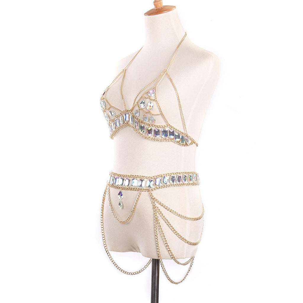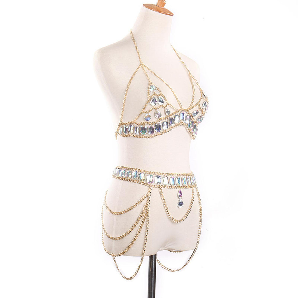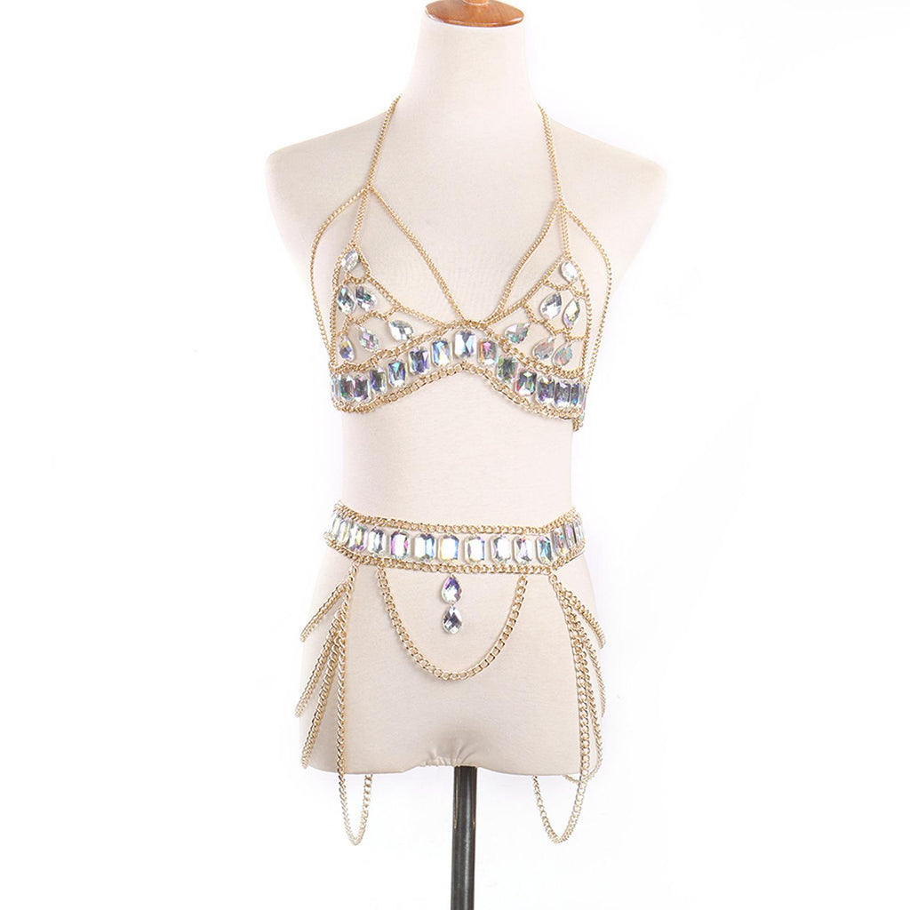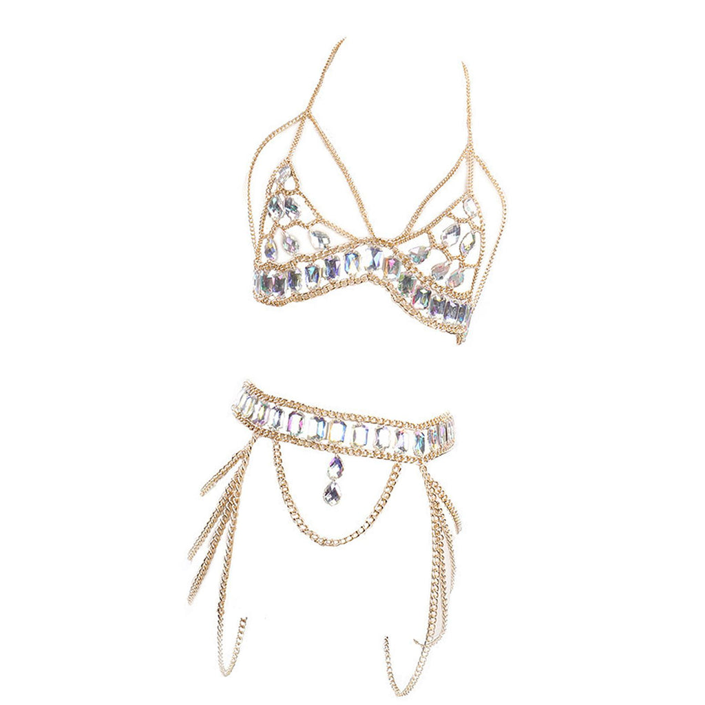 Maxbell Women Body Chain Outfit Hollow Out Bra Chain for Carnival Party Rave golden